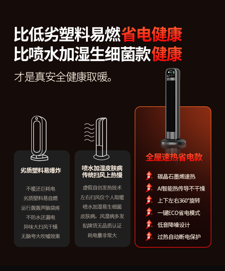 겨울용 전기 난방기 회전형 타이머 기능 스탠드형 리모컨 가정용 난방기 에너지 절약 빠른 가열 즉시 가열식 히터스토어 가기