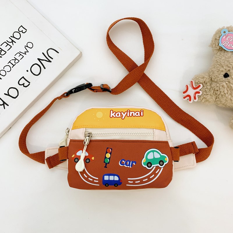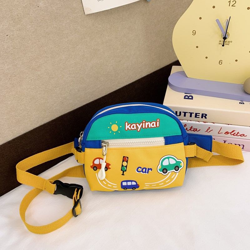 2024 새로운 어린이 가방 만화 귀여운 소년과 소녀 허리 가방 명암 컬러 자동차 인쇄 패션 명암 컬러 키즈 가슴 가방스토어 가기