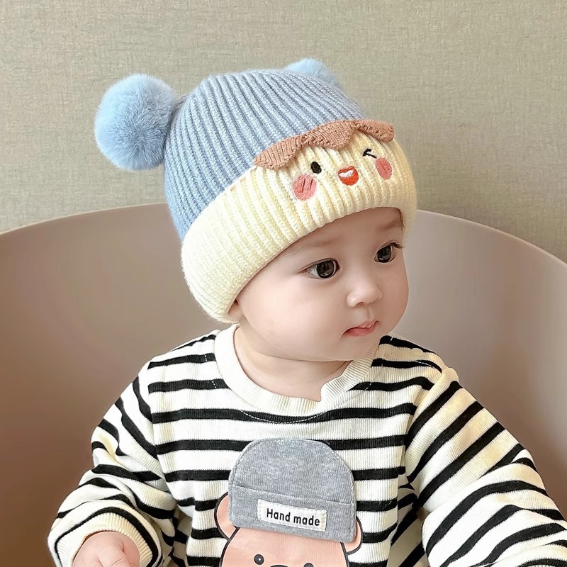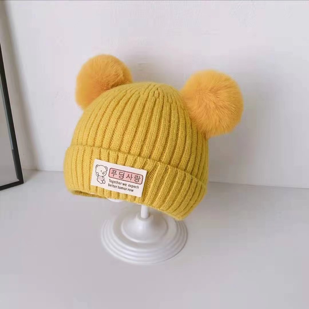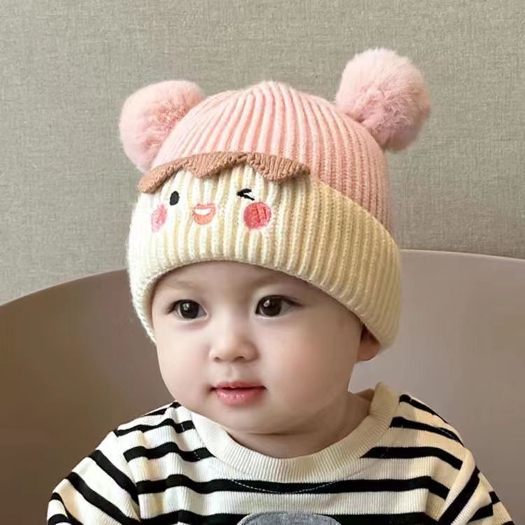 아기의 가을과 겨울 귀여운 만화 따뜻한 헤어 볼 양모 모자 소년 소녀를위한 아기 귀 보호 모자