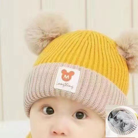 아기의 가을과 겨울 귀여운 만화 따뜻한 헤어 볼 양모 모자 소년 소녀를위한 아기 귀 보호 모자스토어 가기