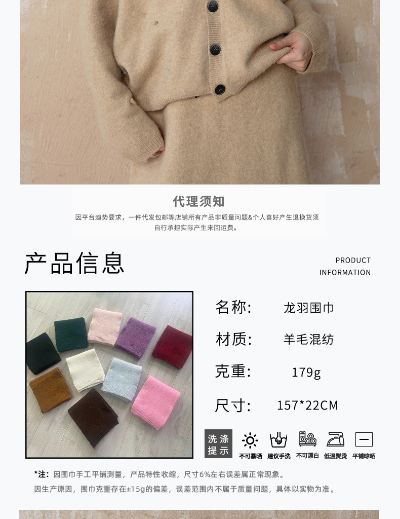 여성용 울 혼합 솔리드 컬러 니트 스카프 제조업체 가을, 겨울 따뜻한 고급 분위기 간단한 모직 스카프 목도리스토어 가기