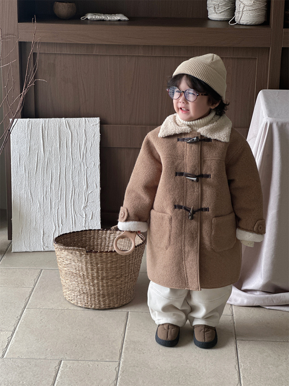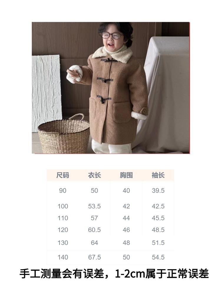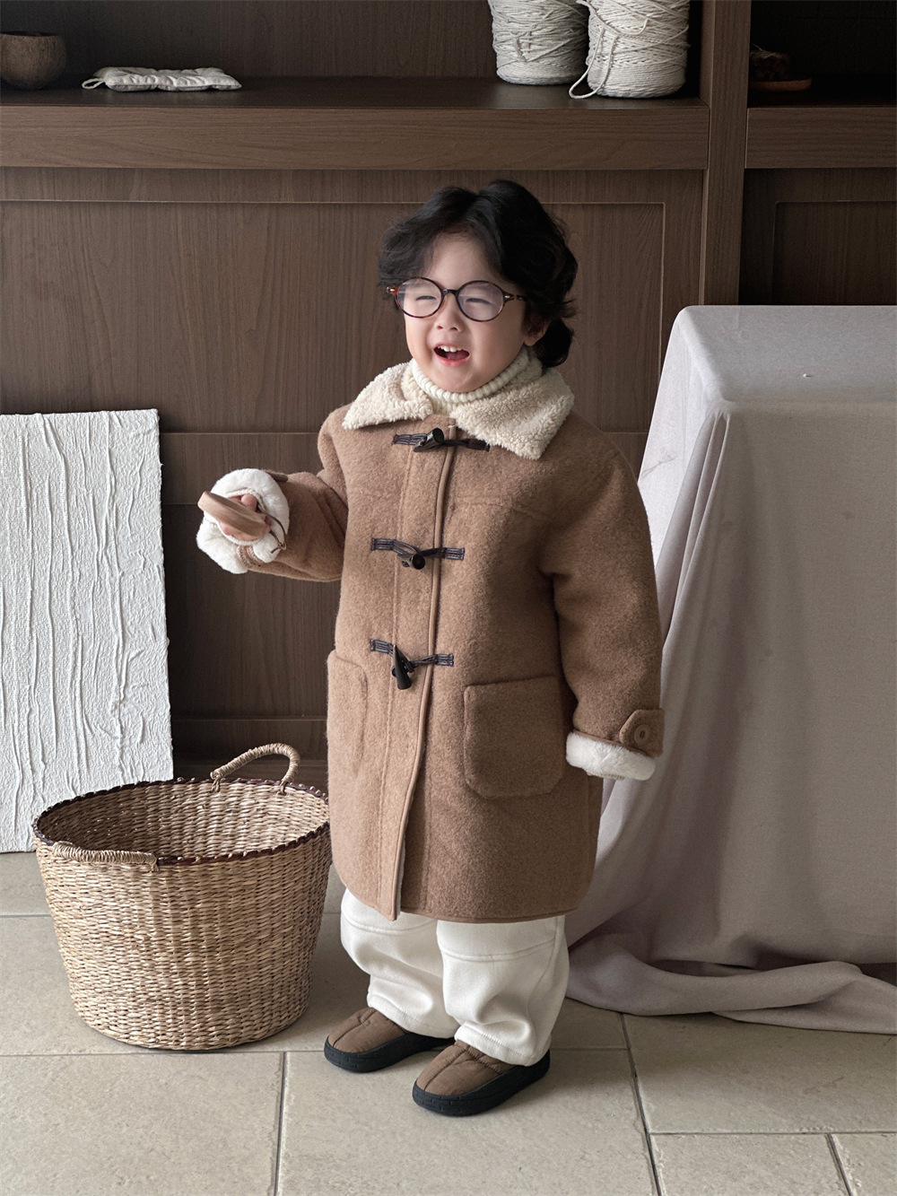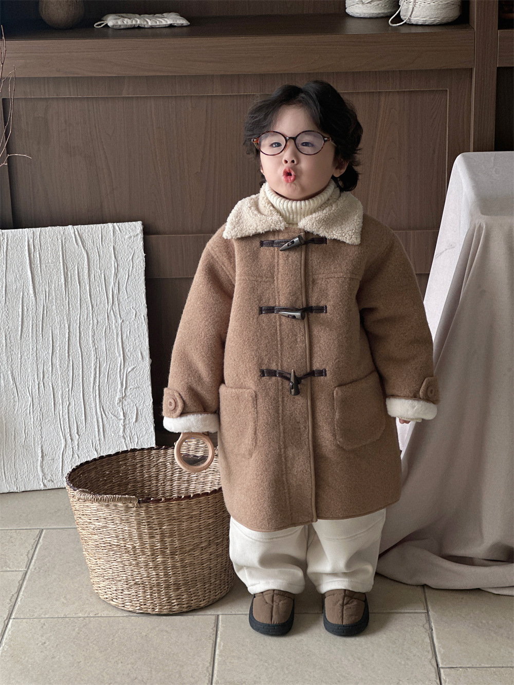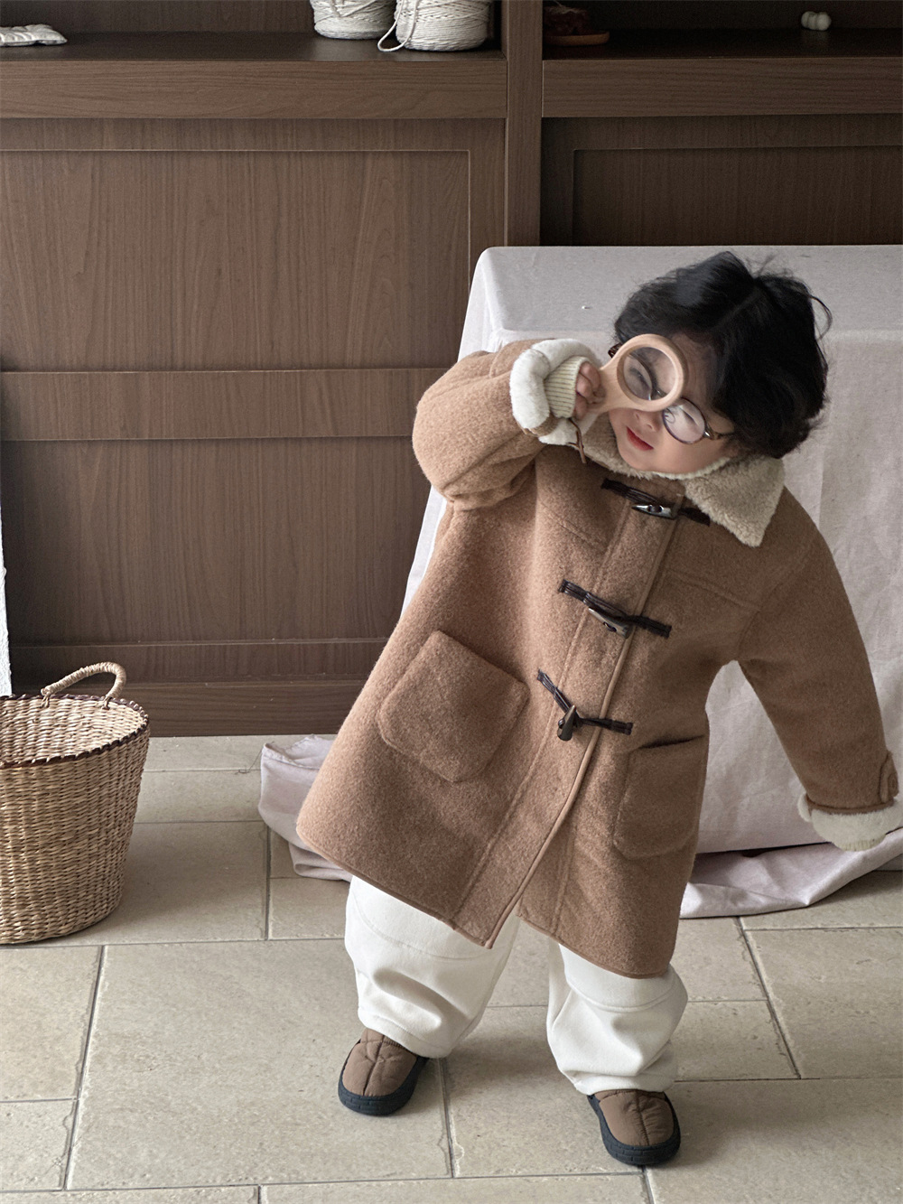2024 년 가을과 겨울 아동복 여자 모직 코트 새로운 한국식 어린이 두꺼운 톱 남자 바오지아 모직 코트