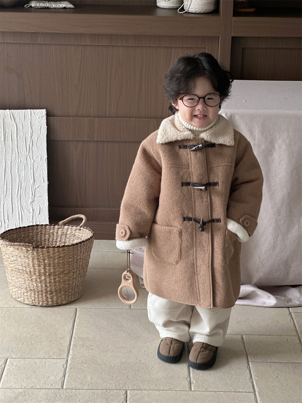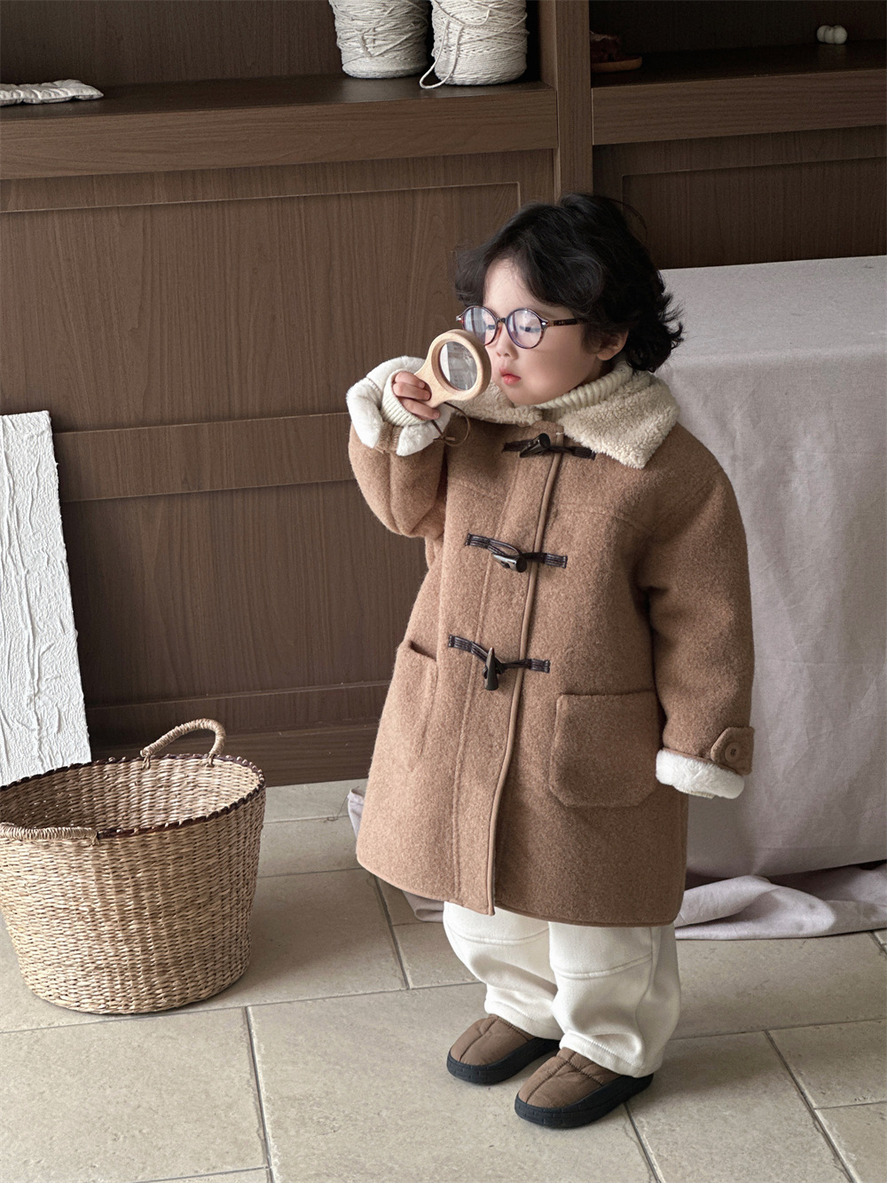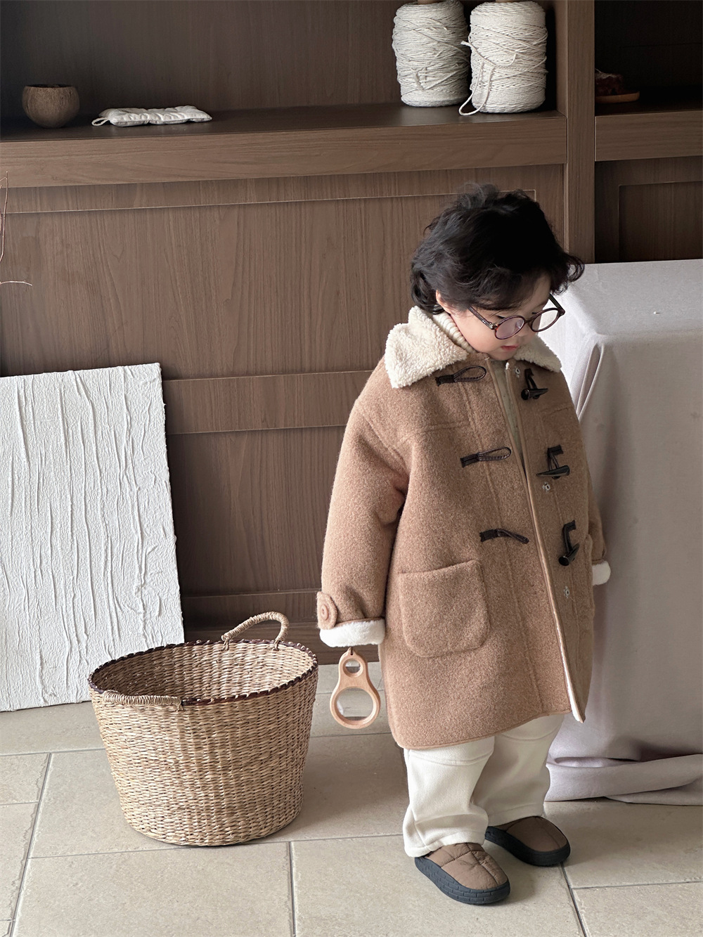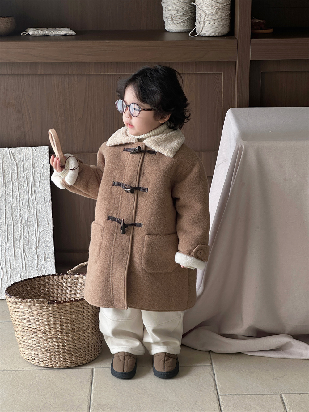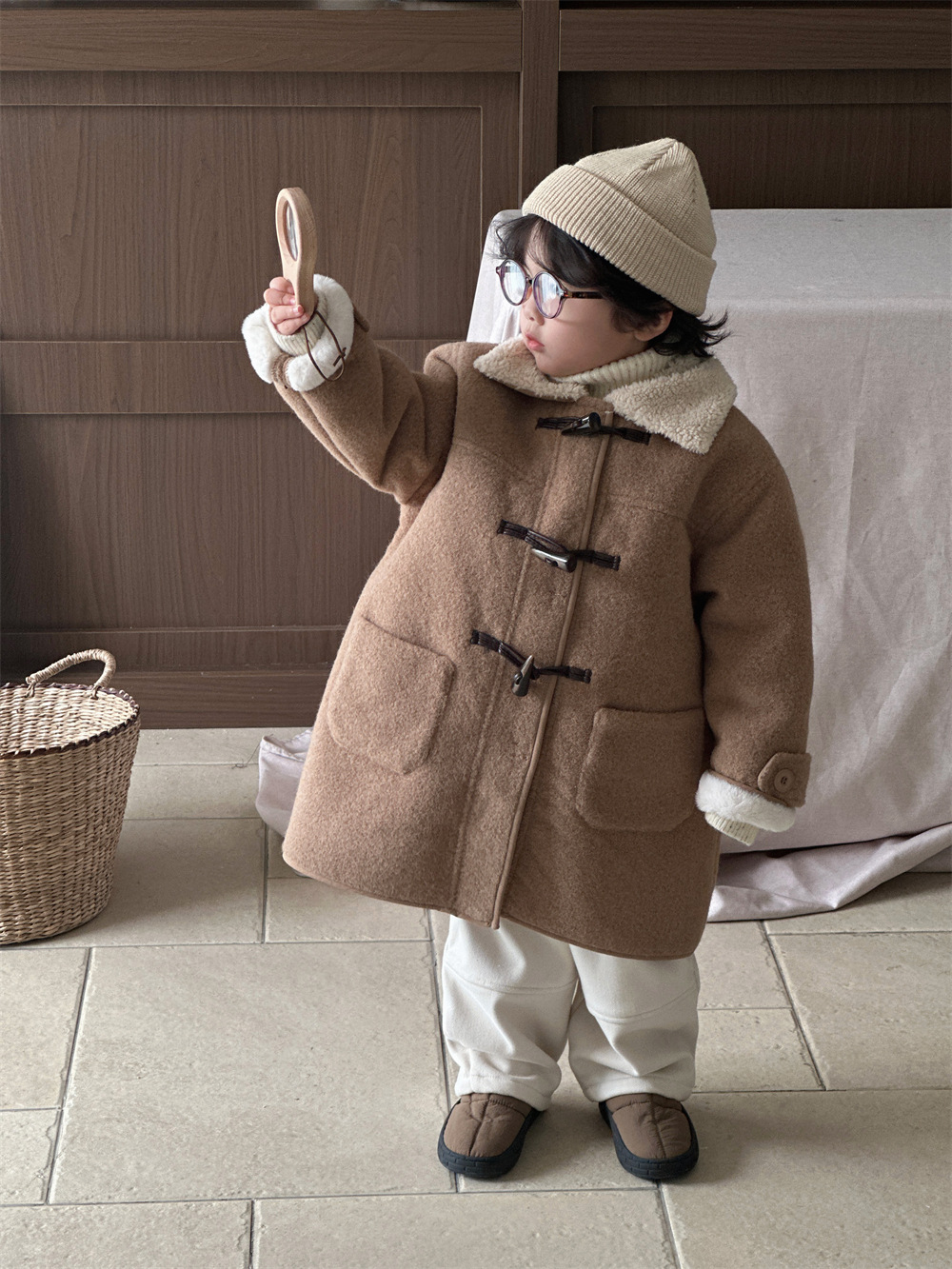 2024 년 가을과 겨울 아동복 여자 모직 코트 새로운 한국식 어린이 두꺼운 톱 남자 바오지아 모직 코트