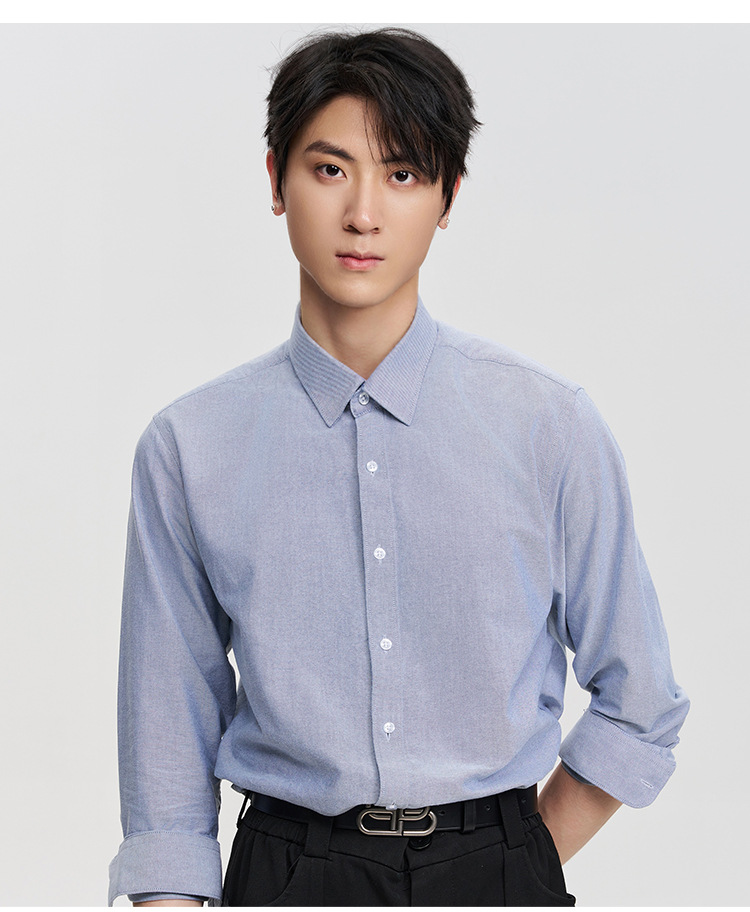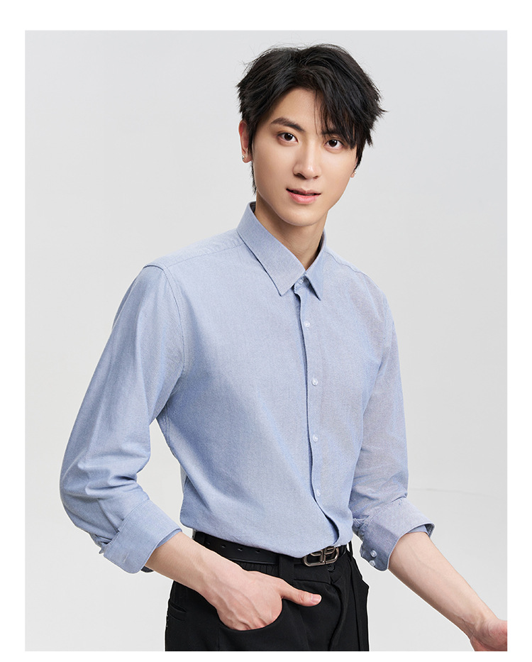 옥스포드 남성 셔츠 격자 무늬 스트라이프 긴 소매 면화 가을과 겨울 레저 비즈니스 액체 암모니아 비 다림질 흰색 파란색 셔츠