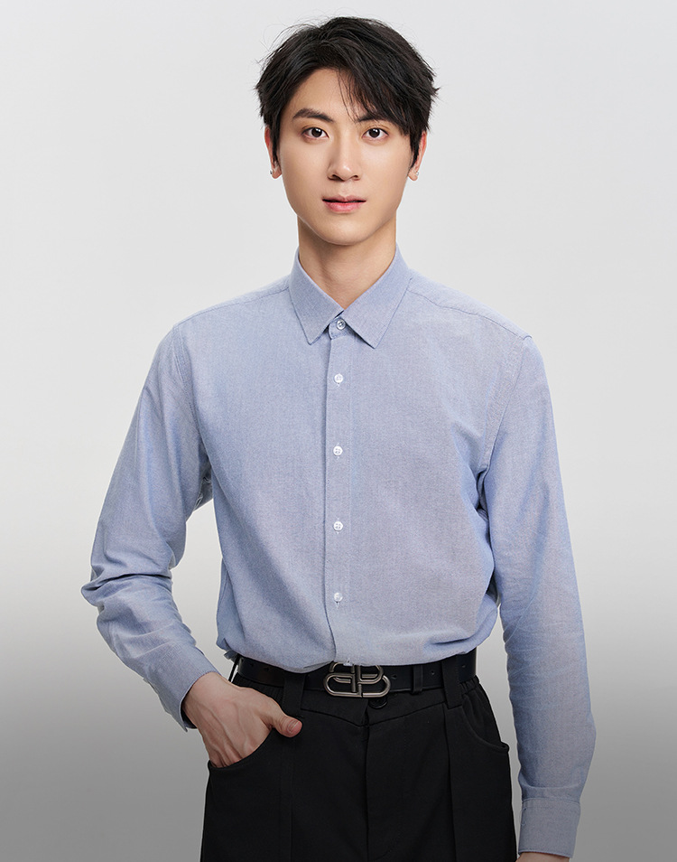 옥스포드 남성 셔츠 격자 무늬 스트라이프 긴 소매 면화 가을과 겨울 레저 비즈니스 액체 암모니아 비 다림질 흰색 파란색 셔츠스토어 가기