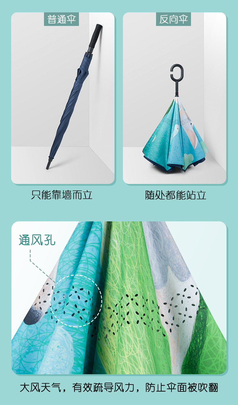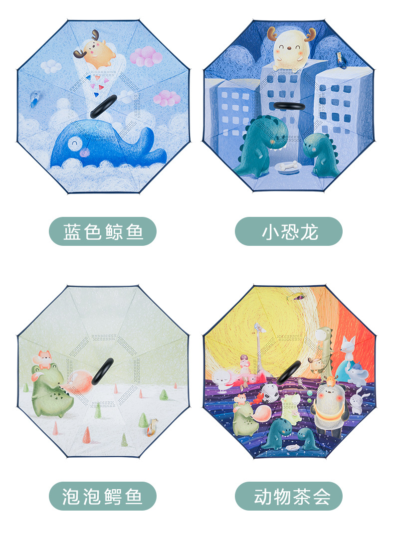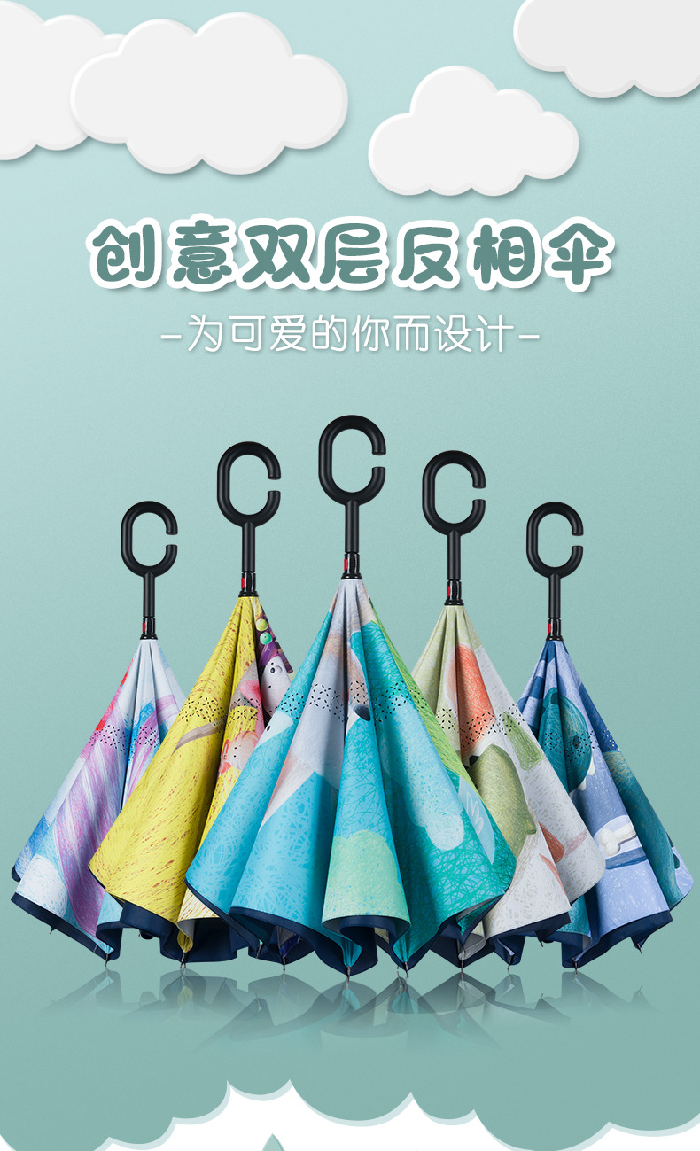 공장 직접 창조적 인 어린이 안전 우산 역 우산 더블 레이어 핸즈프리 자동차 우산을 인쇄 할 수 있습니다
