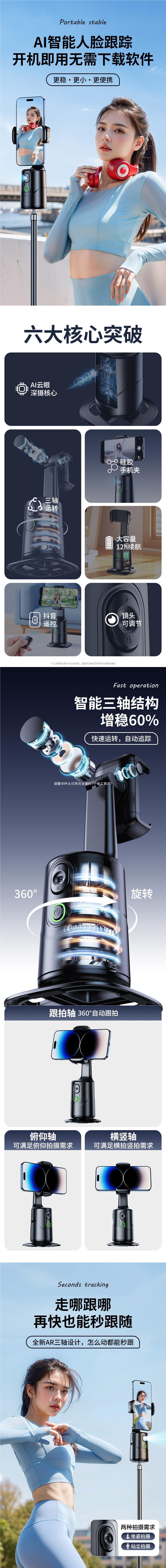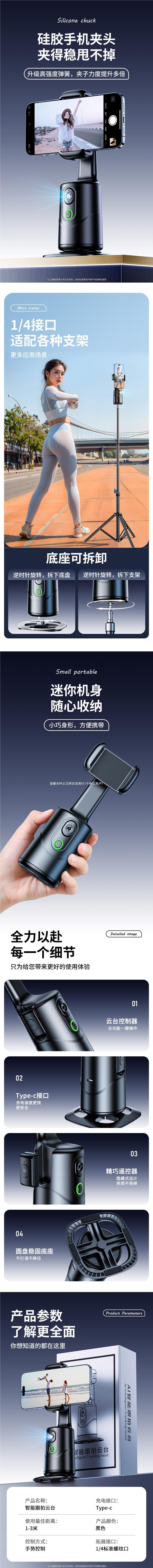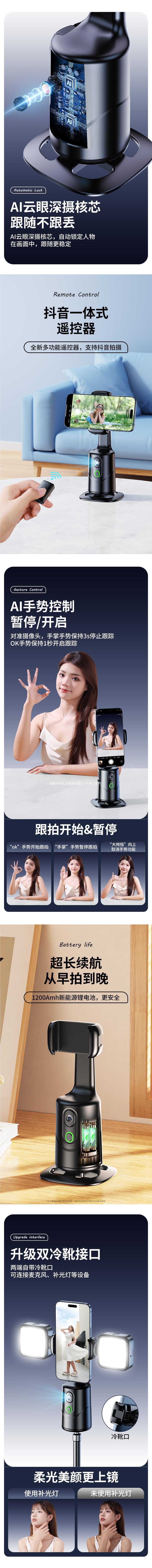 Yuntai 얼굴 추적 휴대 전화 안정제 흔들림 방지 셀프 타이머 삼각대 브래킷 패스 2024 새로운 AI 스마트 후속 조치