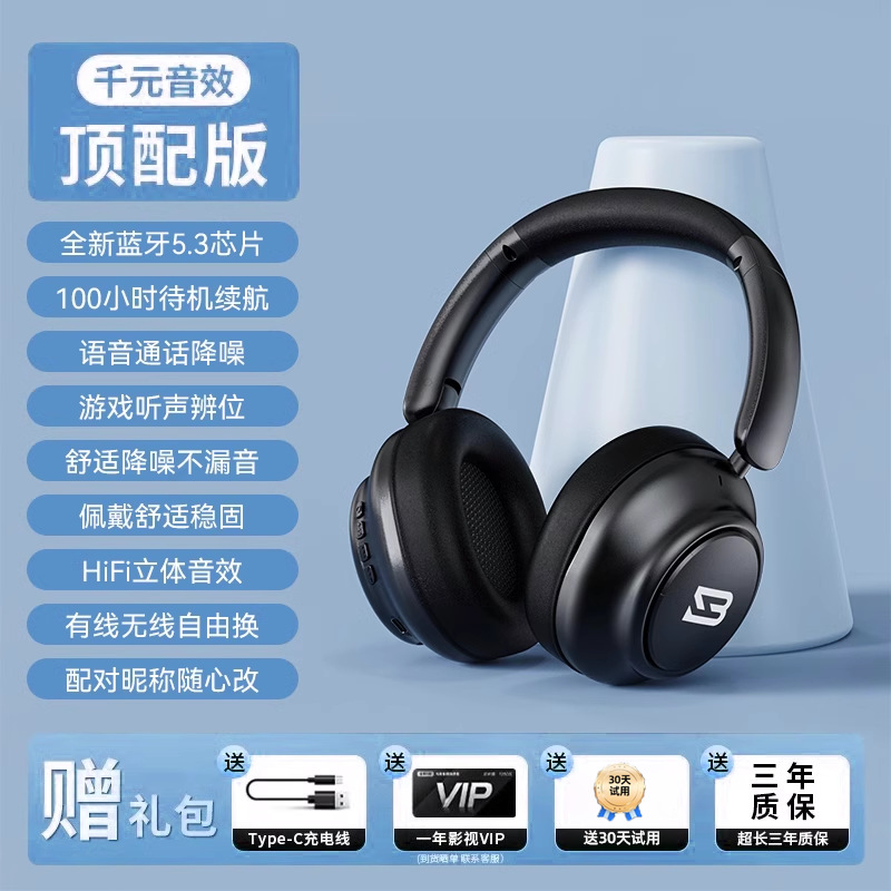 • 클래식 블랙 [천 위안 수준의 최고] Histen 무손실 음향 효과☆200% 향상된 배터리 수명☆자동 재연결☆소음 감소 HD 음성