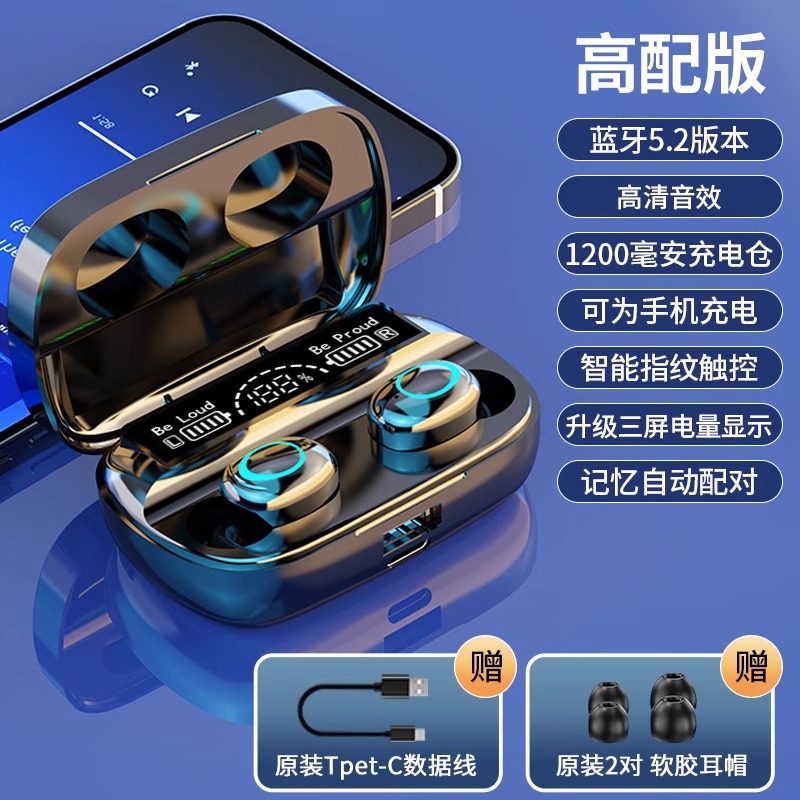 • 블랙 - 고급 버전 [블루투스 5.2 + 1200mAh 전기실 + HIFI 음질 + 휴대폰 충전 가능]