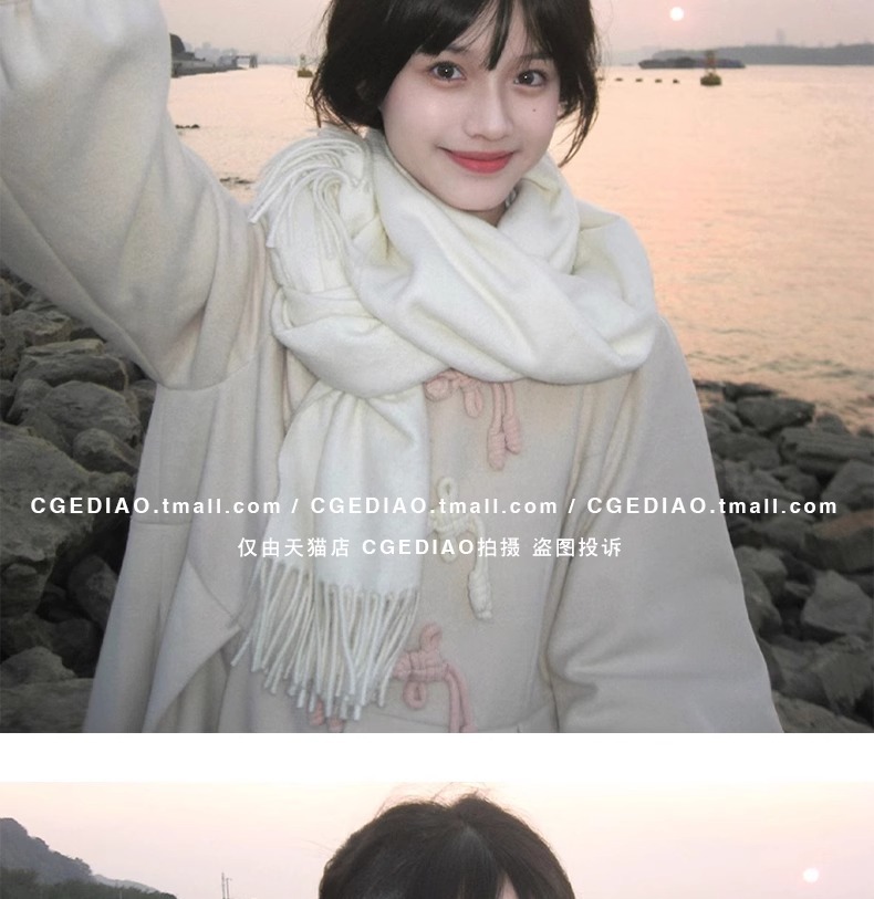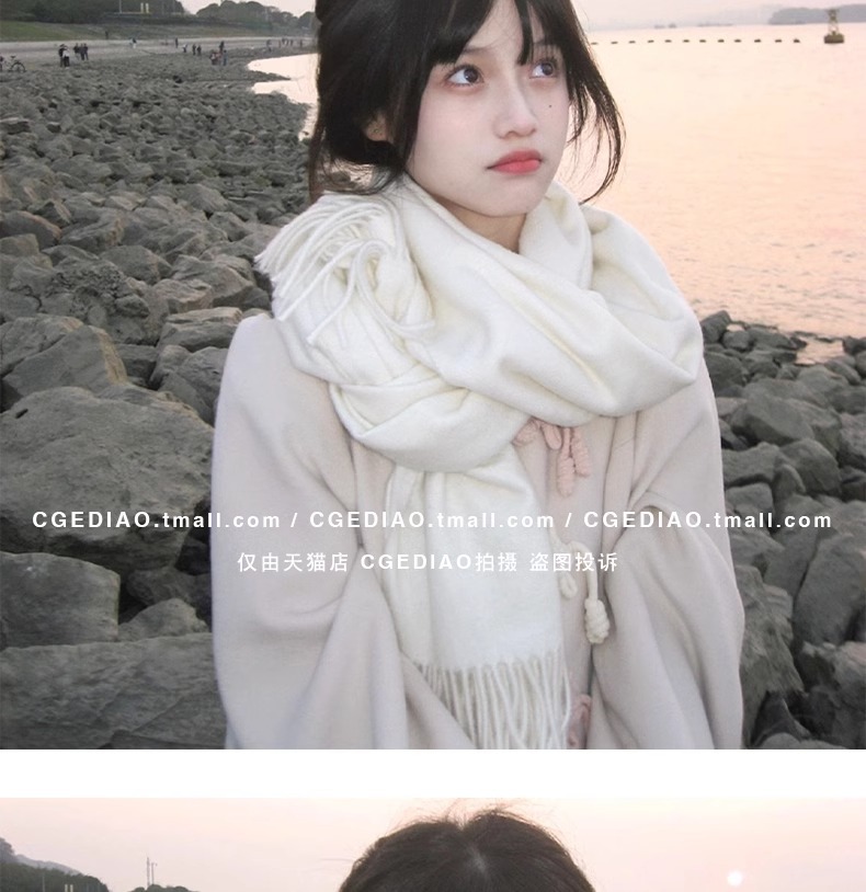 아이보리 스카프 여자 2024 년 새 가을 겨울 일본과 한국 스타일 따뜻한 캐시미어 목도리 고급 분위기 스카프스토어 가기