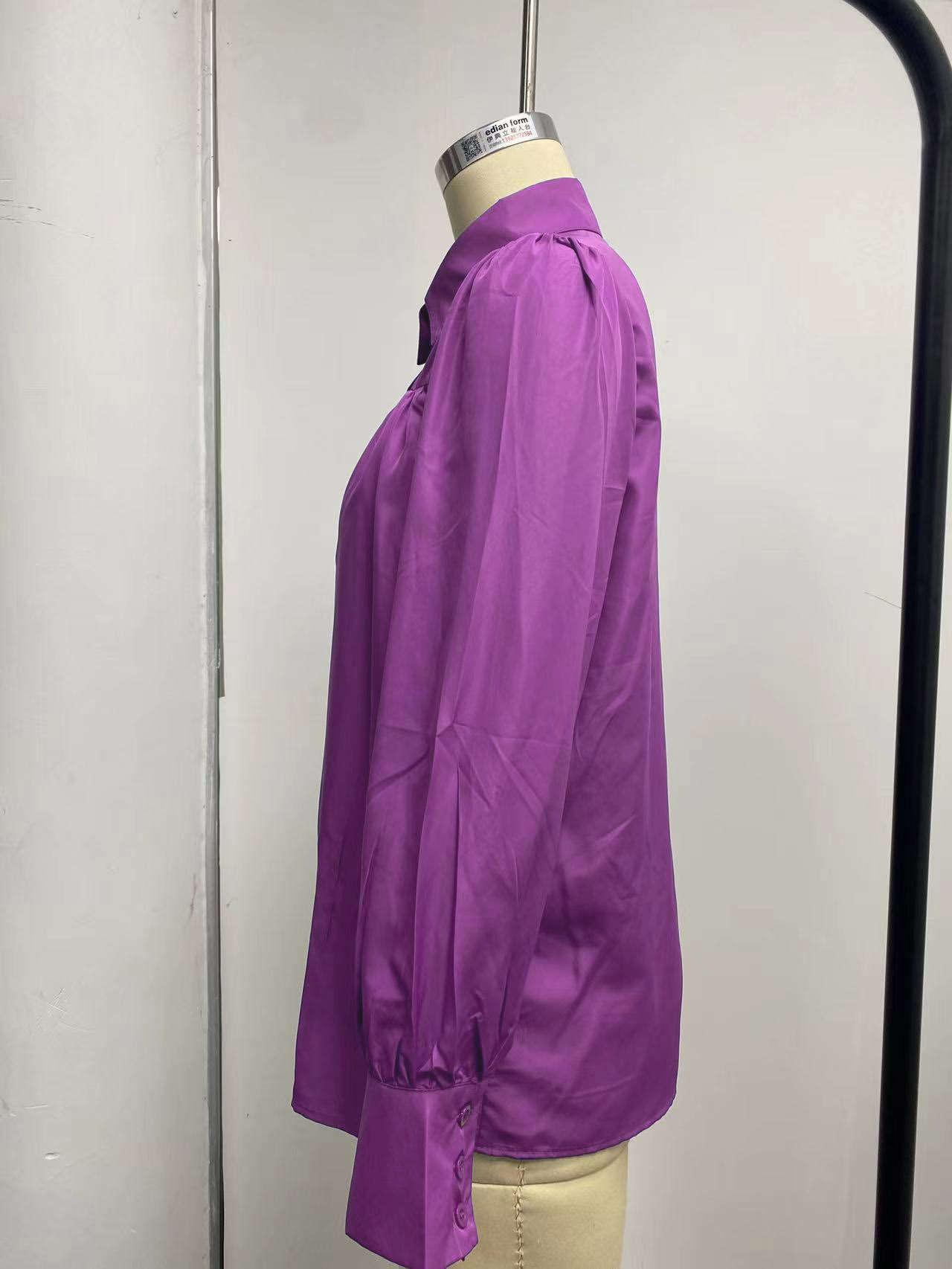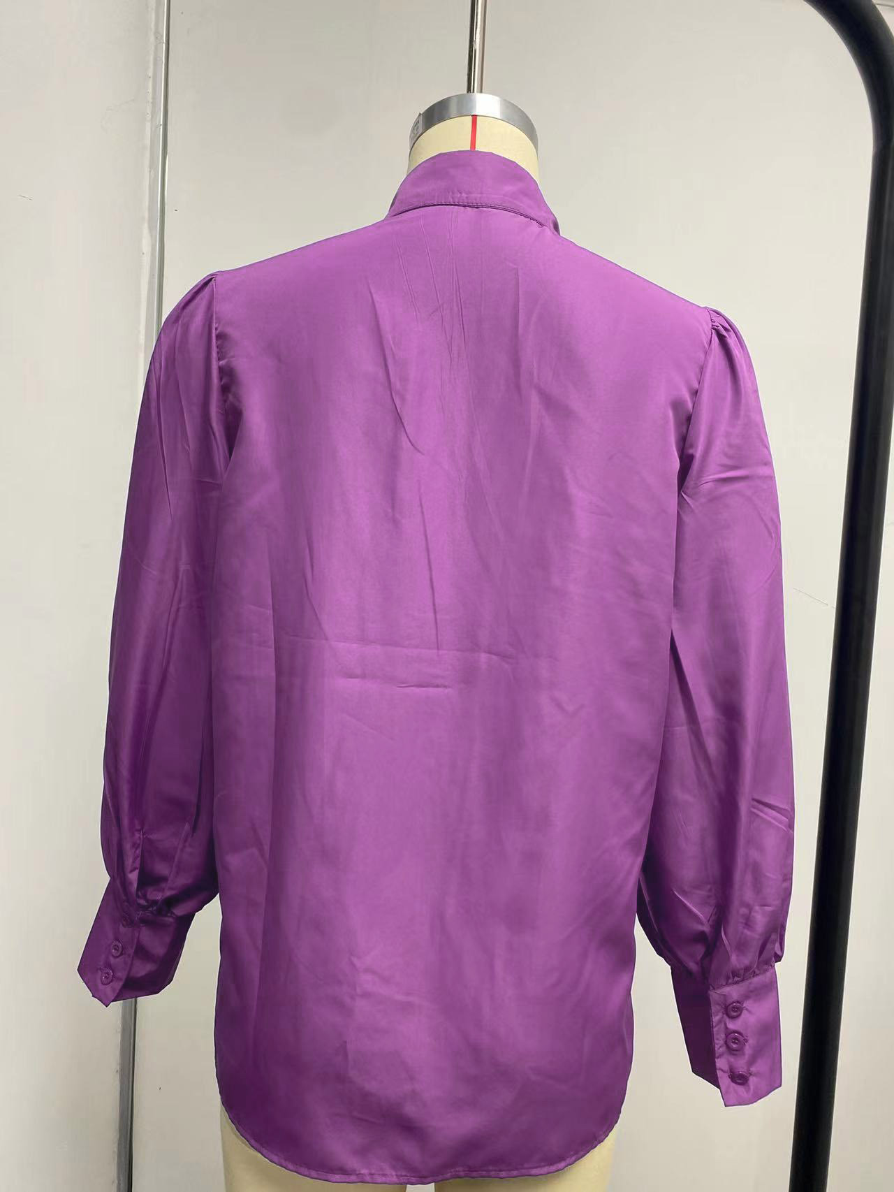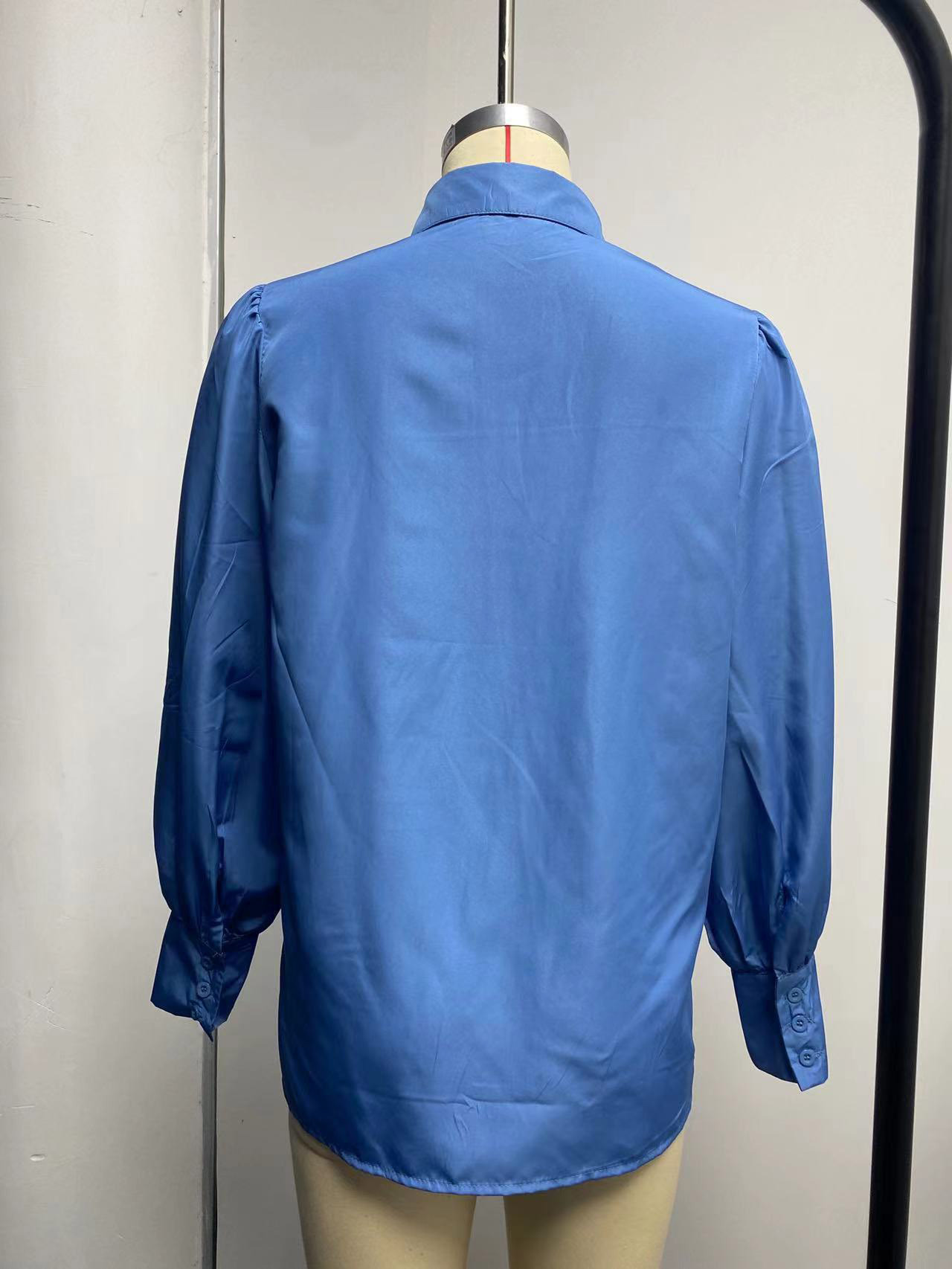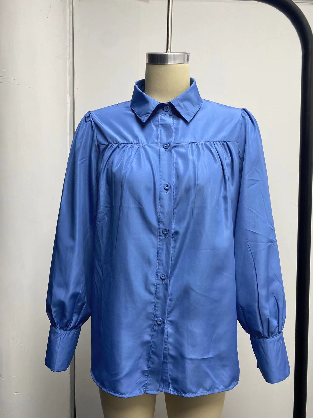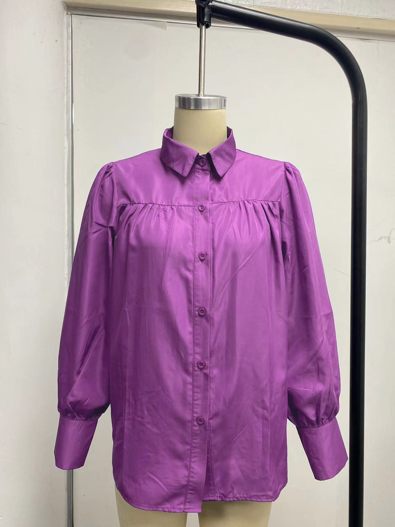 유럽과 미국 국경 2024 새로운 아마존 버클 탑 주름 랜턴 소매 단색 느슨한 셔츠 긴 소매 여성 의류스토어 가기