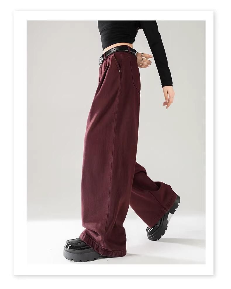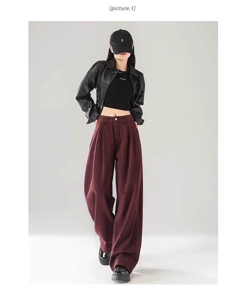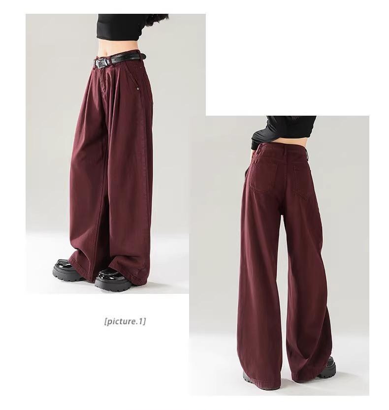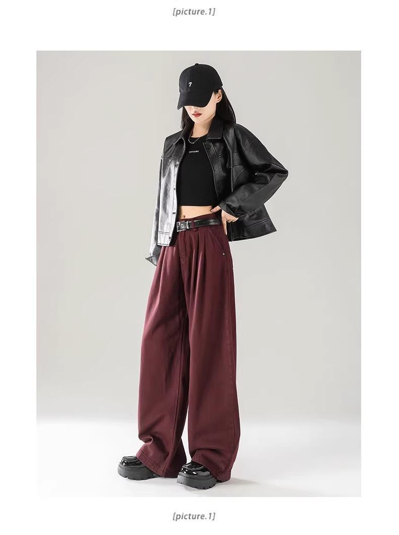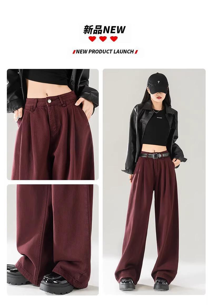 Ankola Red Wide Leg 청바지 여성의 가을 2024 새로운 높은 허리 슬리밍 폭발성 좁은 판 작은 직선 다리 바지스토어 가기