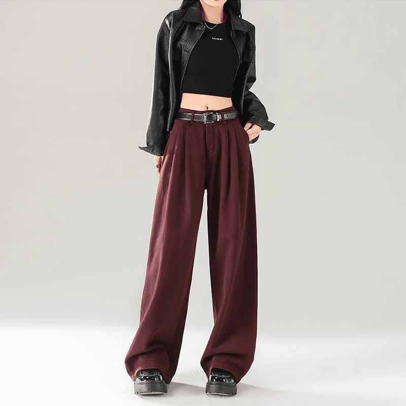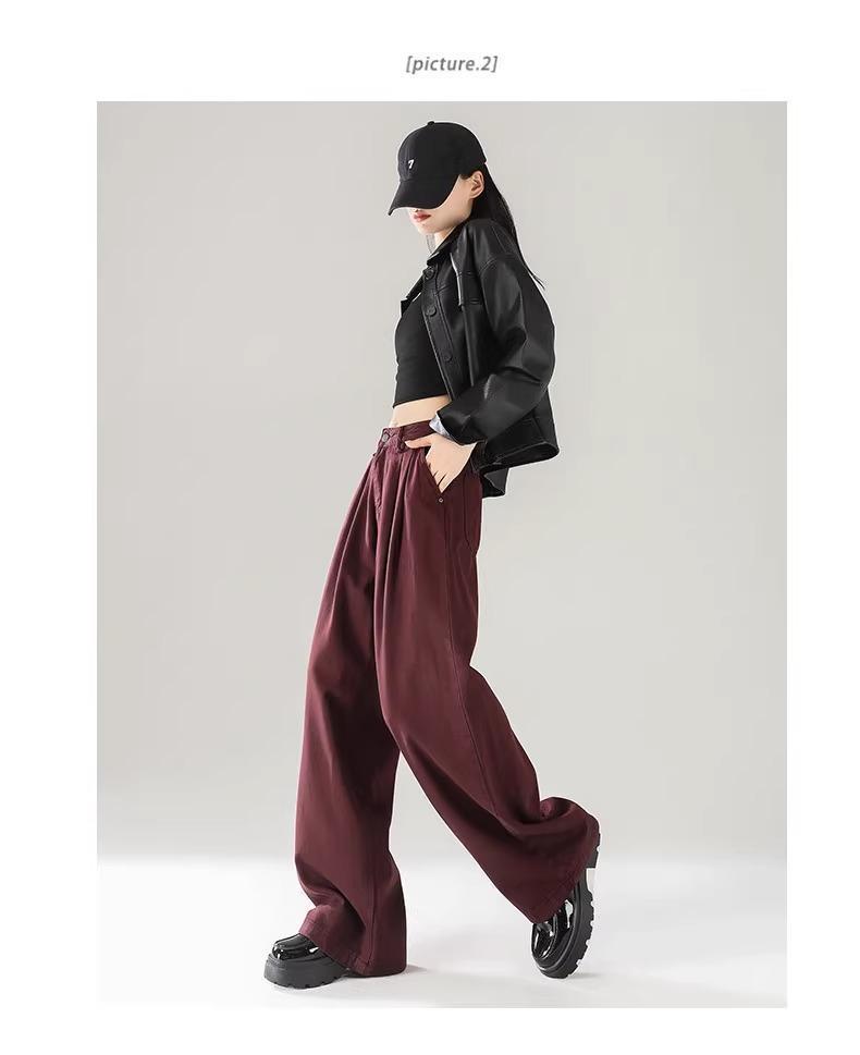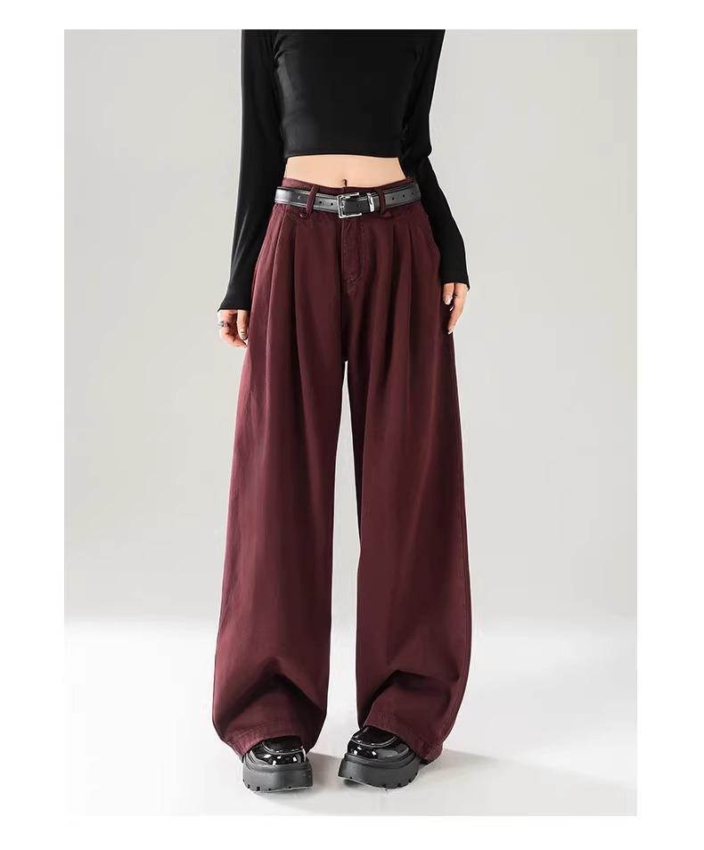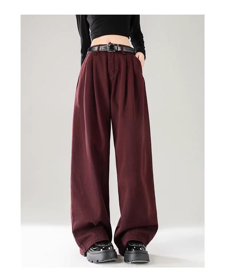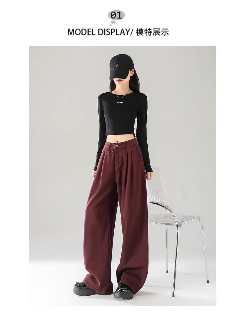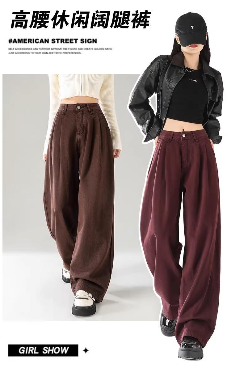Ankola Red Wide Leg 청바지 여성의 가을 2024 새로운 높은 허리 슬리밍 폭발성 좁은 판 작은 직선 다리 바지스토어 가기
