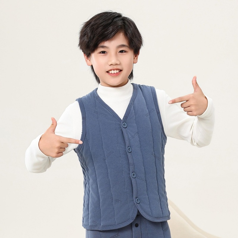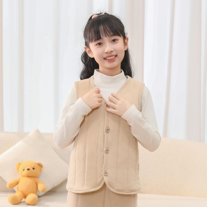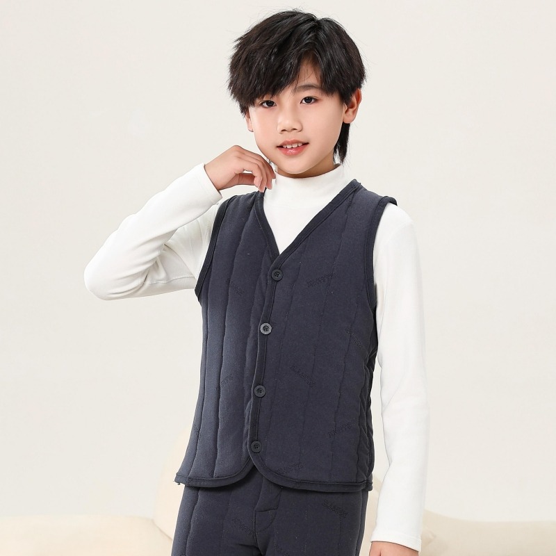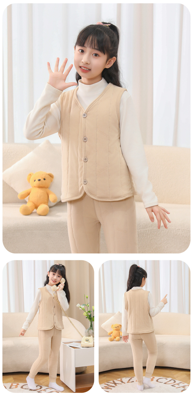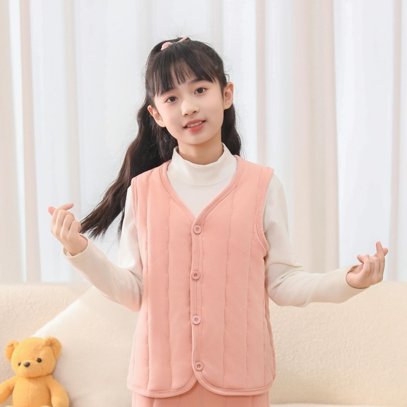 어린이 조끼 2024 년 가을과 겨울 새로운 소년 소녀 외부 코튼 조끼를 입고 두꺼운 면화 조끼 착용