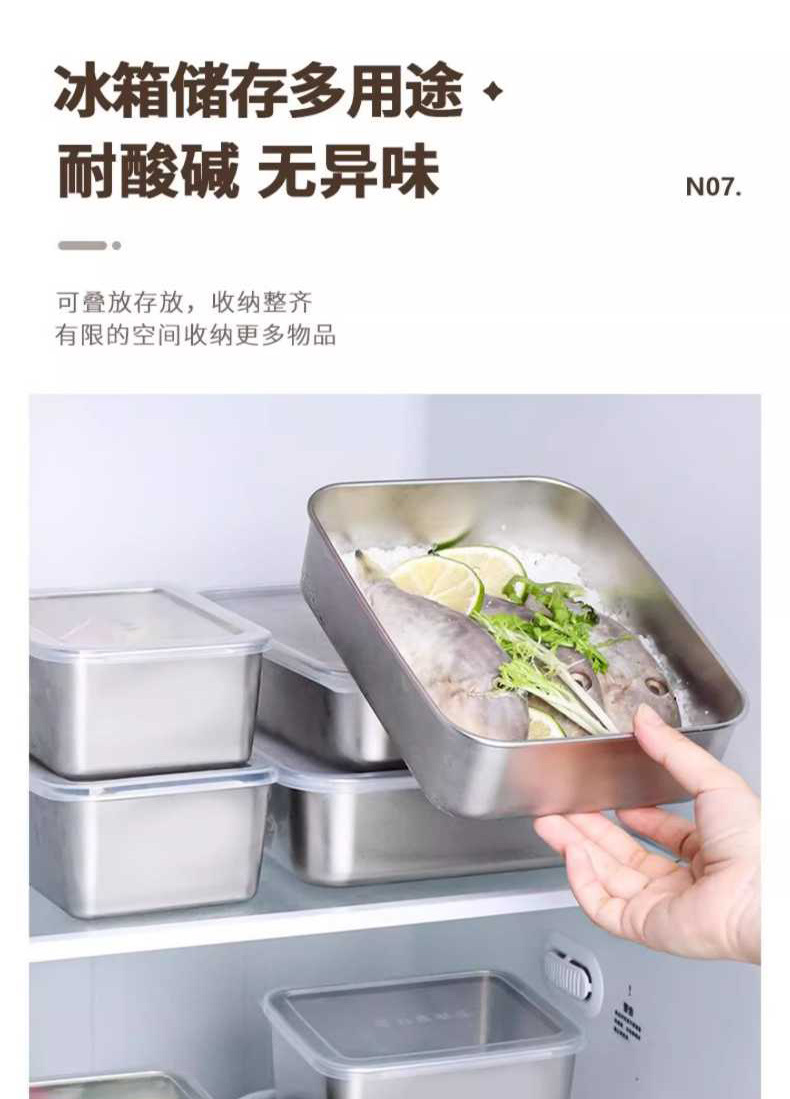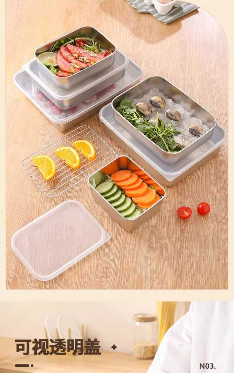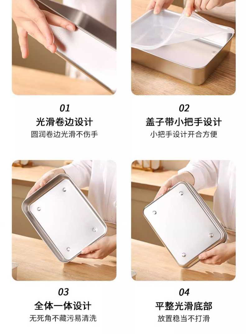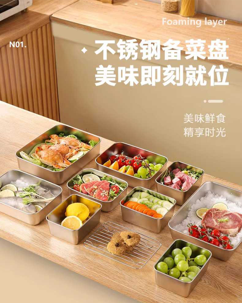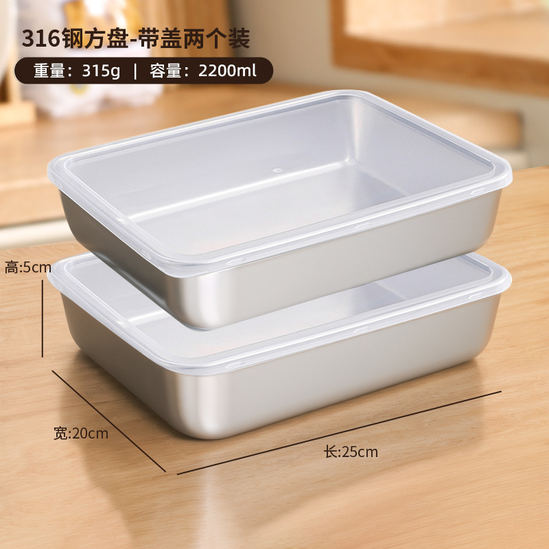 • [316항균강] 신선도 유지 사각접시 - 뚜껑 없음 (1개)
