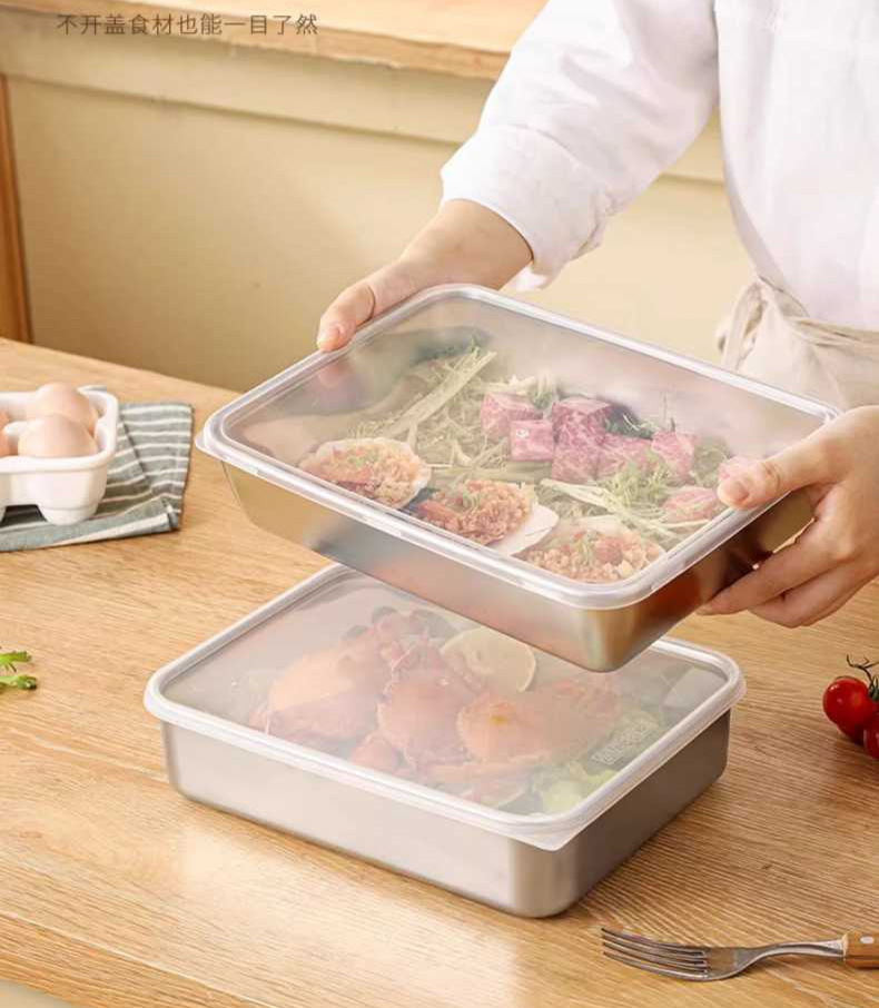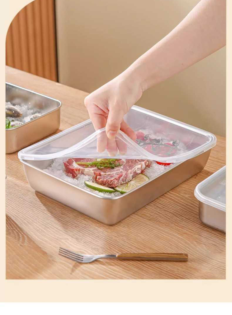 식품 등급 스테인리스 스틸 조리용 접시, 주방 생식품 전용 직사각형 뚜껑이 있는 스테인리스 스틸 수건 접시