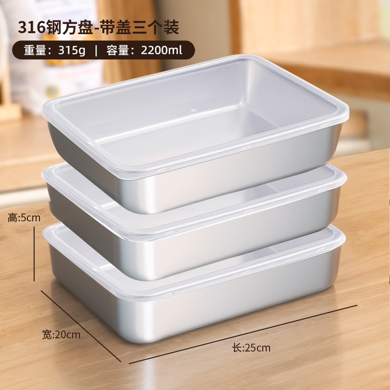 • [316항균스틸] 신선도 유지 사각접시 - 뚜껑 없음 (3개입)
