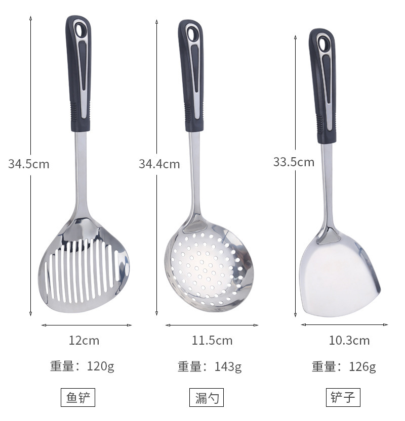 두꺼운 스테인레스 스틸 냄비 삽 가정용 주방 고온 내성 볶음 볶음 볶음 쌀 숟가락 요리 주방용품 세트