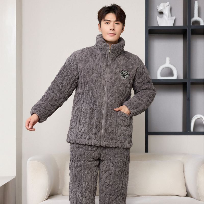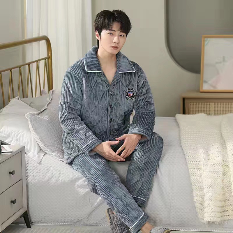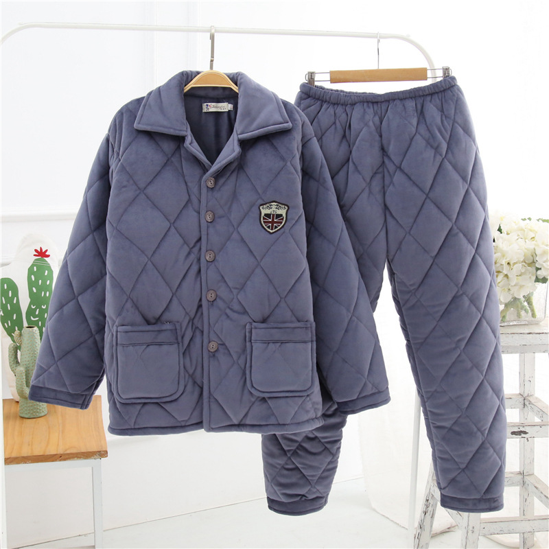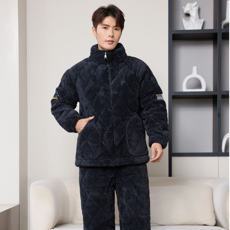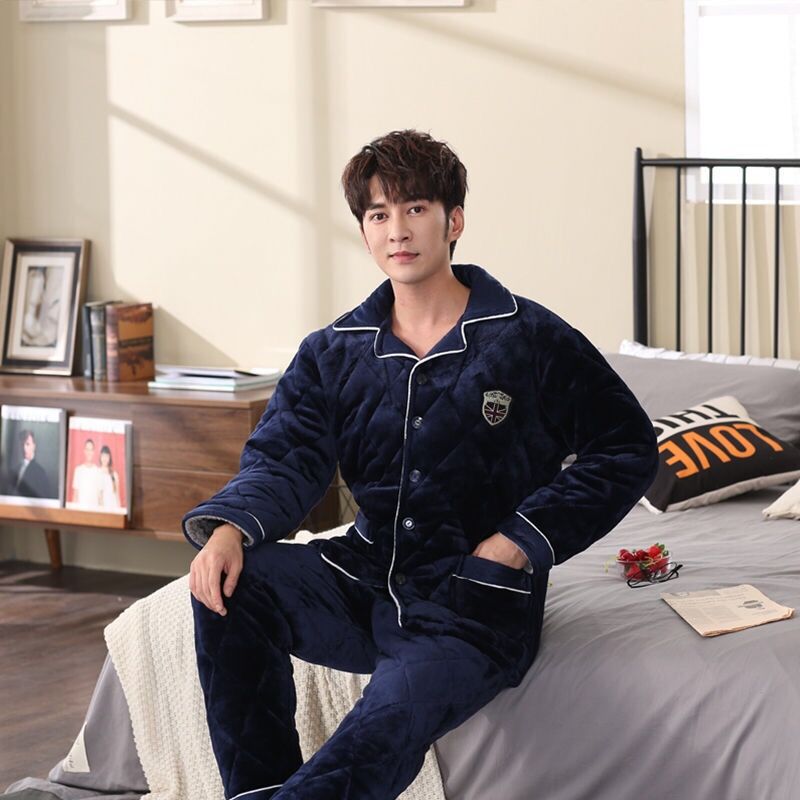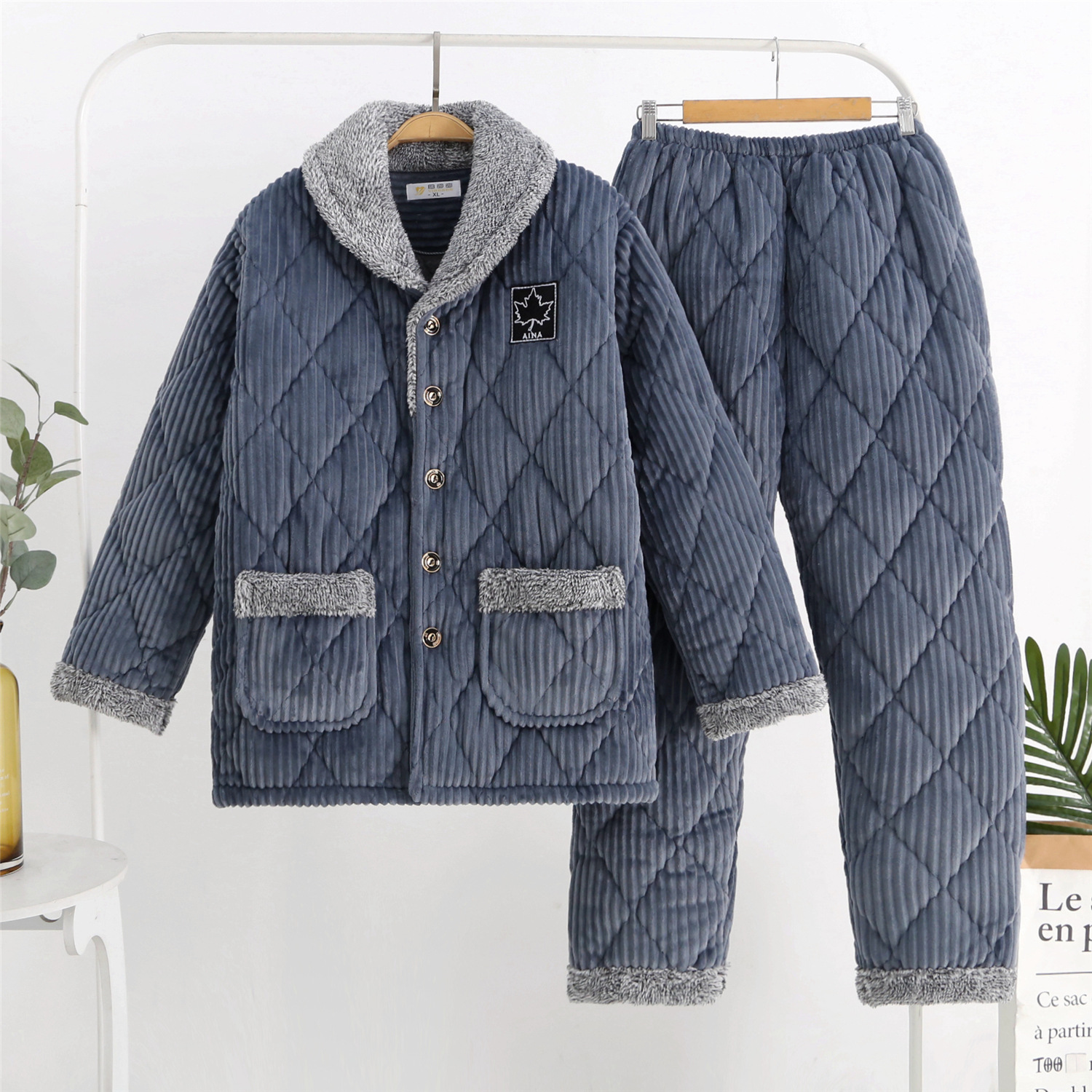잠옷 남자의 겨울 두꺼운 기모 산호 양털 퀼트 따뜻한 3 층 플란넬 남자 가을 겨울 홈 세트