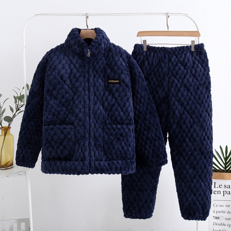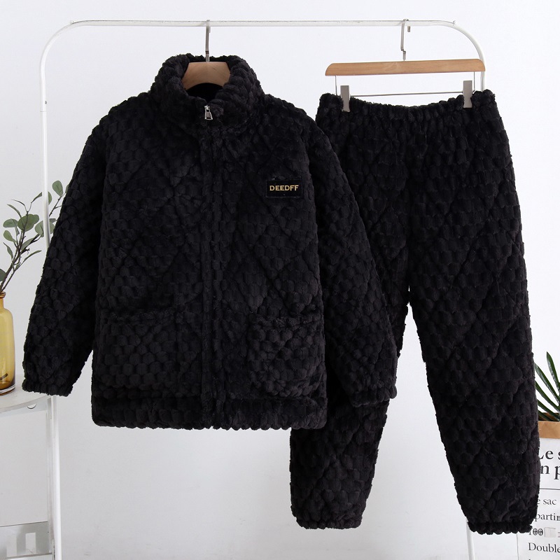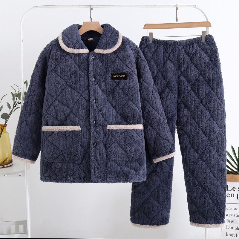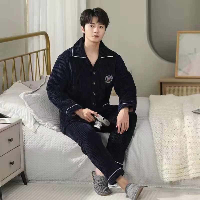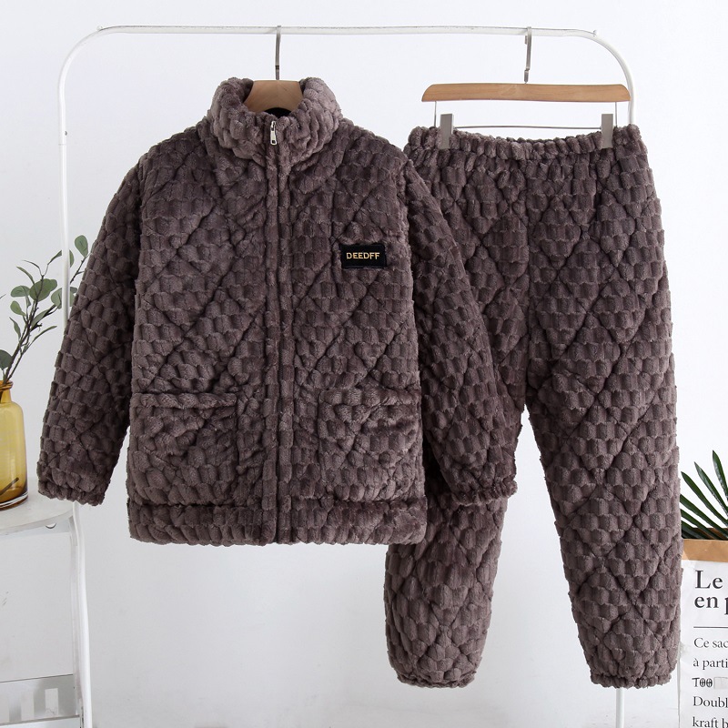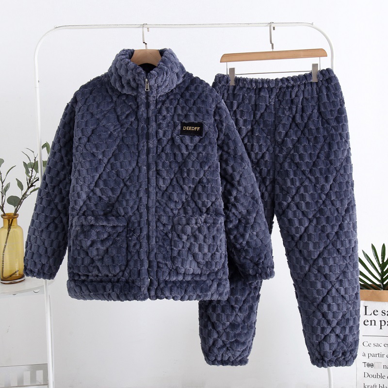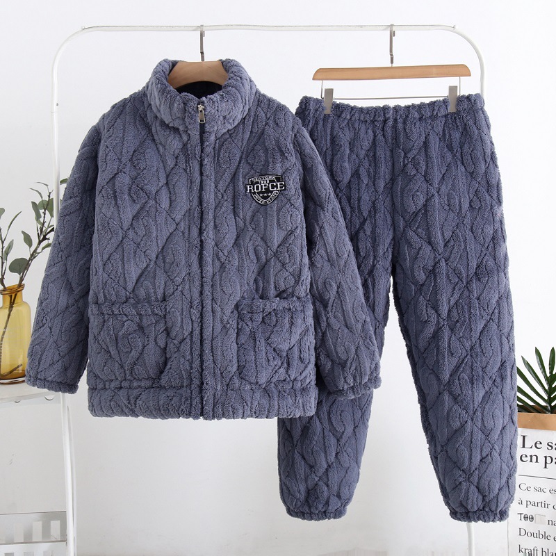 잠옷 남자의 겨울 두꺼운 기모 산호 양털 퀼트 따뜻한 3 층 플란넬 남자 가을 겨울 홈 세트
