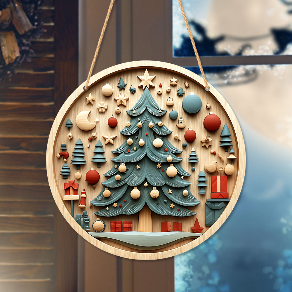 국경 간 새로운 산타 클로스 선물 나무 디스크 매달려 문 및 Windows 침실 거실 휴일 분위기 장식