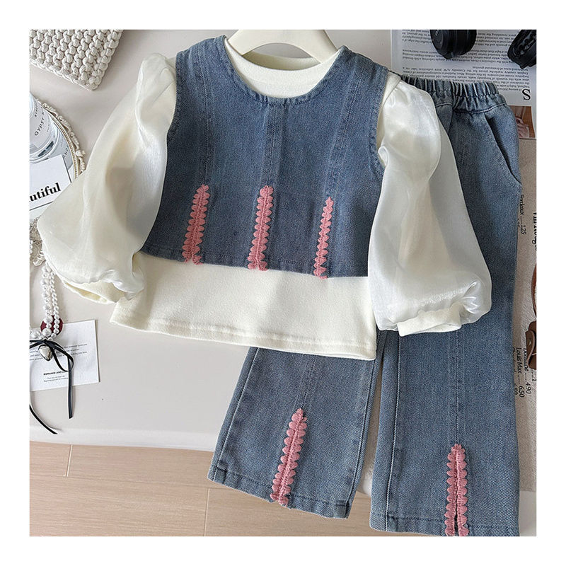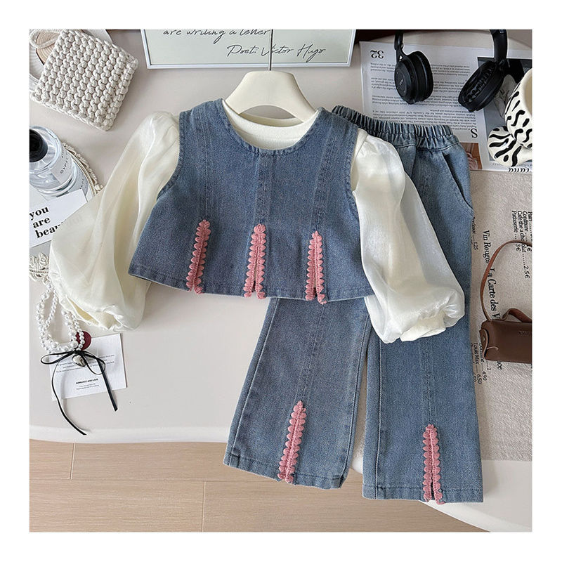 【재고 있음】2025년 신상 여아용 샤넬 스타일 세트, 봄 가을 인기 패션, 한국 스타일 여아 조끼