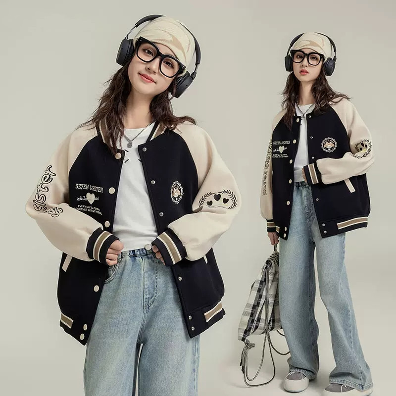 소녀 야구 세트 봄과 가을 새로운 인터넷 인기있는 어린이 의류 소녀 가을 캐주얼 스포츠 옷 큰 어린이 가을 코트