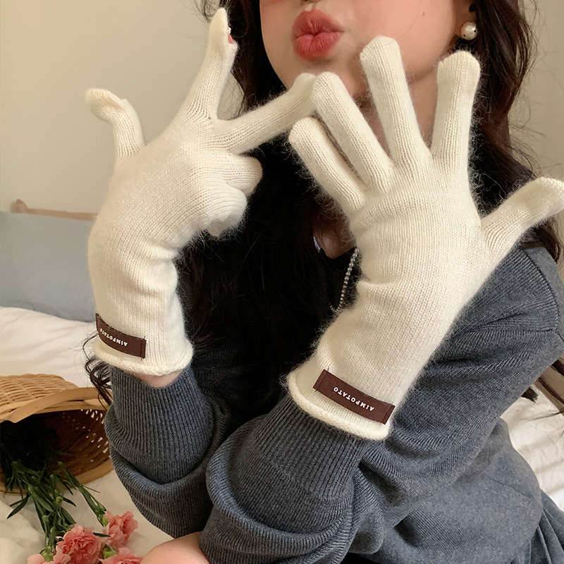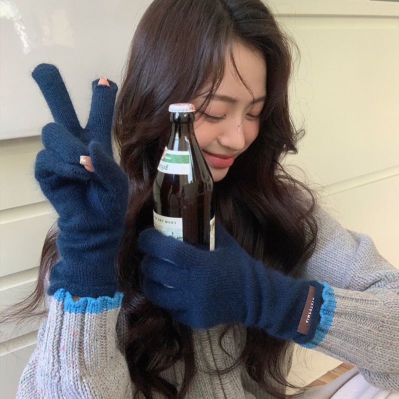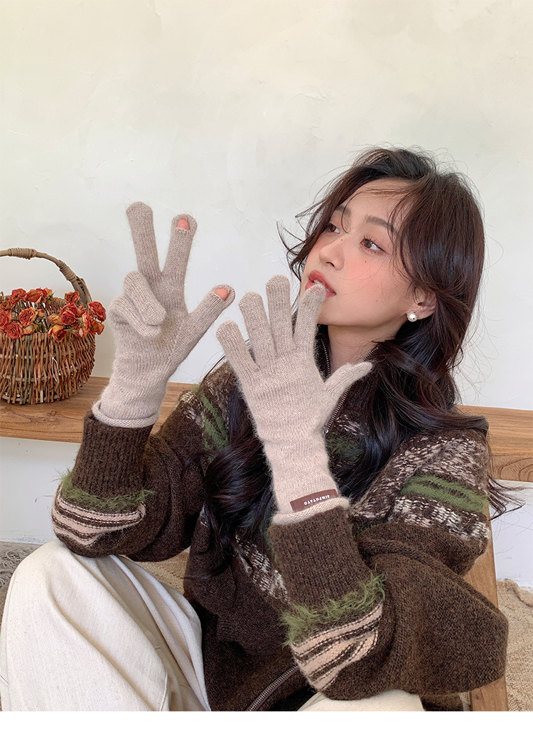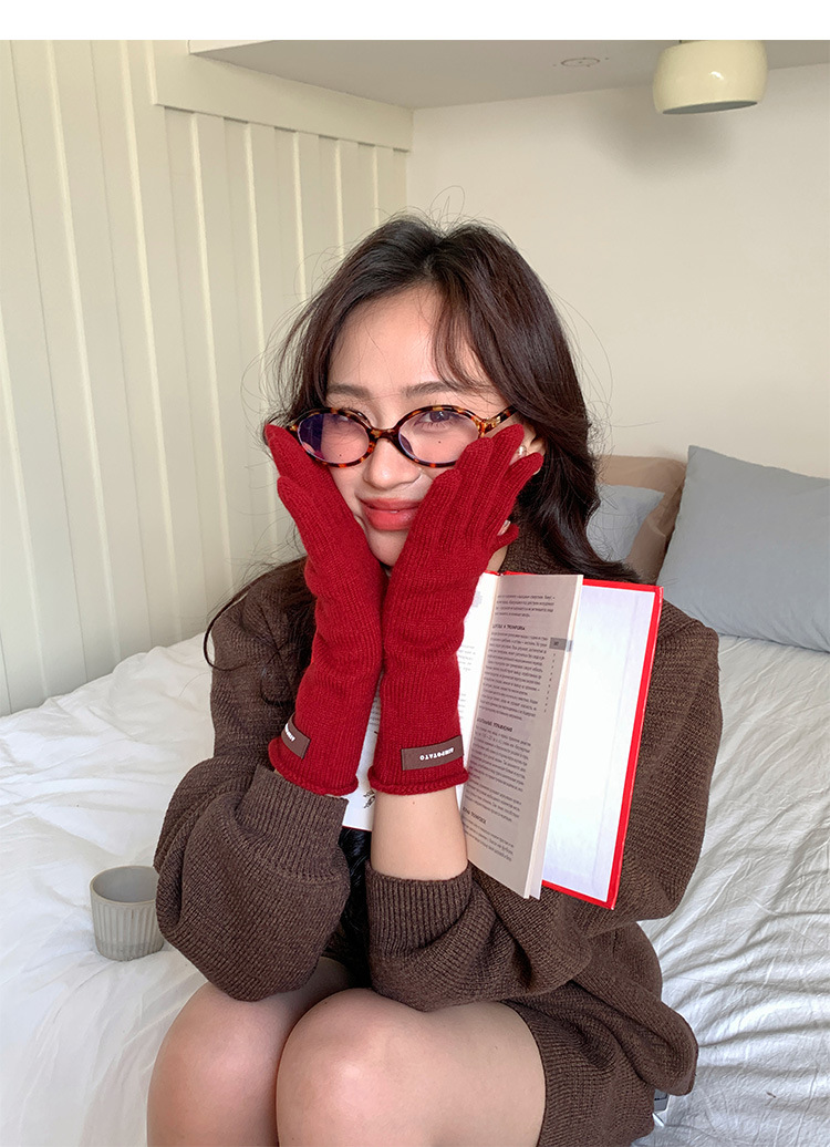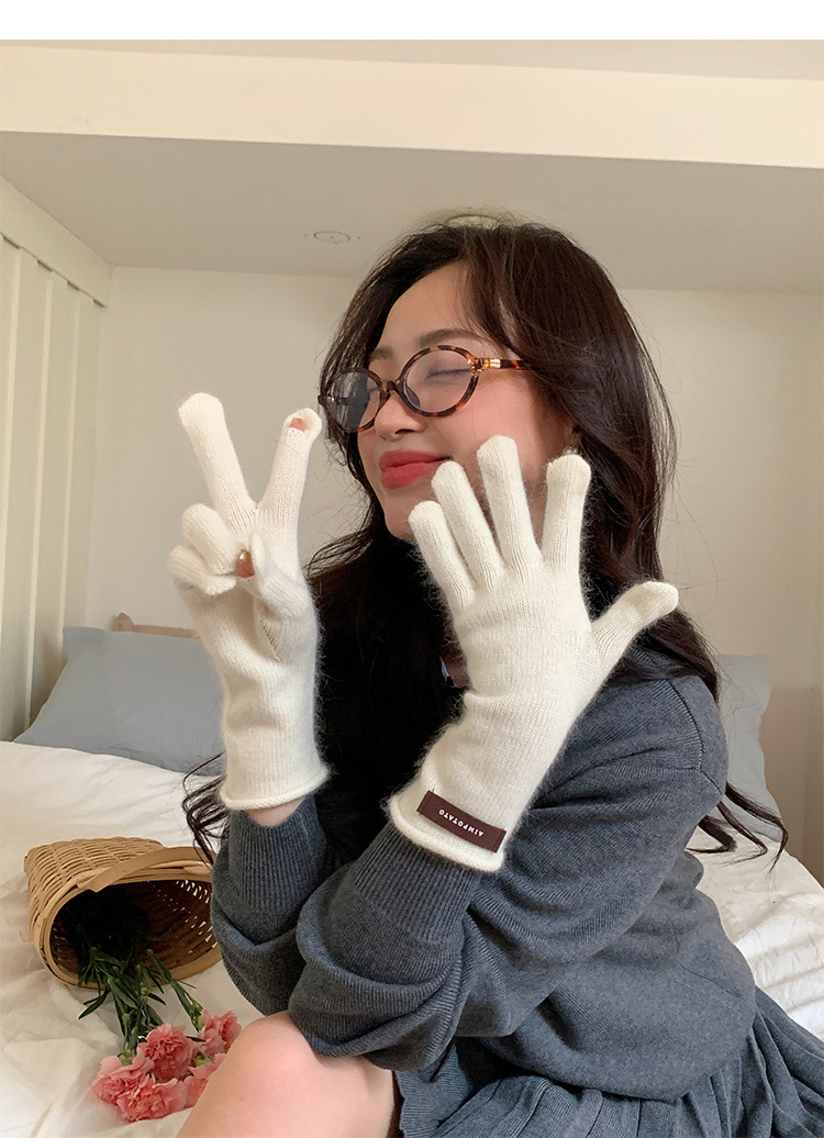 가을과 겨울 따뜻한 Ins 부드러운 왁스 솔리드 컬러 레이스 울 장갑 여성의 겨울 따뜻한 니트 5 손가락 터치 스크린 장갑스토어 가기
