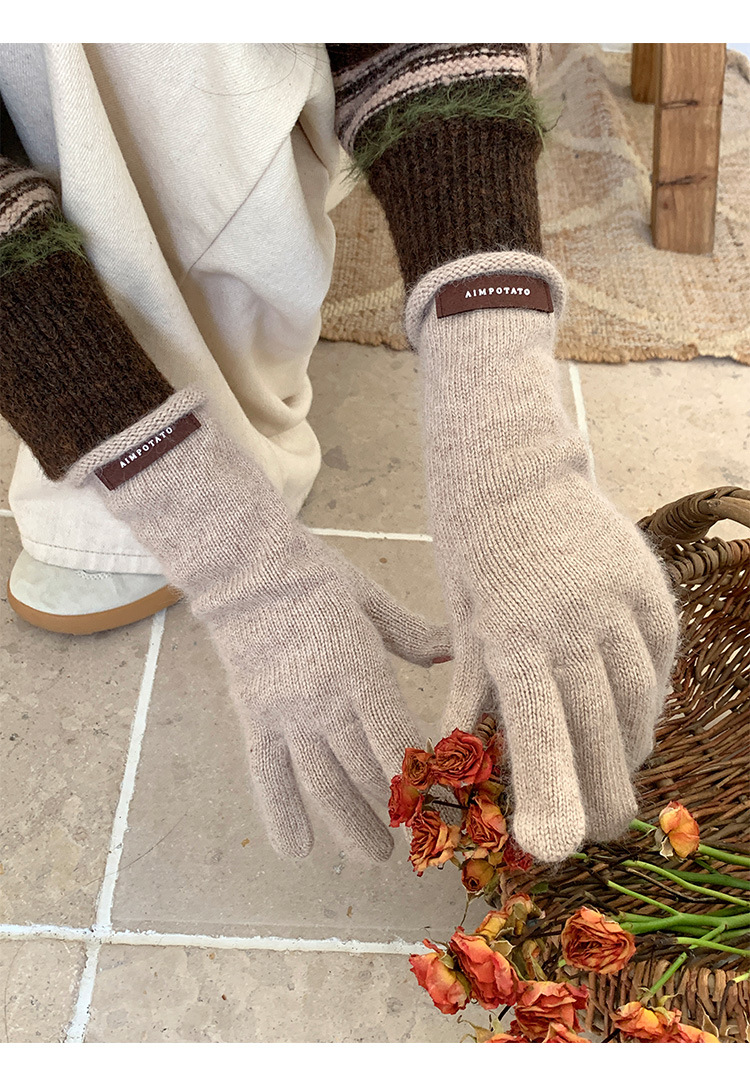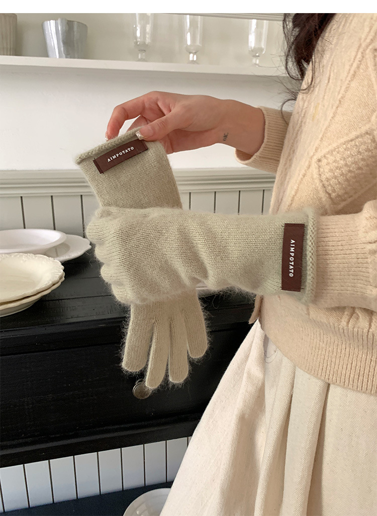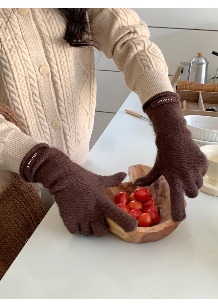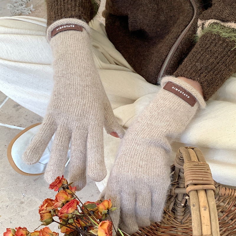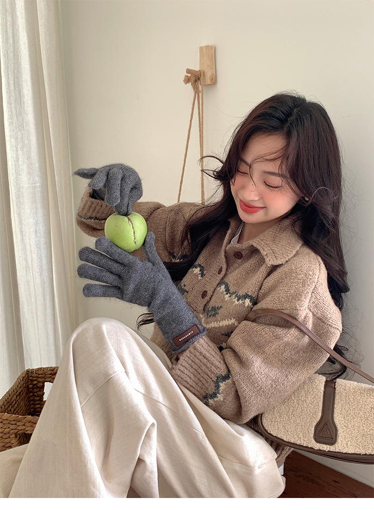 가을과 겨울 따뜻한 Ins 부드러운 왁스 솔리드 컬러 레이스 울 장갑 여성의 겨울 따뜻한 니트 5 손가락 터치 스크린 장갑스토어 가기