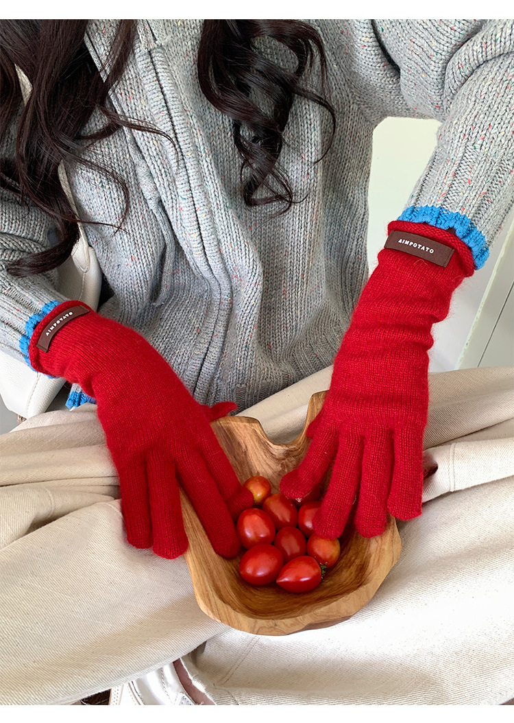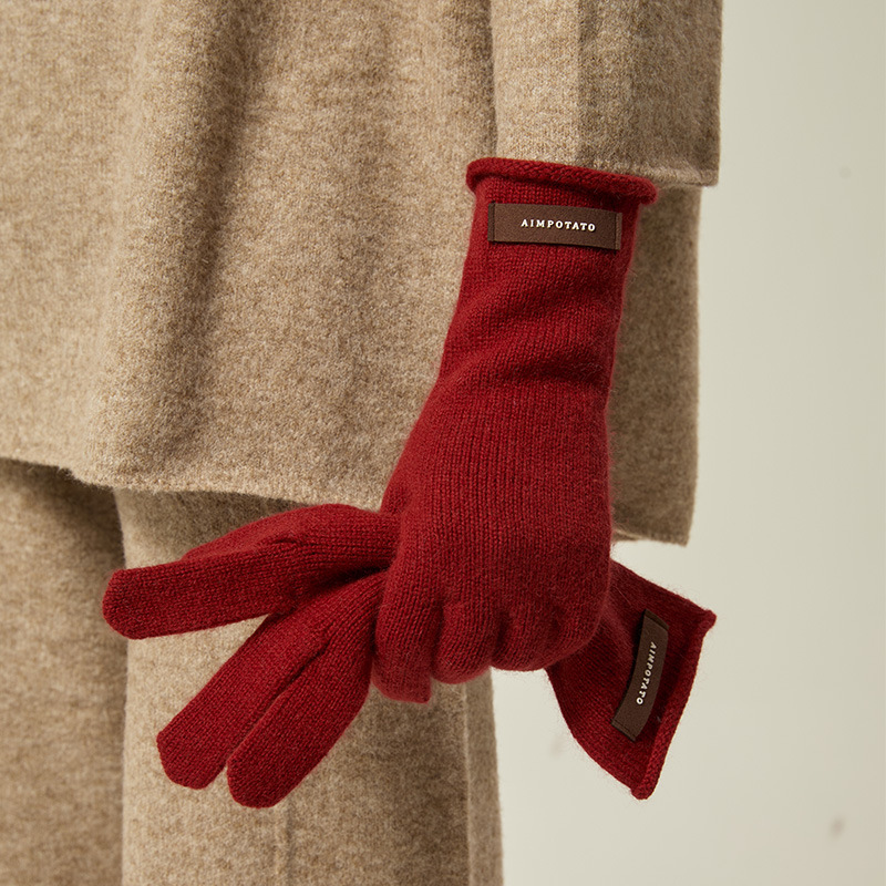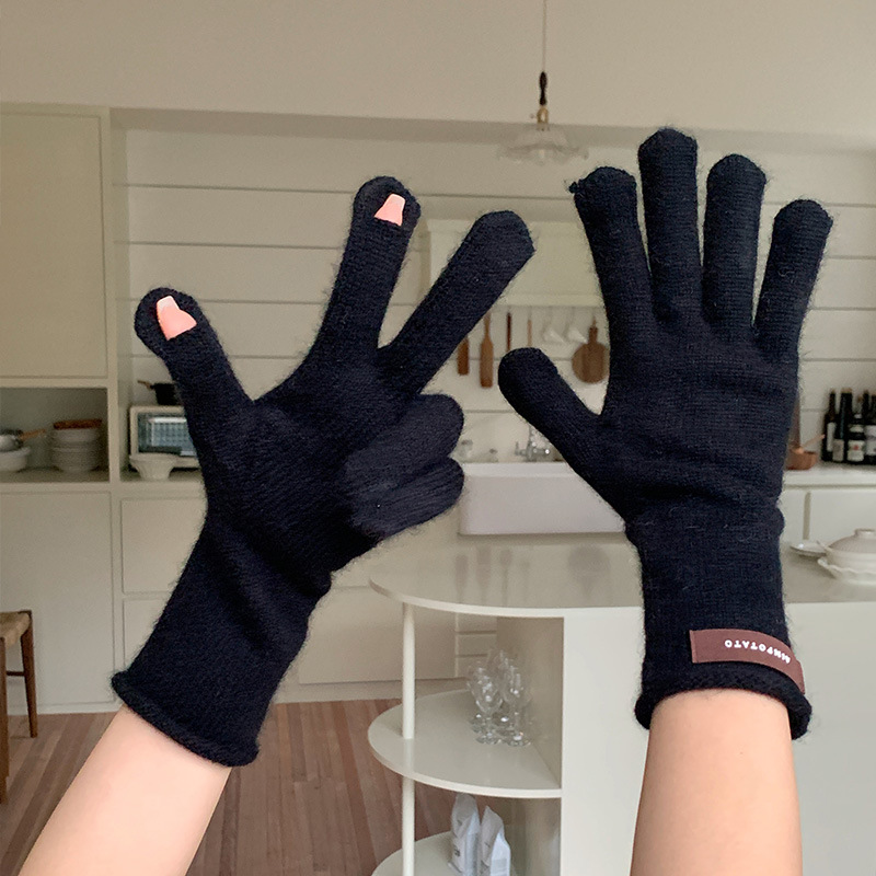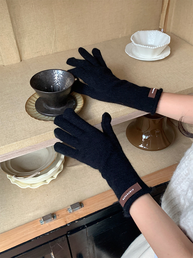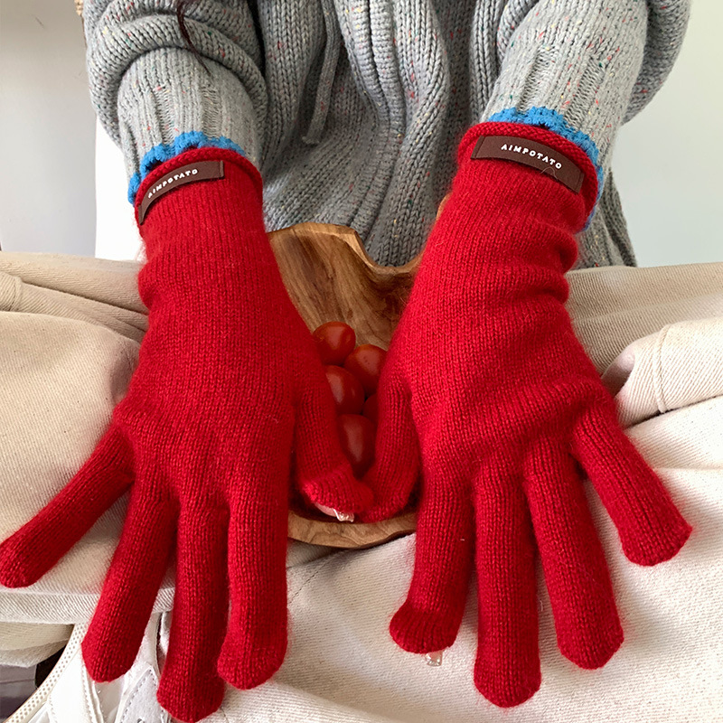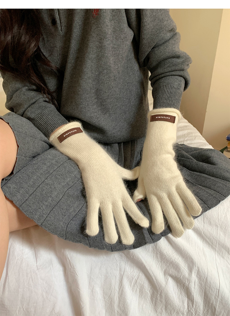 가을과 겨울 따뜻한 Ins 부드러운 왁스 솔리드 컬러 레이스 울 장갑 여성의 겨울 따뜻한 니트 5 손가락 터치 스크린 장갑