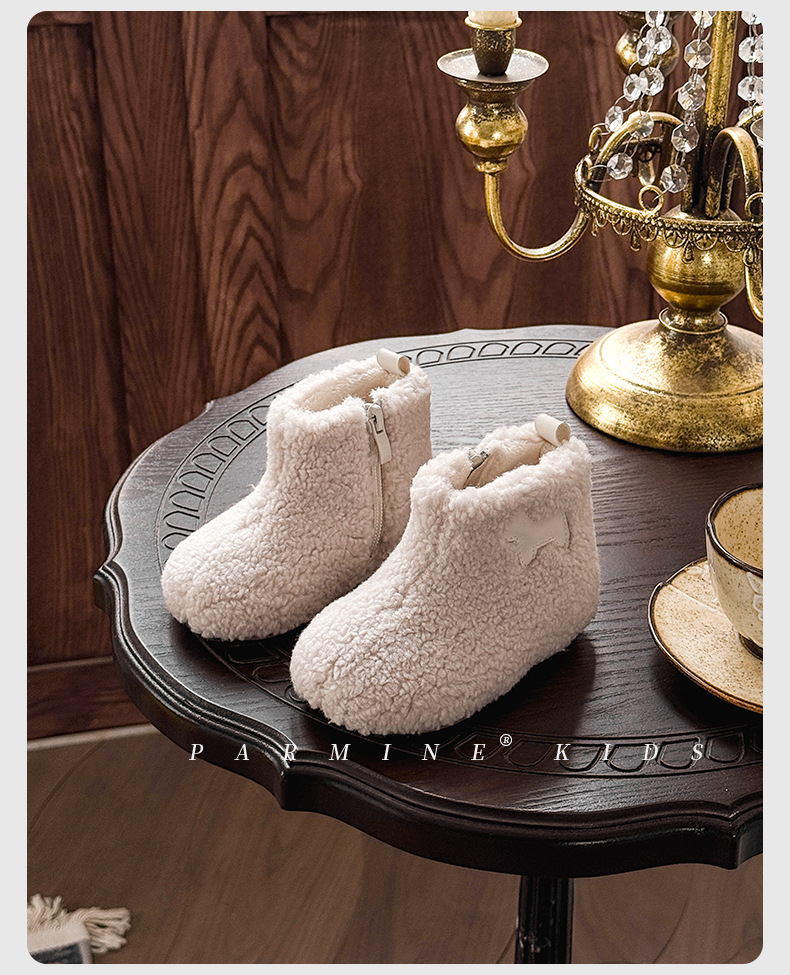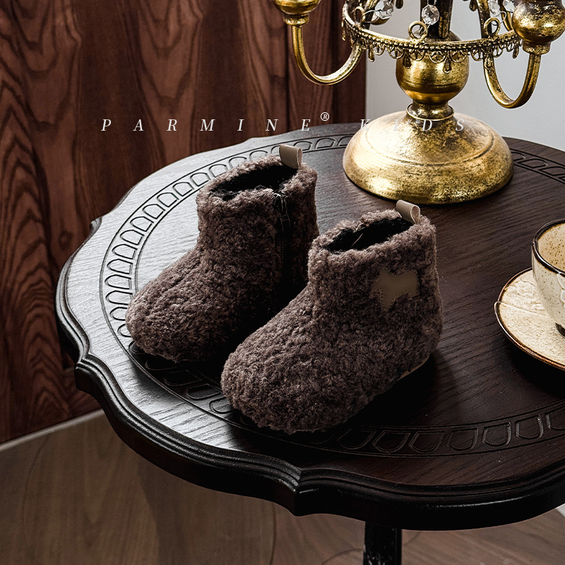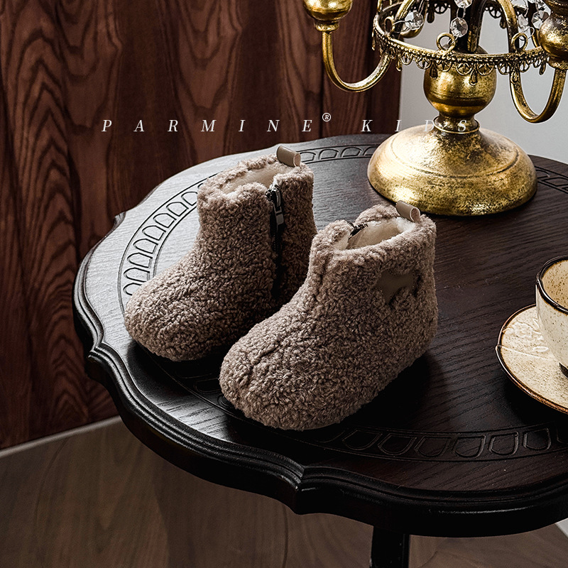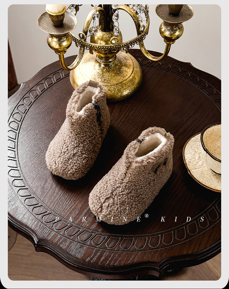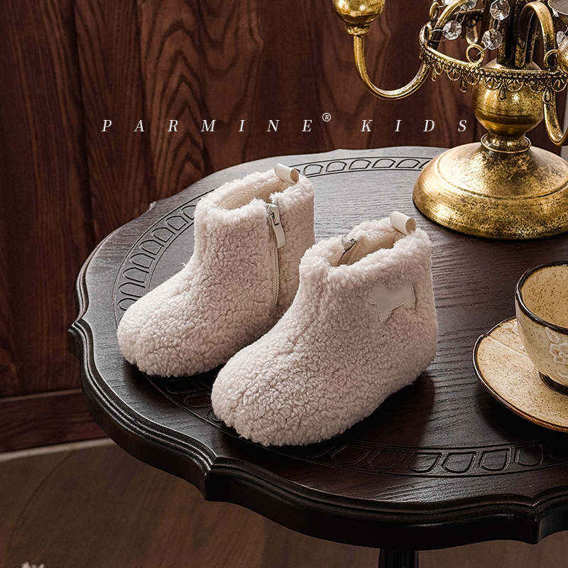 벨벳과 두꺼운 2025 겨울 소년 소녀용 부드러운 밑창 스노우 부츠가 포함된 어린이용 심플하고 세련된 캐주얼 면 부츠스토어 가기