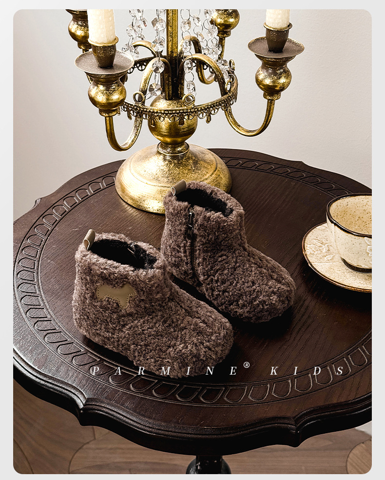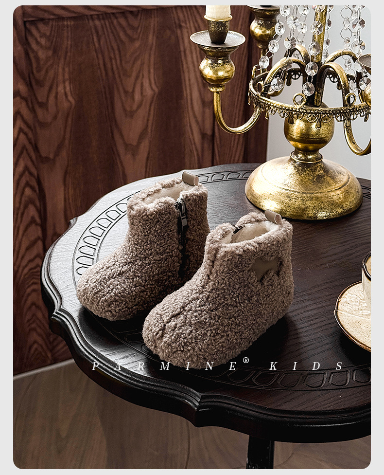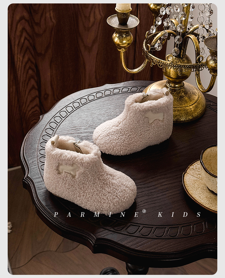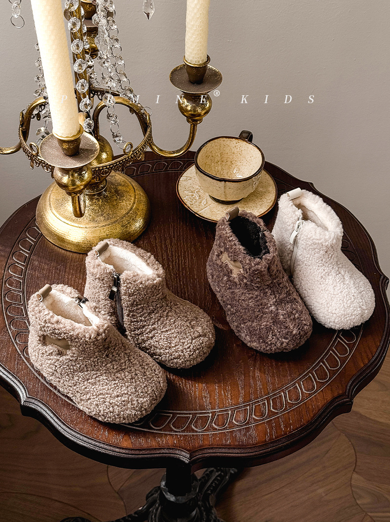 벨벳과 두꺼운 2025 겨울 소년 소녀용 부드러운 밑창 스노우 부츠가 포함된 어린이용 심플하고 세련된 캐주얼 면 부츠스토어 가기