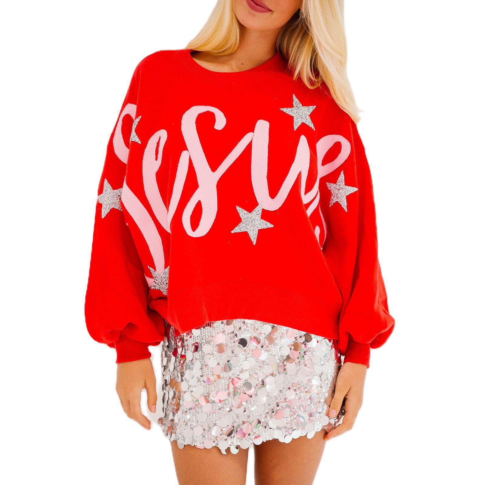 유럽 및 미국 스타일 여성 가을 겨울 레터링 루즈핏 긴팔 스웨트셔츠 패셔너블하고 다재다능한 유럽 및 미국 스타일 캐주얼 패션스토어 가기