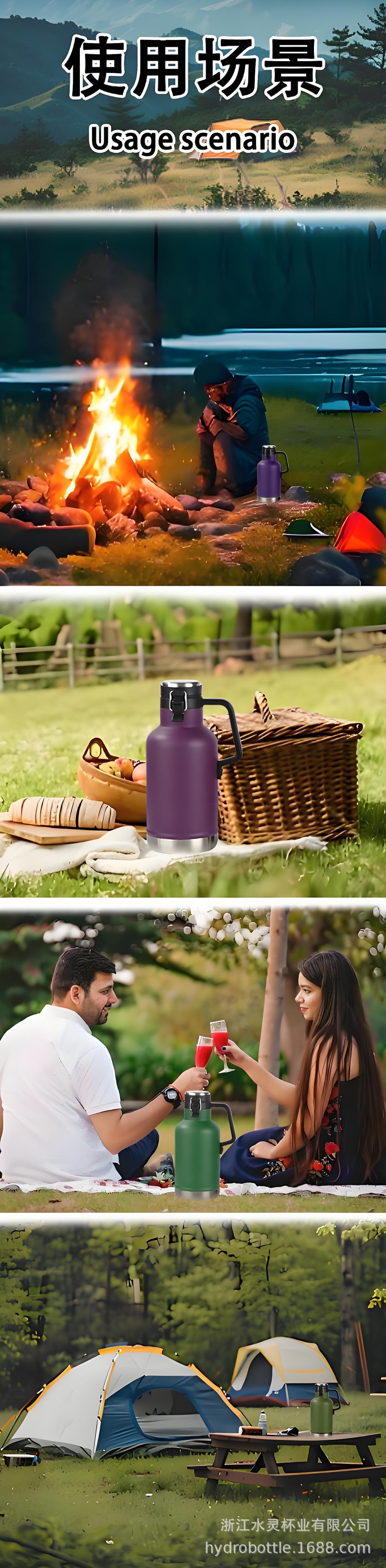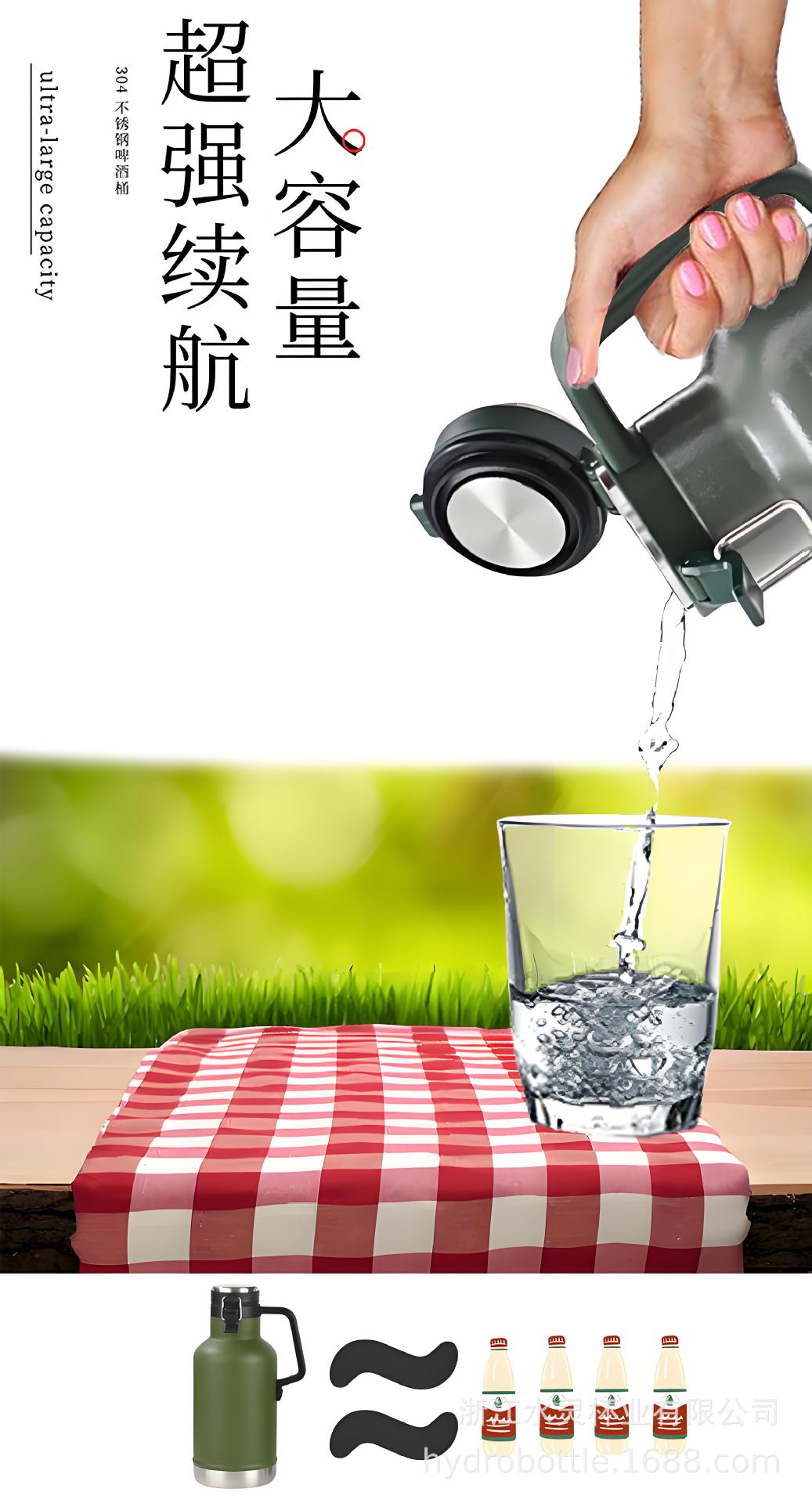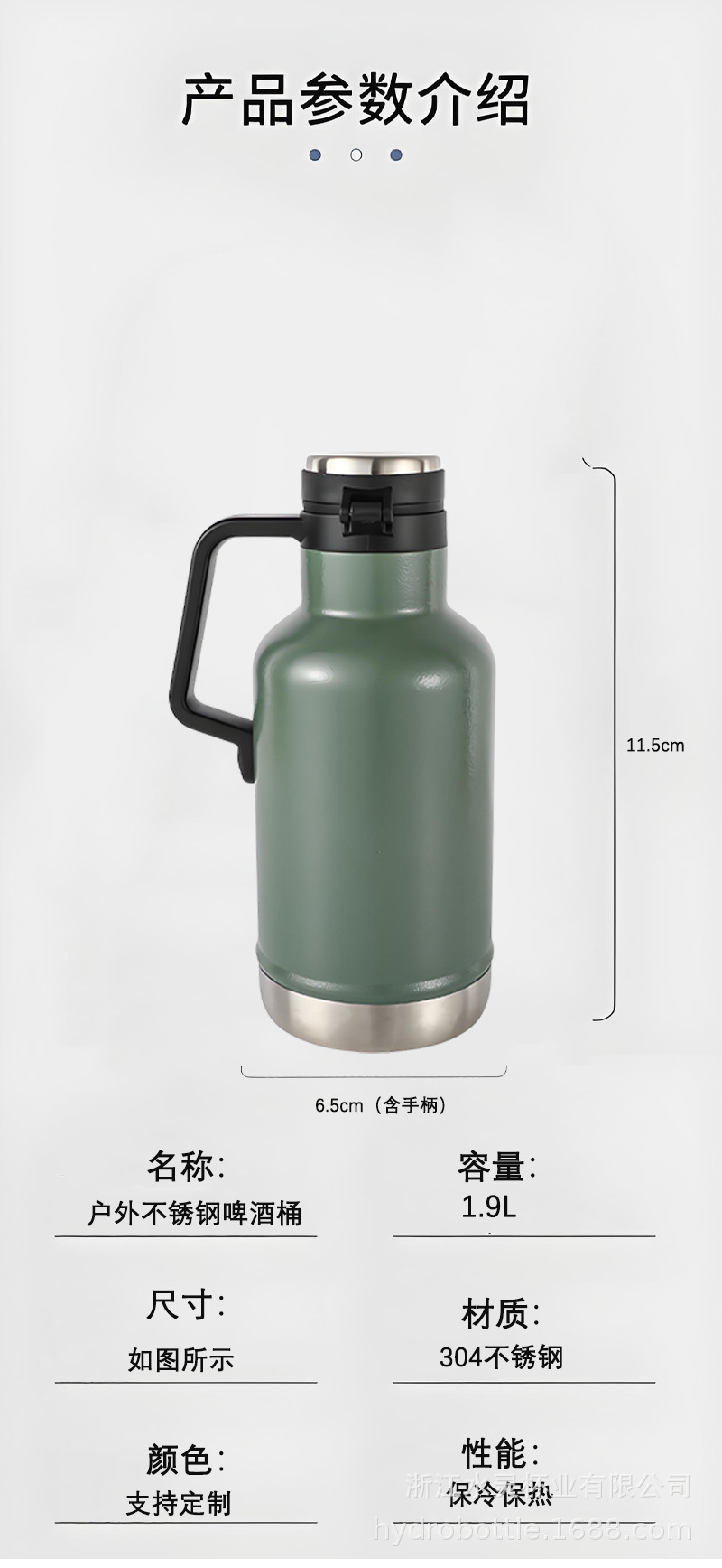 64OZ 대용량 아이스 컵 스테인레스 스틸 여행 주전자 야외 휴대용 스포츠 등산 냄비 차가운 맥주 통