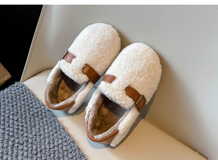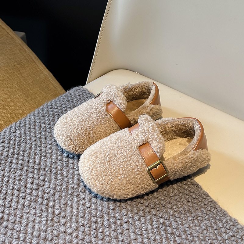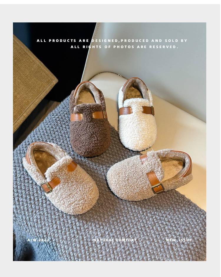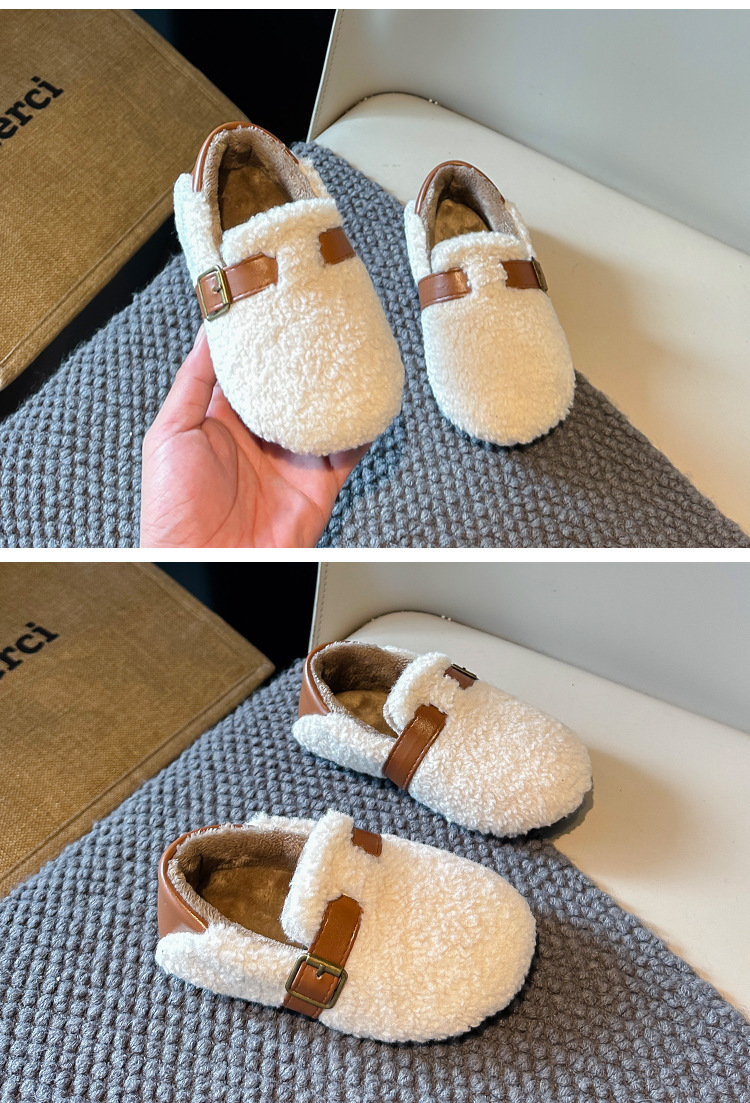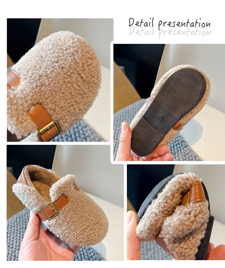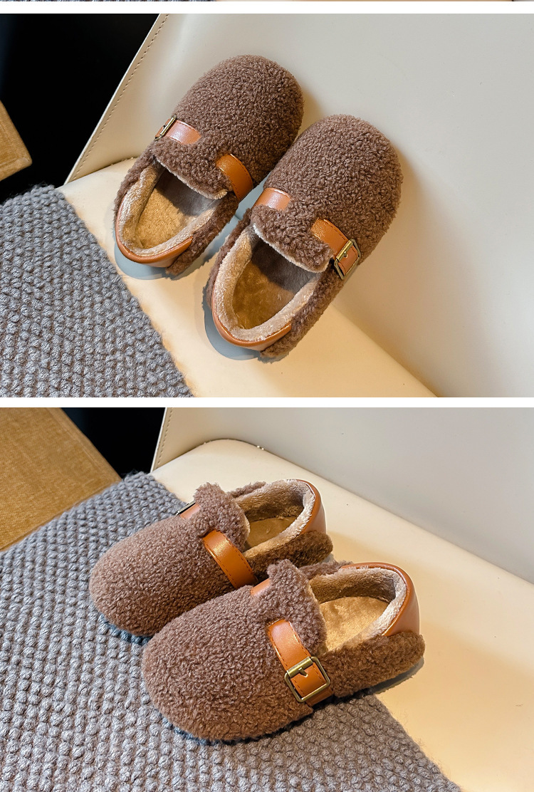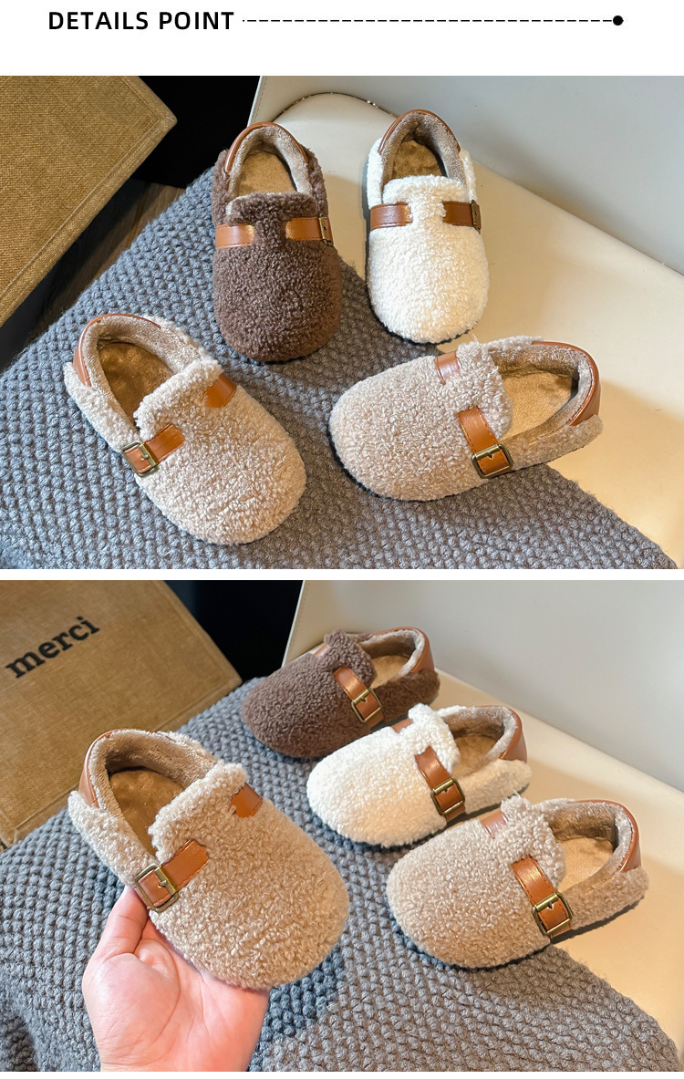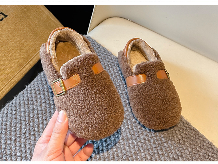 2024 년 가을과 겨울을위한 어린이 울 롤 소녀 면화 신발 새로운 단색 겉옷 중소 어린이 울 신발 따뜻한 신발스토어 가기
