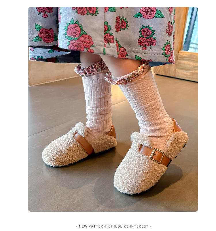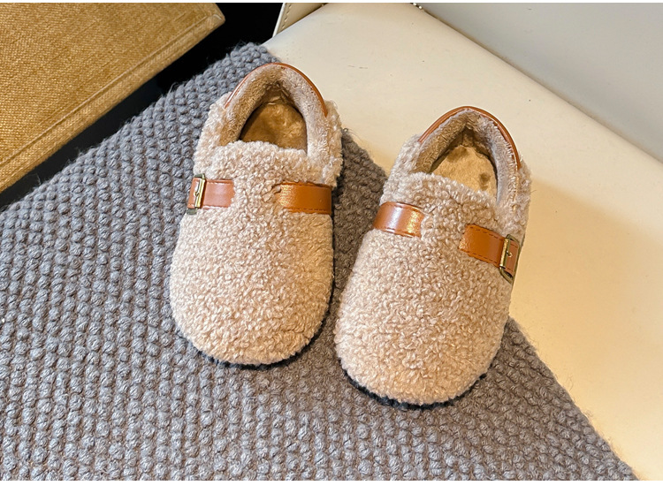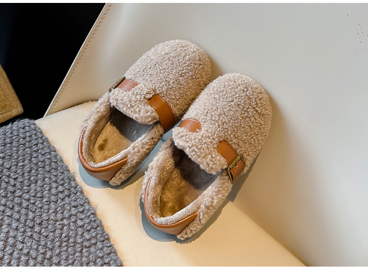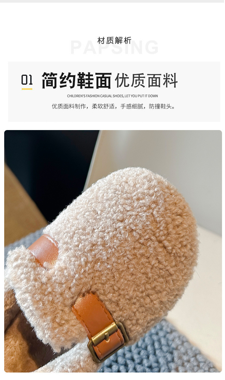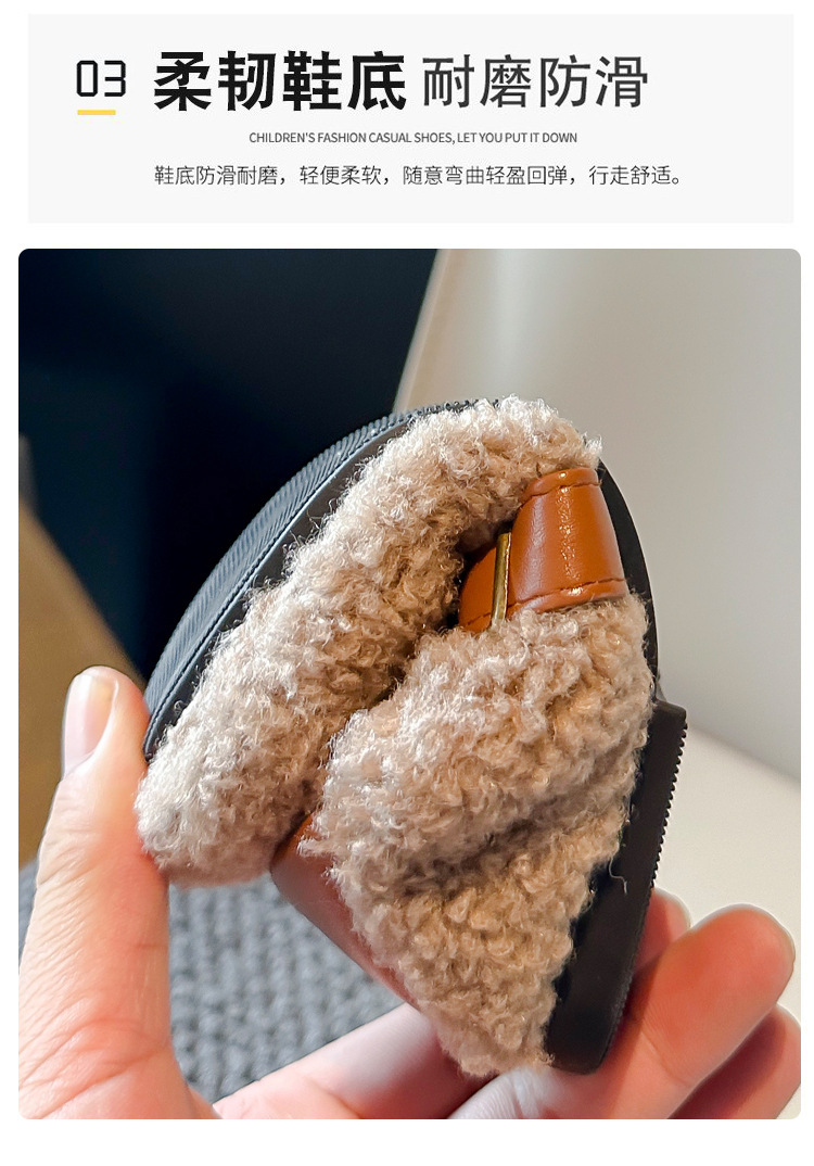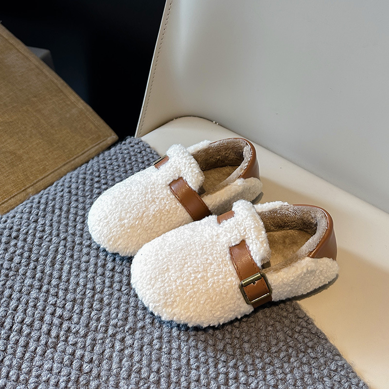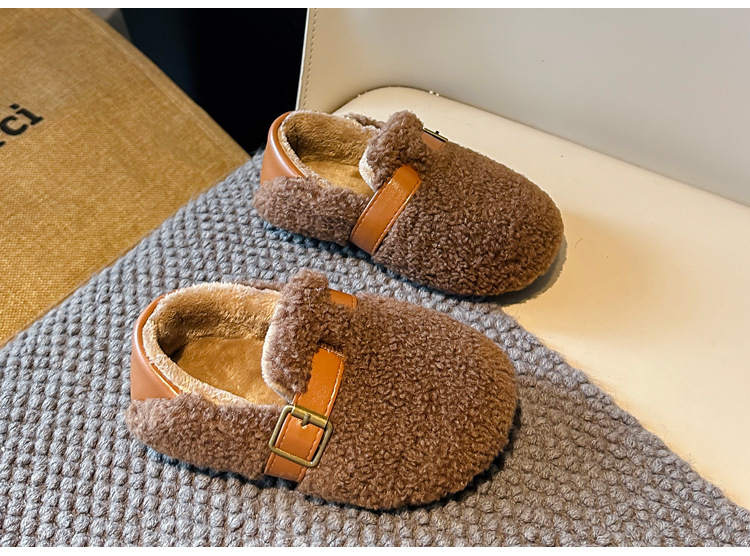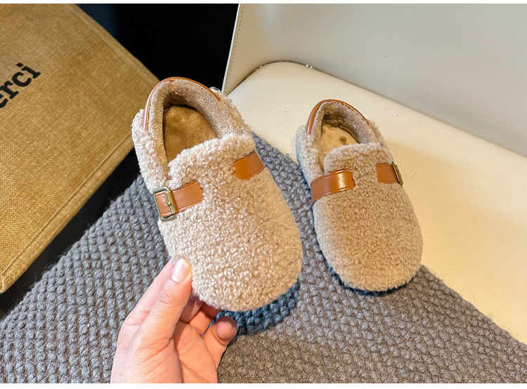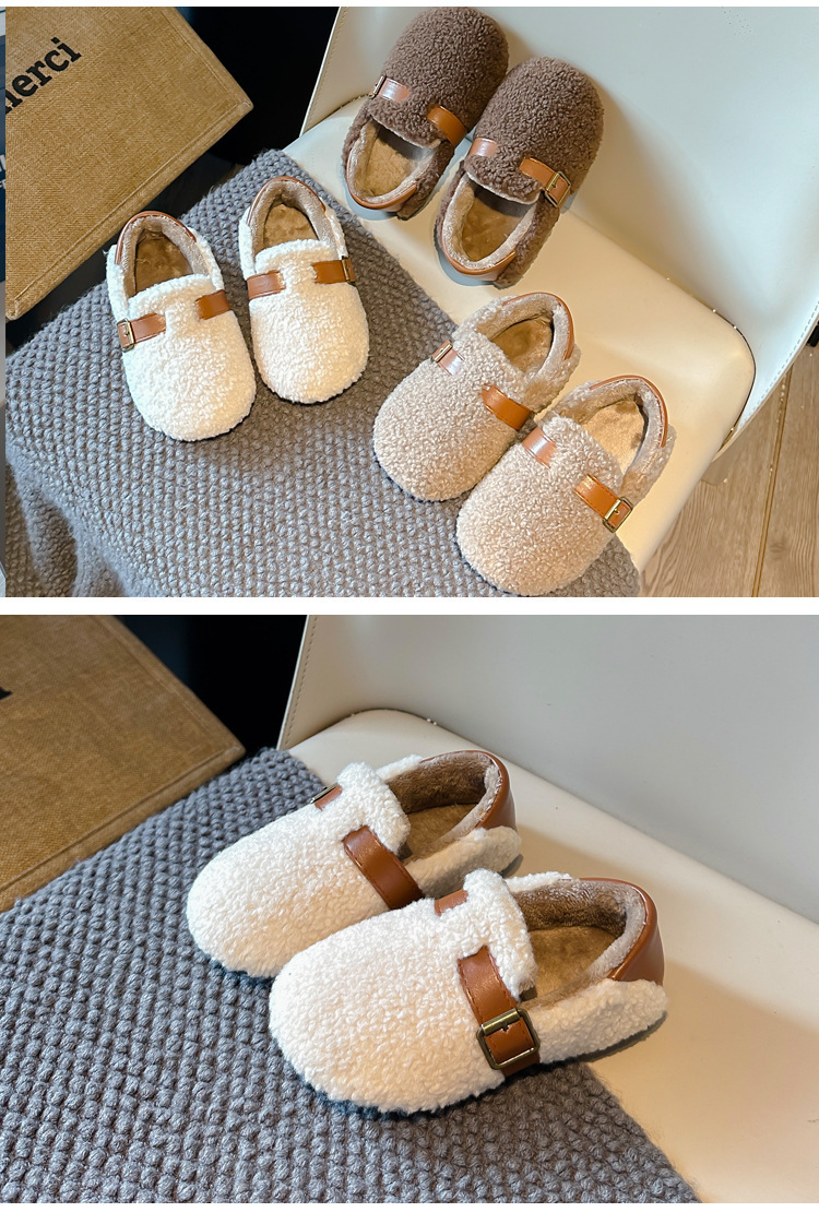 2024 년 가을과 겨울을위한 어린이 울 롤 소녀 면화 신발 새로운 단색 겉옷 중소 어린이 울 신발 따뜻한 신발스토어 가기