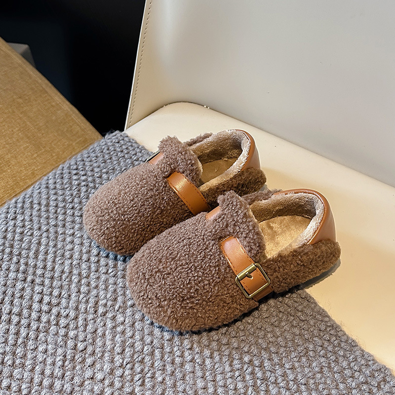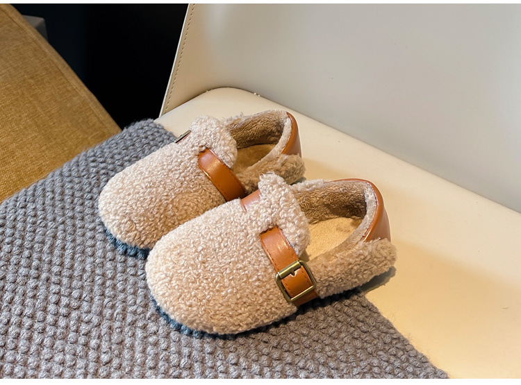 2024 년 가을과 겨울을위한 어린이 울 롤 소녀 면화 신발 새로운 단색 겉옷 중소 어린이 울 신발 따뜻한 신발