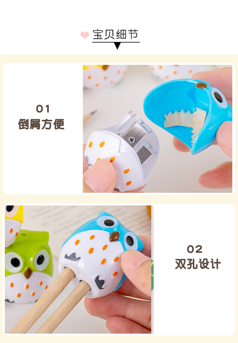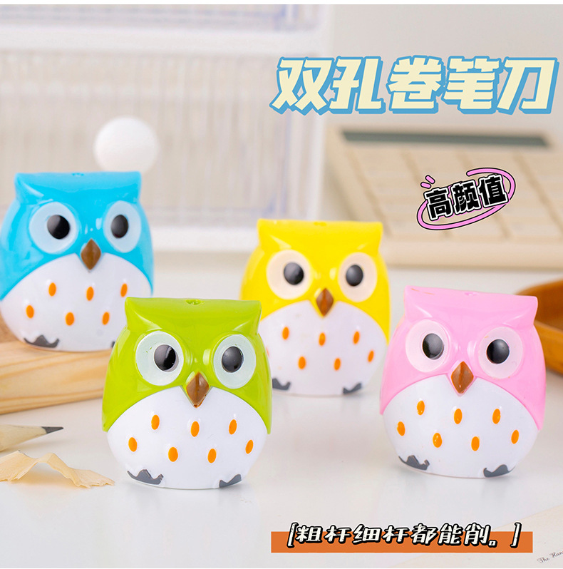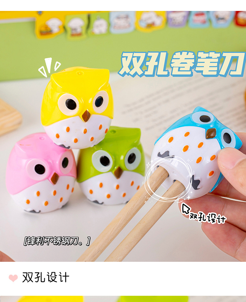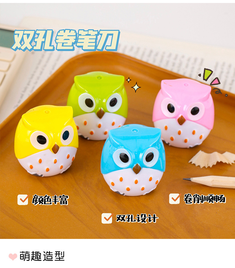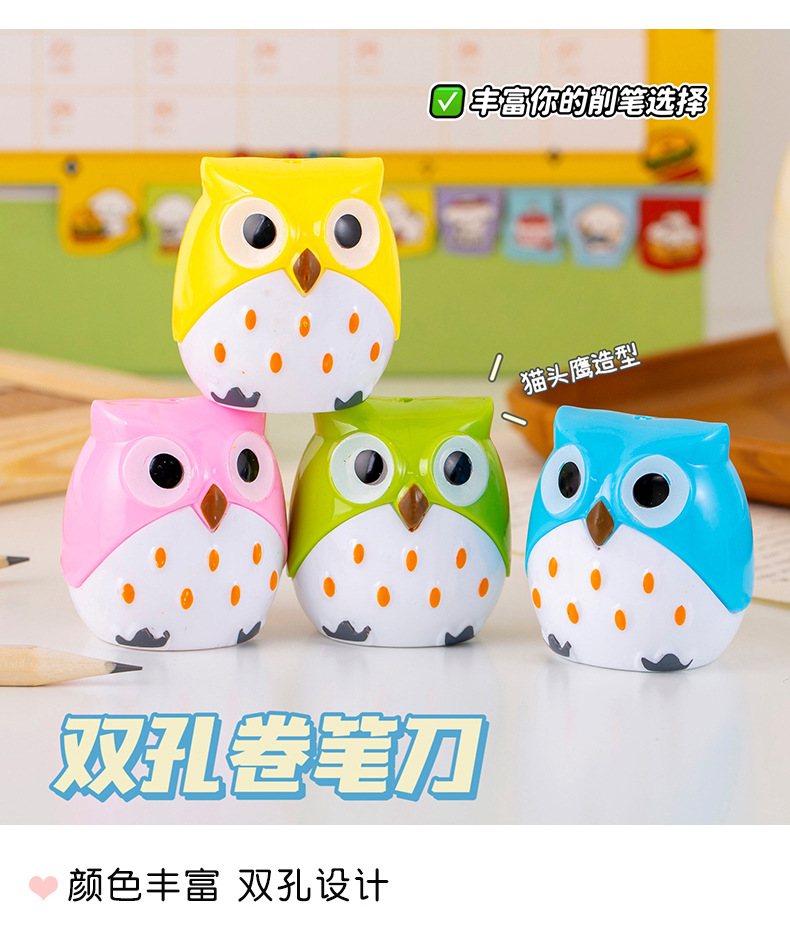 卡通 可爱 双孔卷笔刀 高颜值 削笔器 学生手动转笔刀 猫头鹰造型 迷你便携