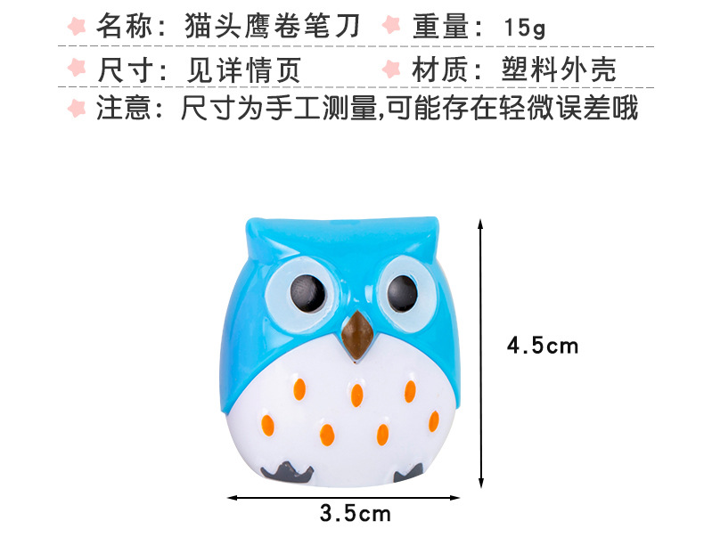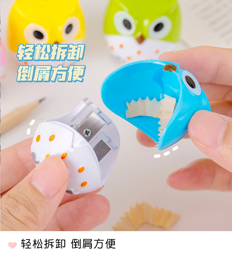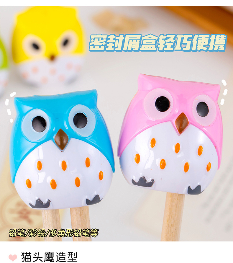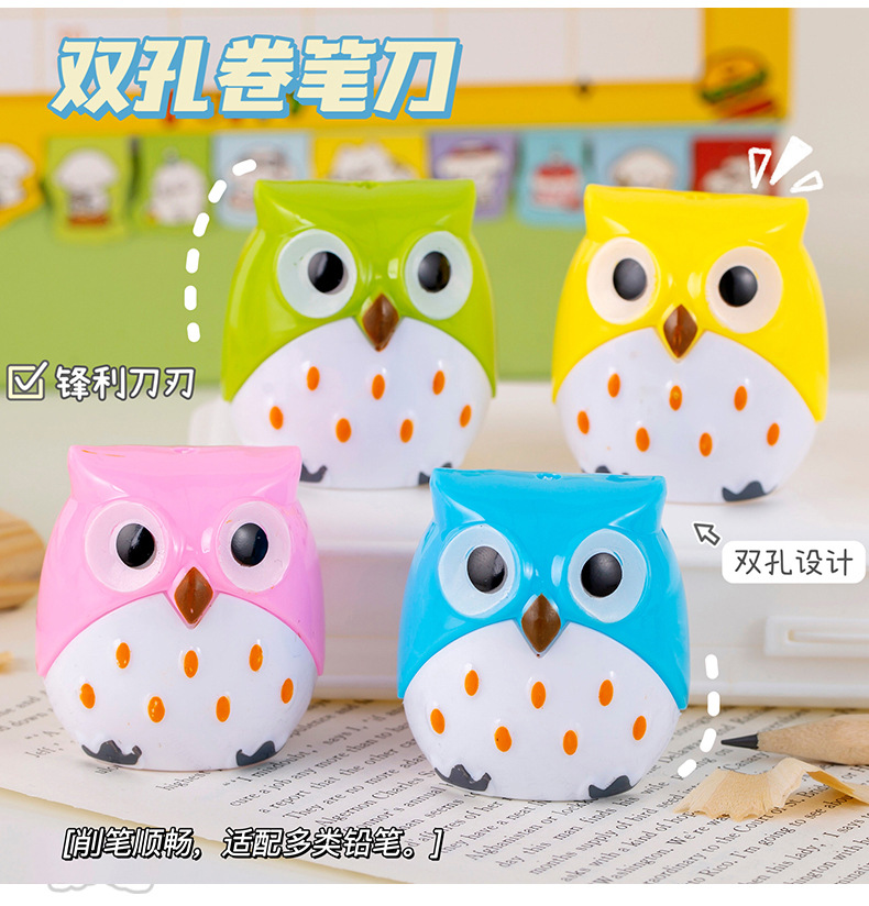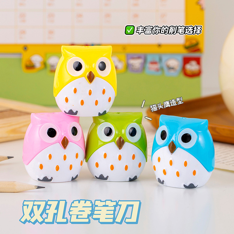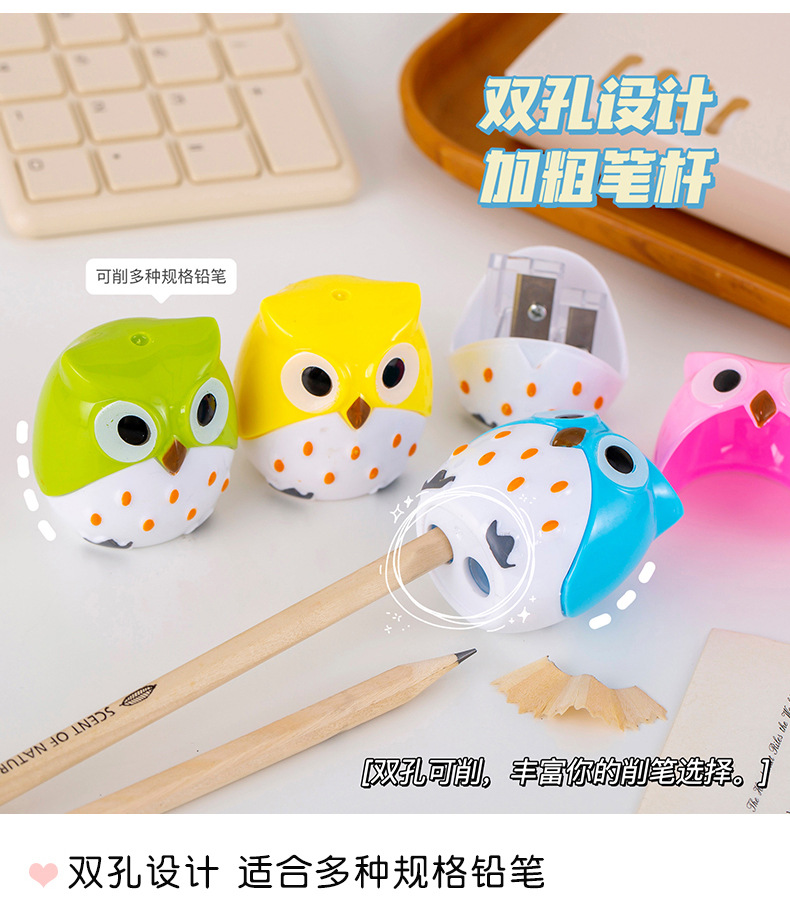 卡通 可爱 双孔卷笔刀 高颜值 削笔器 学生手动转笔刀 猫头鹰造型 迷你便携