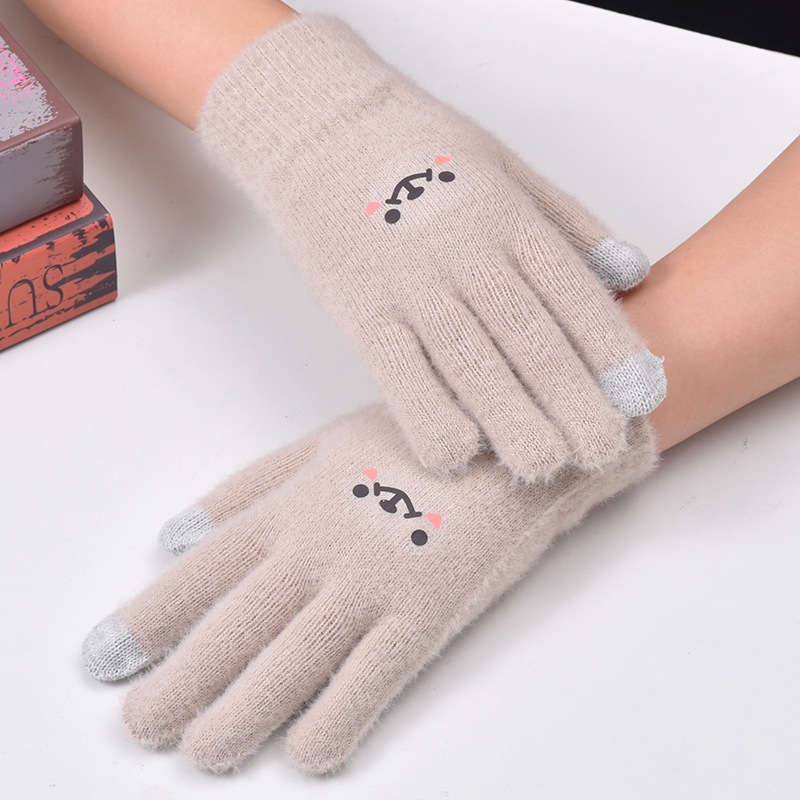 장갑 겨울 한국 스타일 Ins 소녀 5 손가락 웃는 터치 스크린 귀여운 만화 감기 방지 봉제 장갑 학생들에게 따뜻한스토어 가기