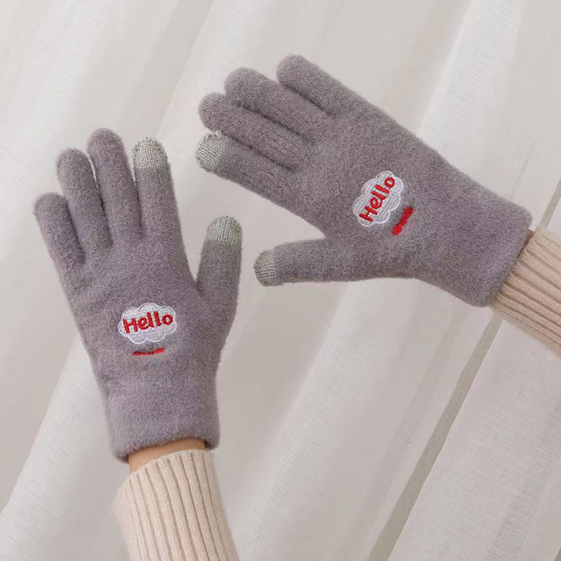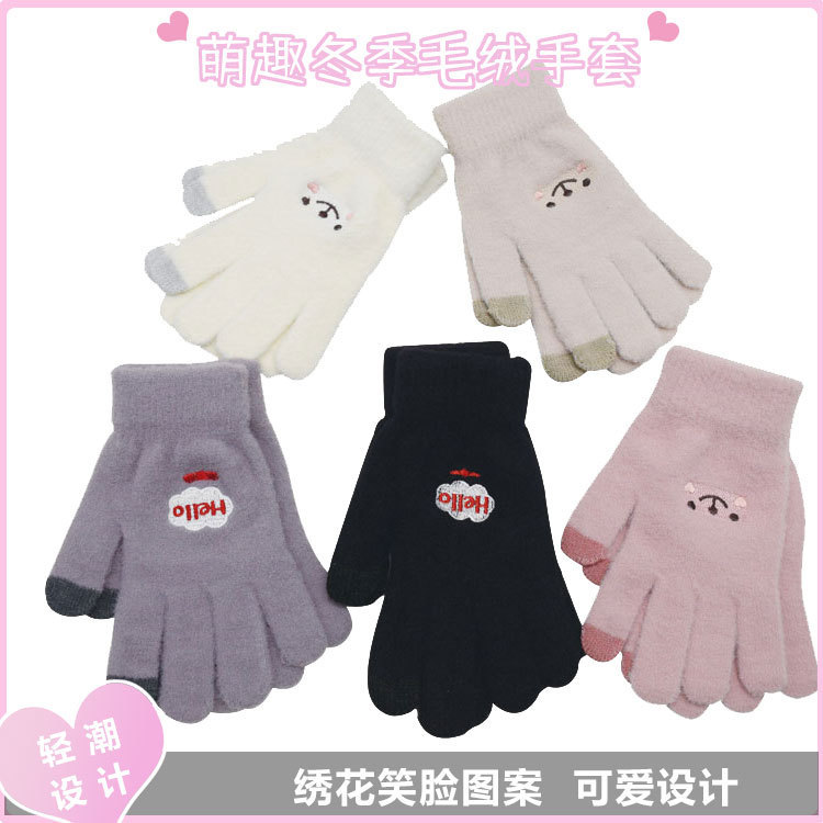 장갑 겨울 한국 스타일 Ins 소녀 5 손가락 웃는 터치 스크린 귀여운 만화 감기 방지 봉제 장갑 학생들에게 따뜻한