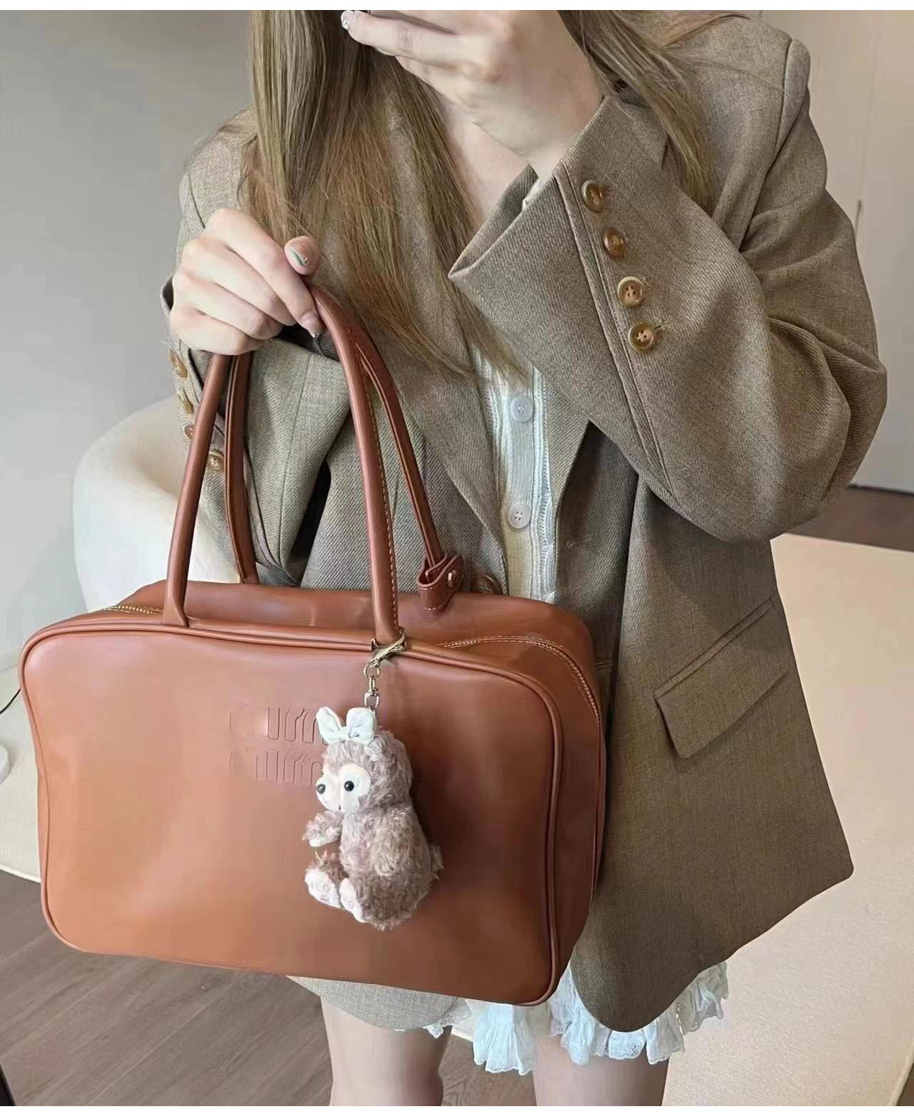 2024 새로운 서류 가방 컴퓨터 가방 보스턴 레트로 올 매치 대용량 휴대용 유럽과 미국 패션 볼링 가방스토어 가기