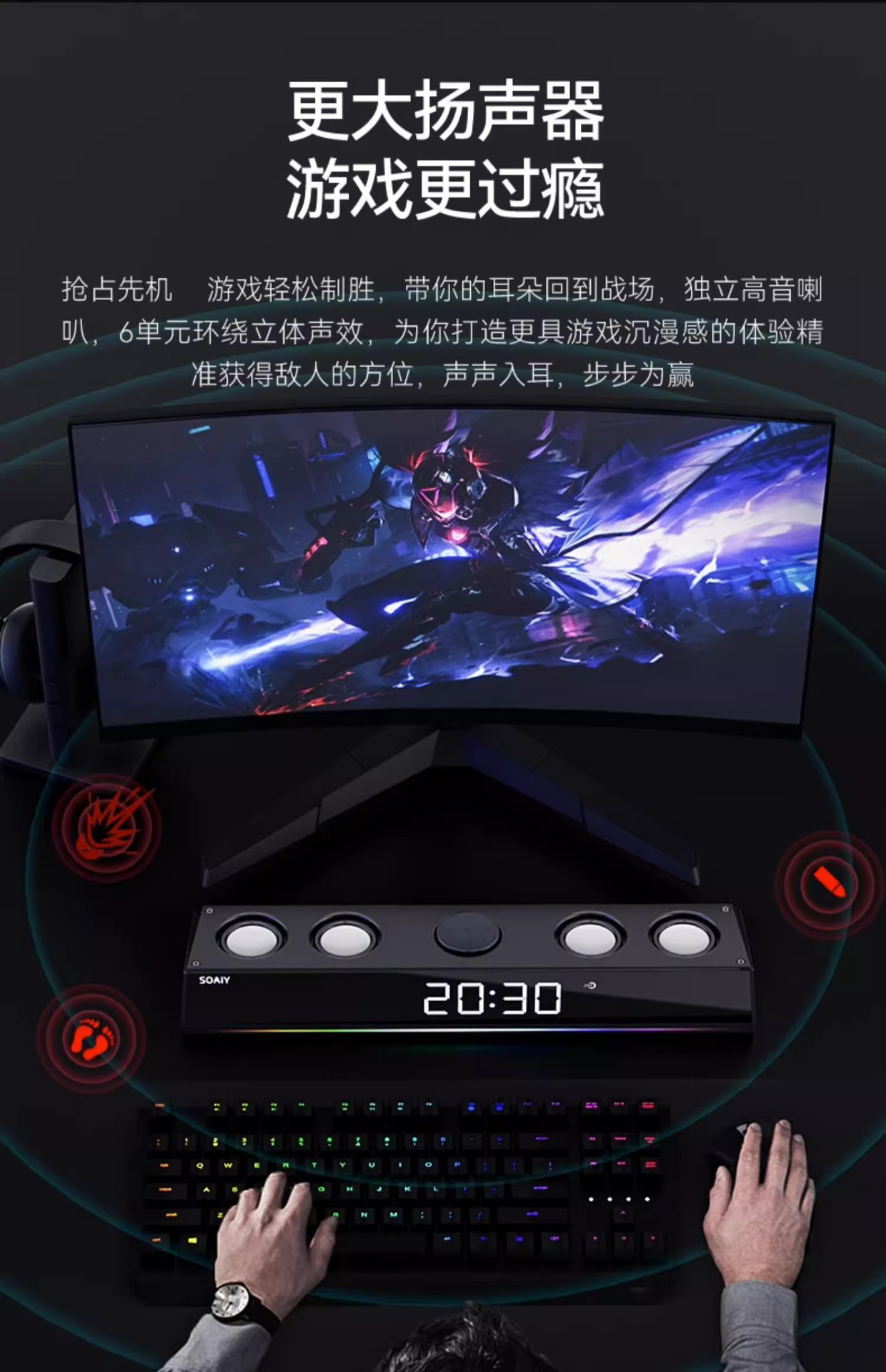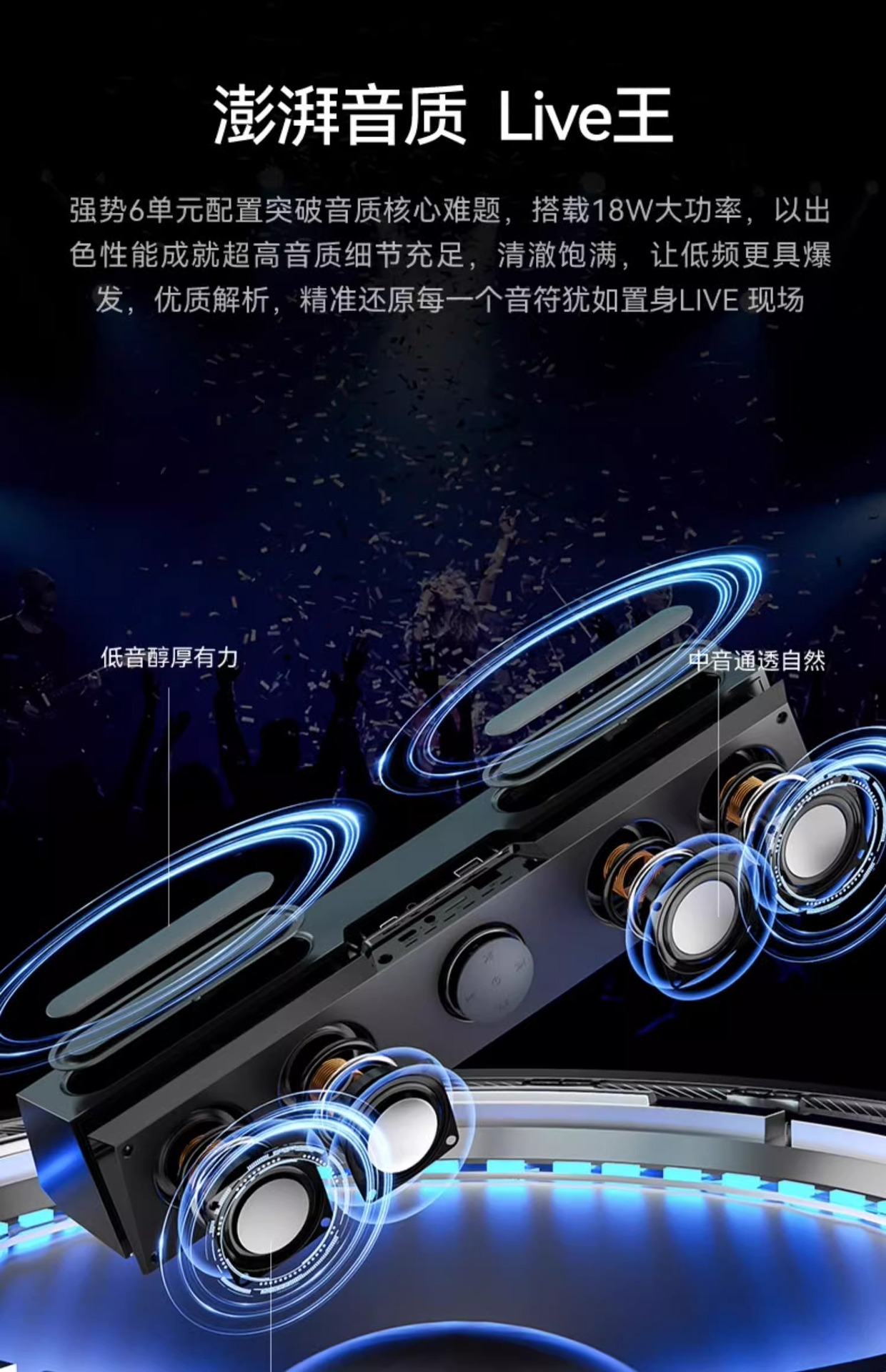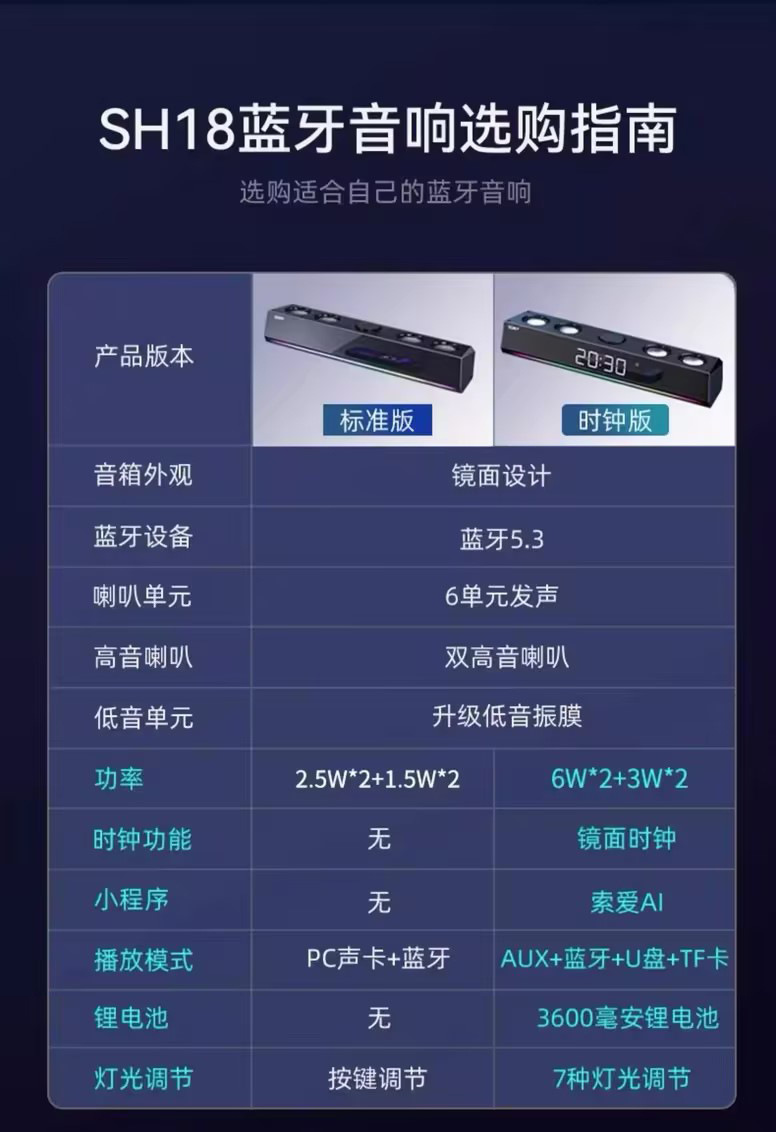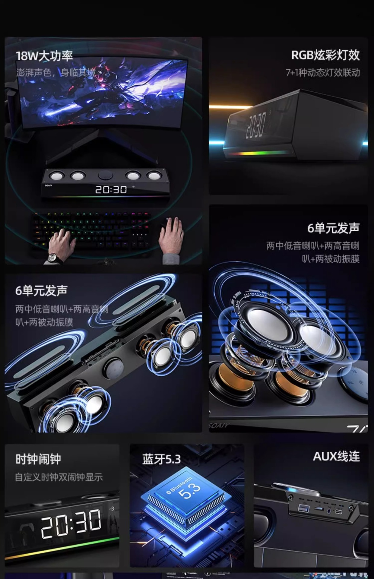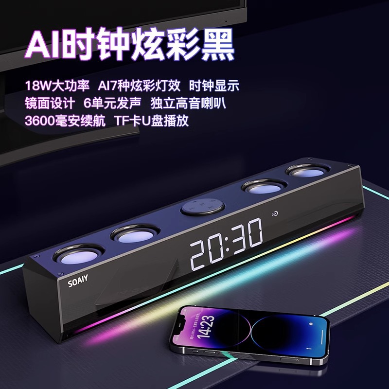 • AI 시계 다채로운 검정색 6개 장치 사운드 18W 대용량 독립 트위터