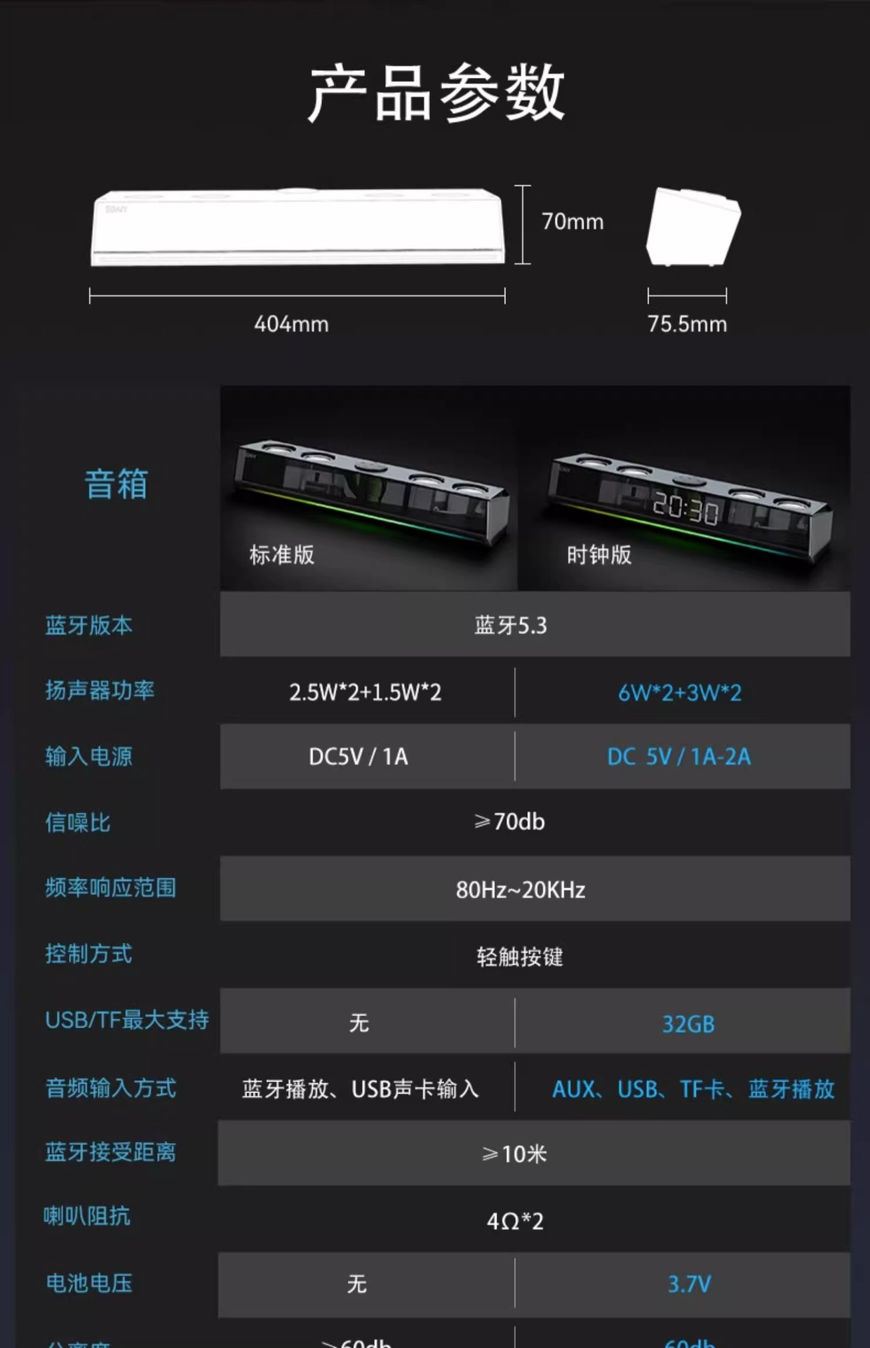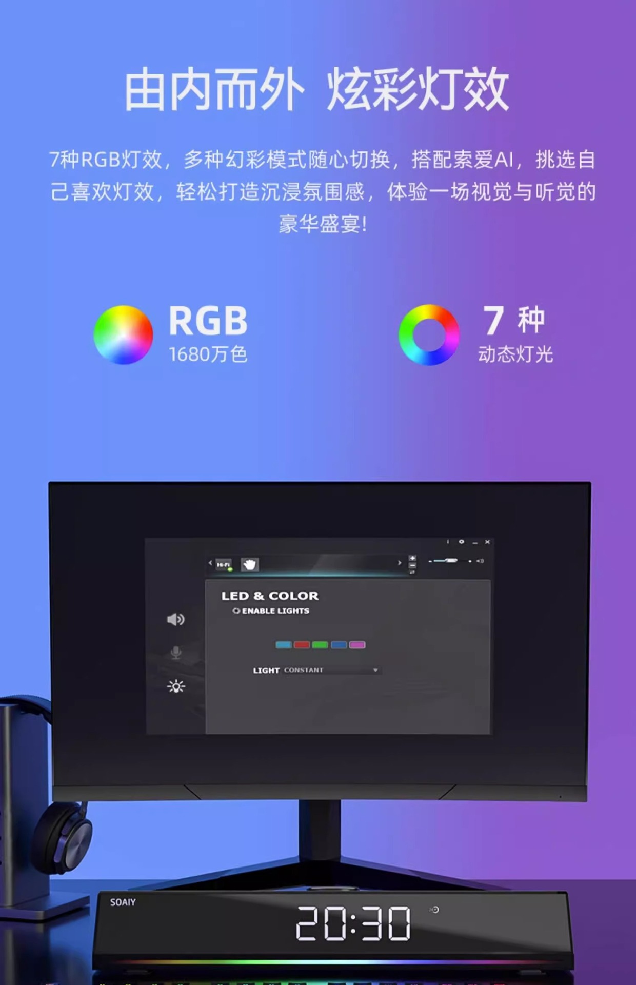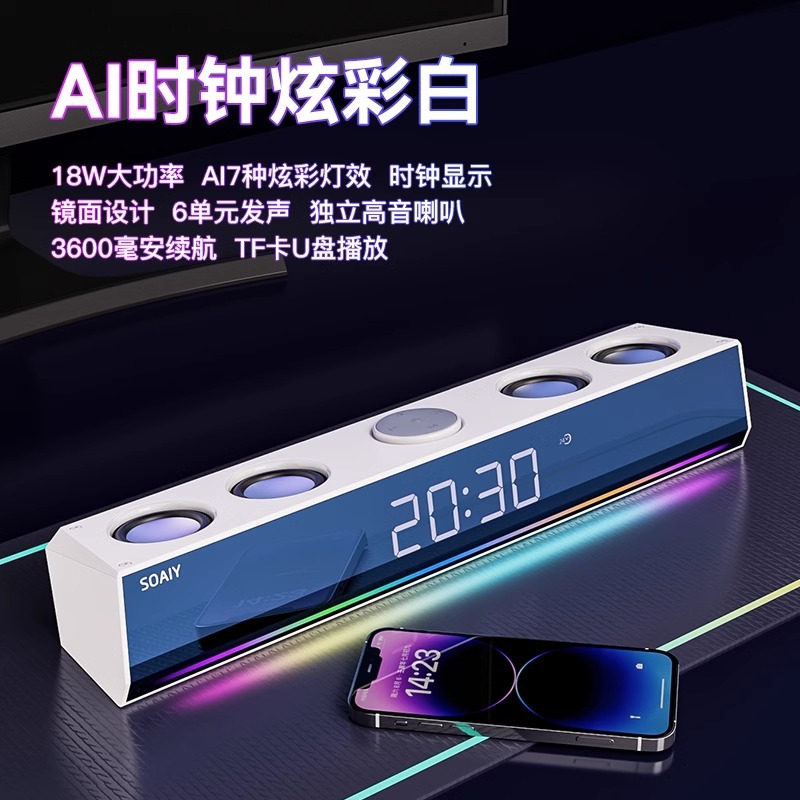 • AI 시계 다채로운 흰색 6개 장치 사운드 18W 대용량 독립 트위터