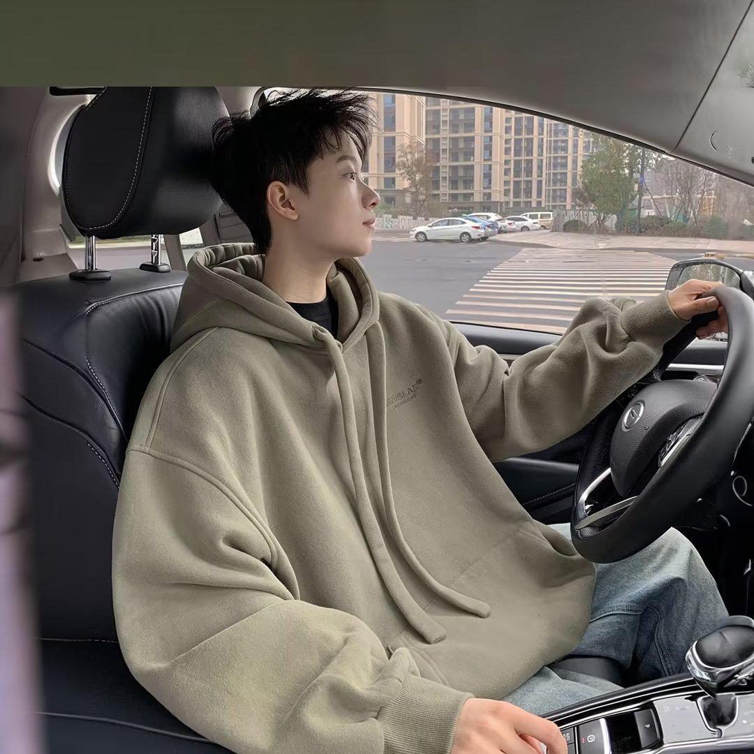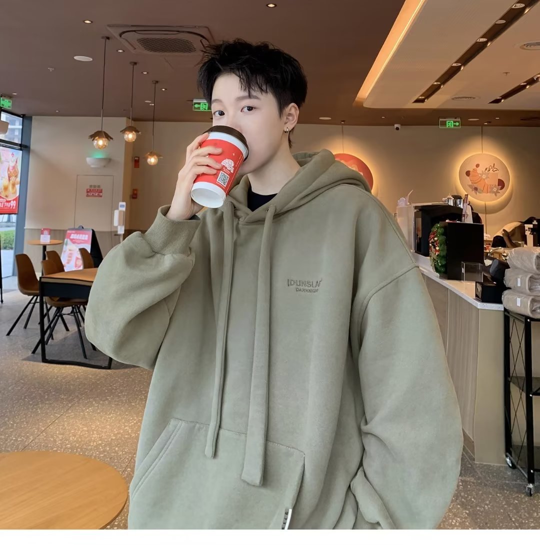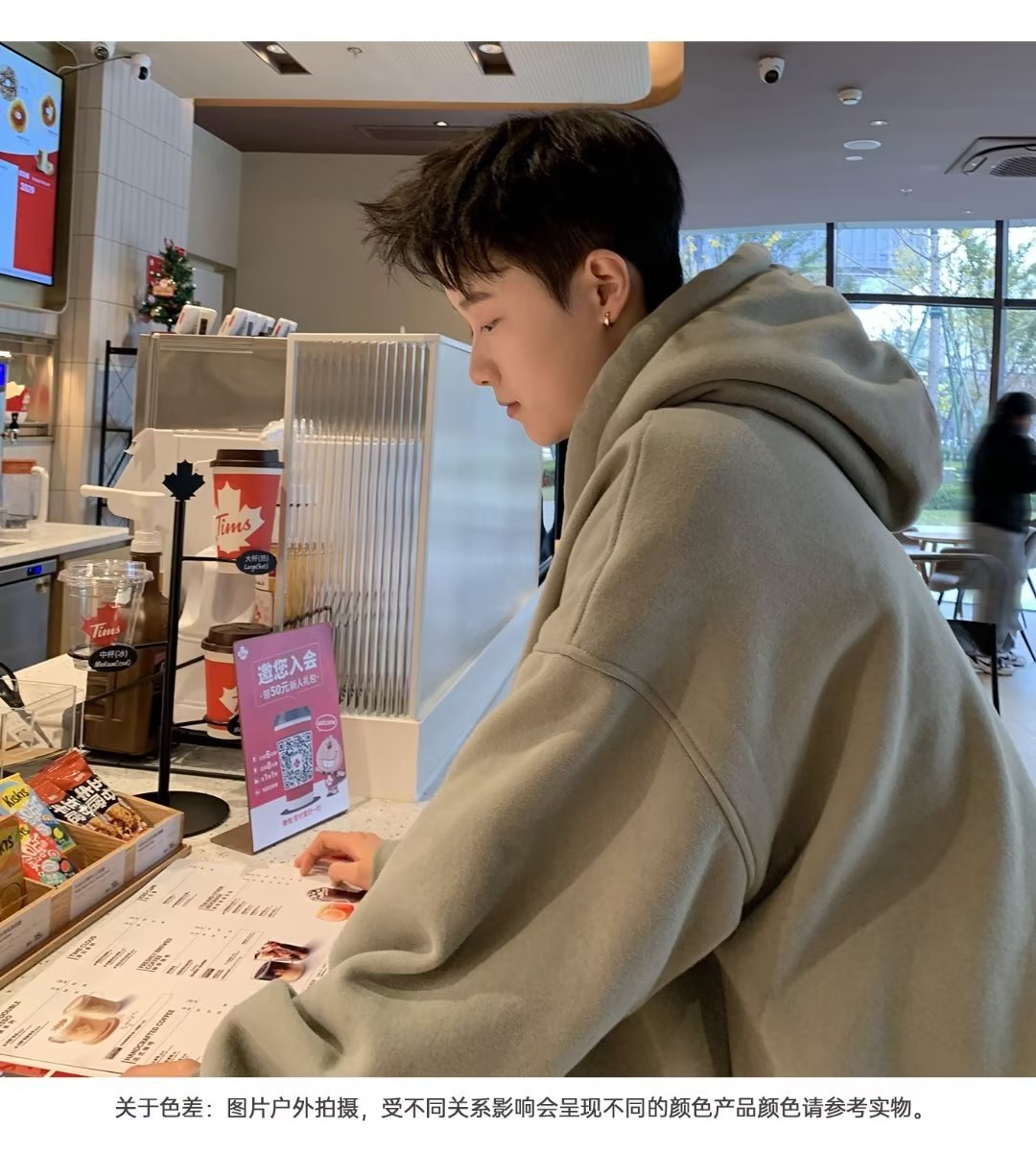 남성 헤비 후드 스웨트 셔츠 남자의 새로운 가을과 겨울 기모 최고의 미국 스타일 트렌디 브랜드 느슨한 남성 자켓 남성 의류스토어 가기