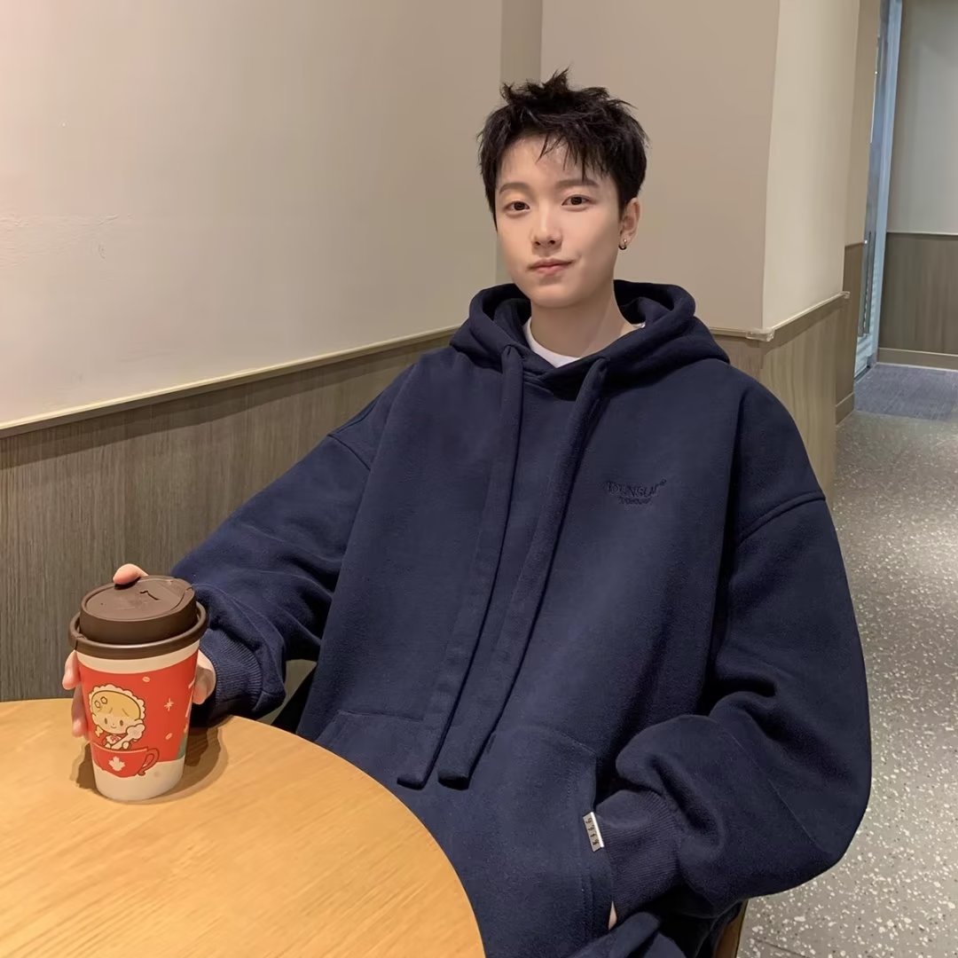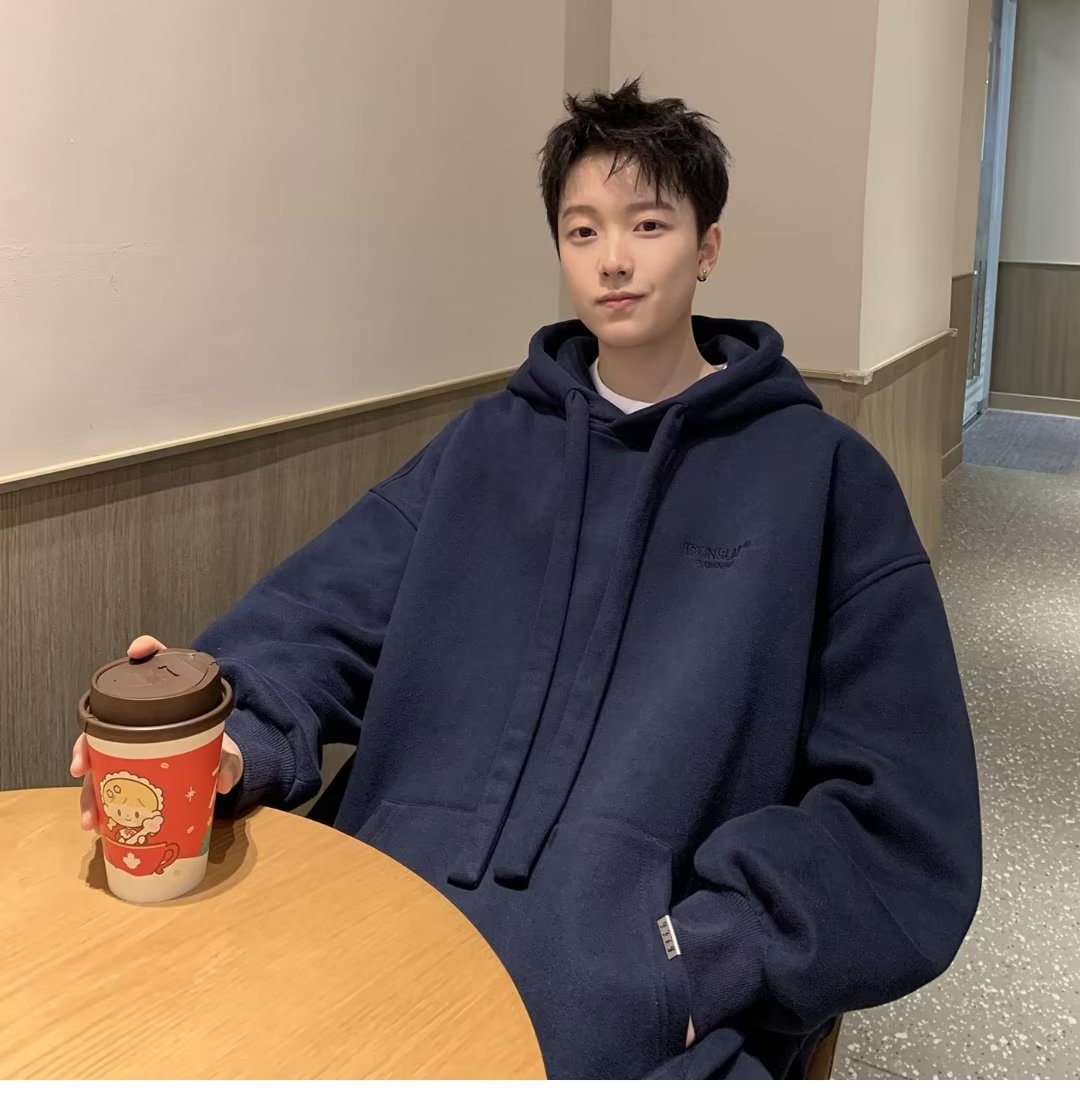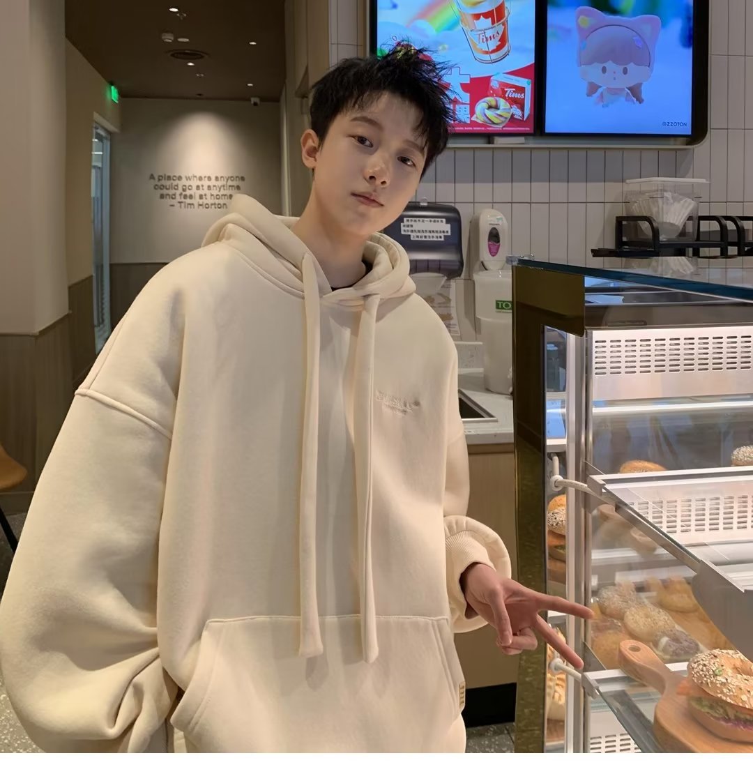 남성 헤비 후드 스웨트 셔츠 남자의 새로운 가을과 겨울 기모 최고의 미국 스타일 트렌디 브랜드 느슨한 남성 자켓 남성 의류스토어 가기