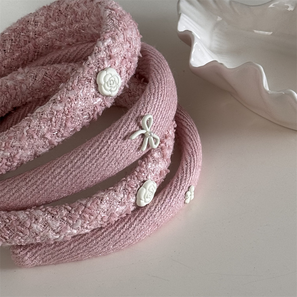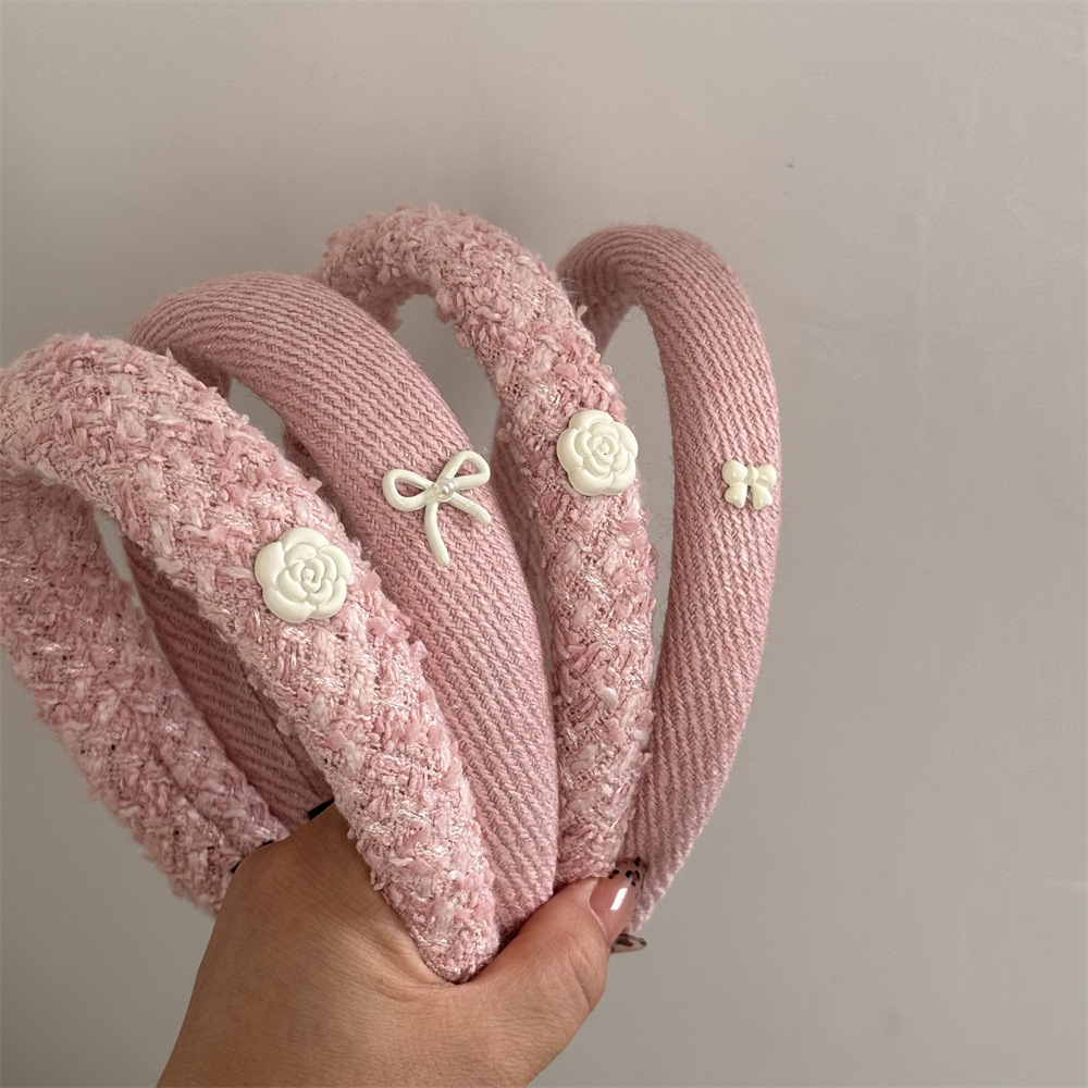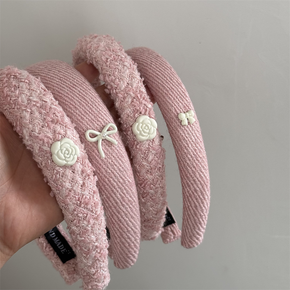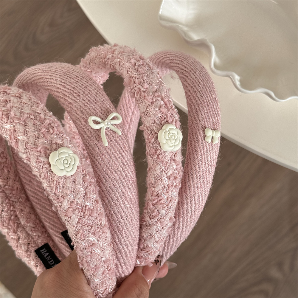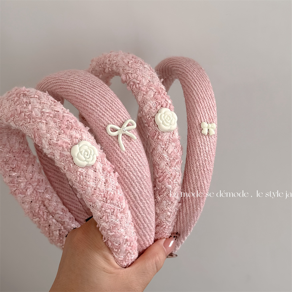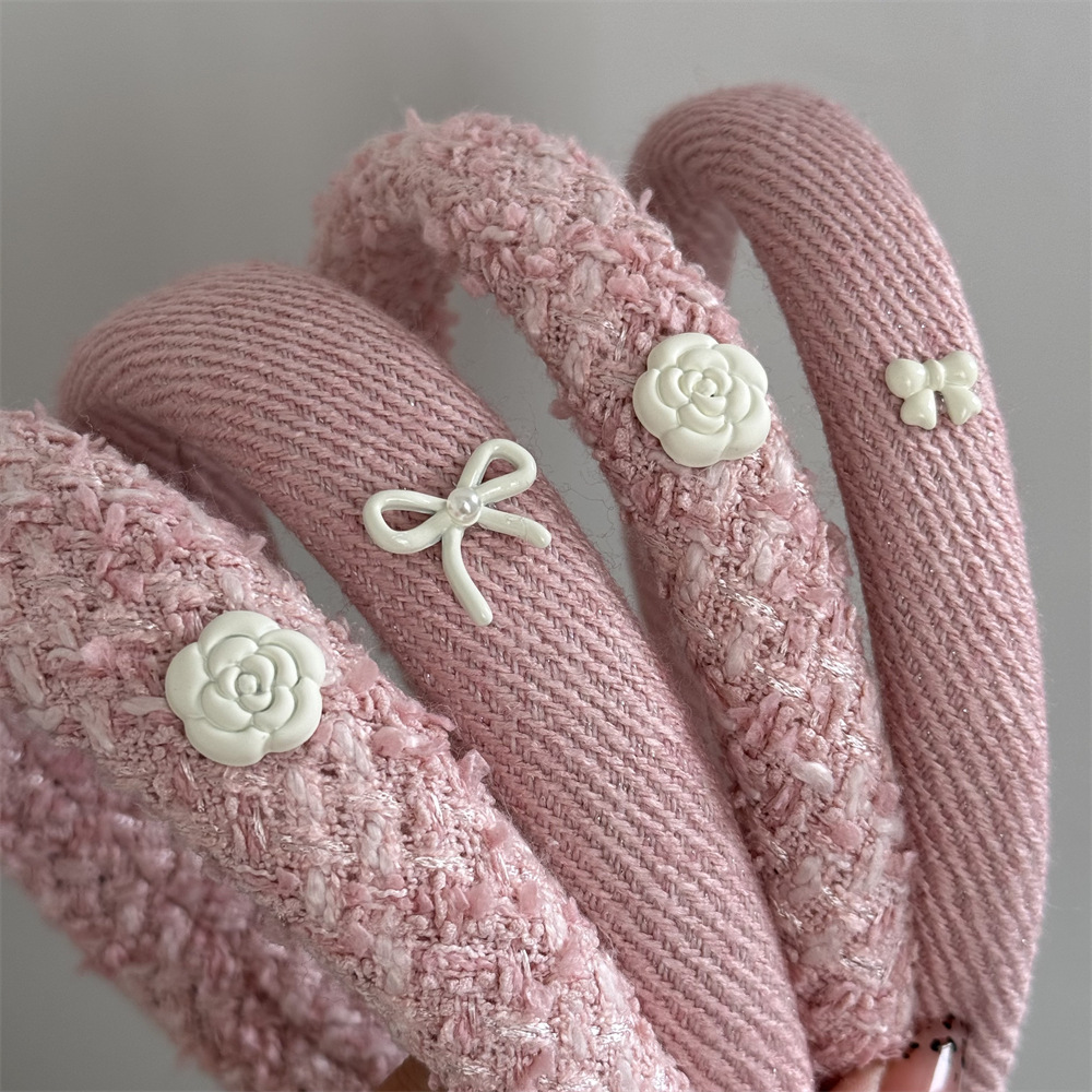 핑크 스타일 달콤한 향기로운 스타일 동백 헤어 후프 높은 크랜얼 탑 헤드 후프 압력 헤어 기질 보우 헤드웨어 헤어 액세서리