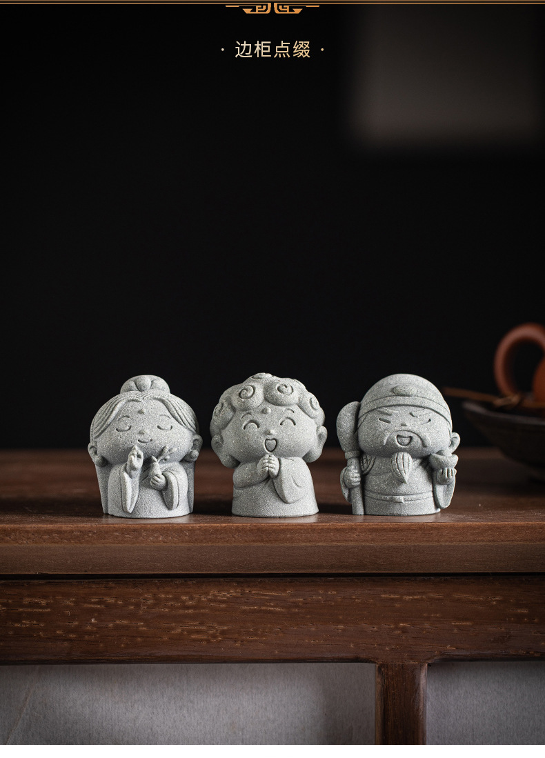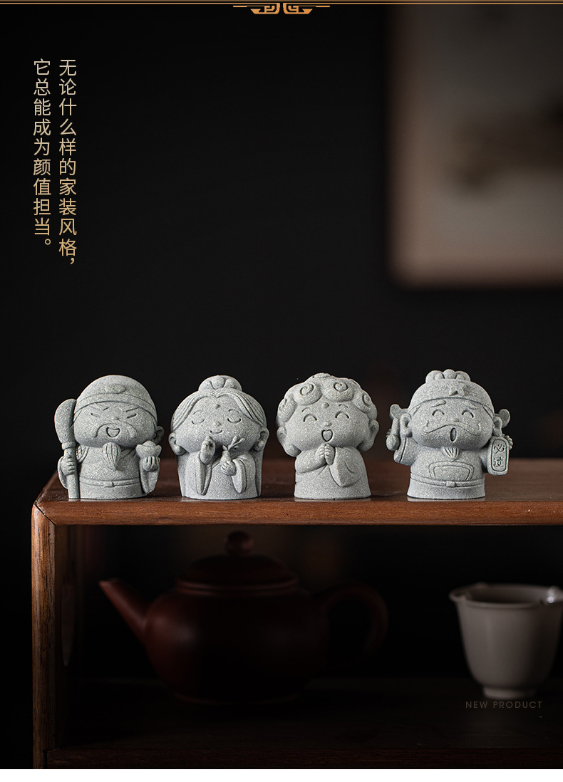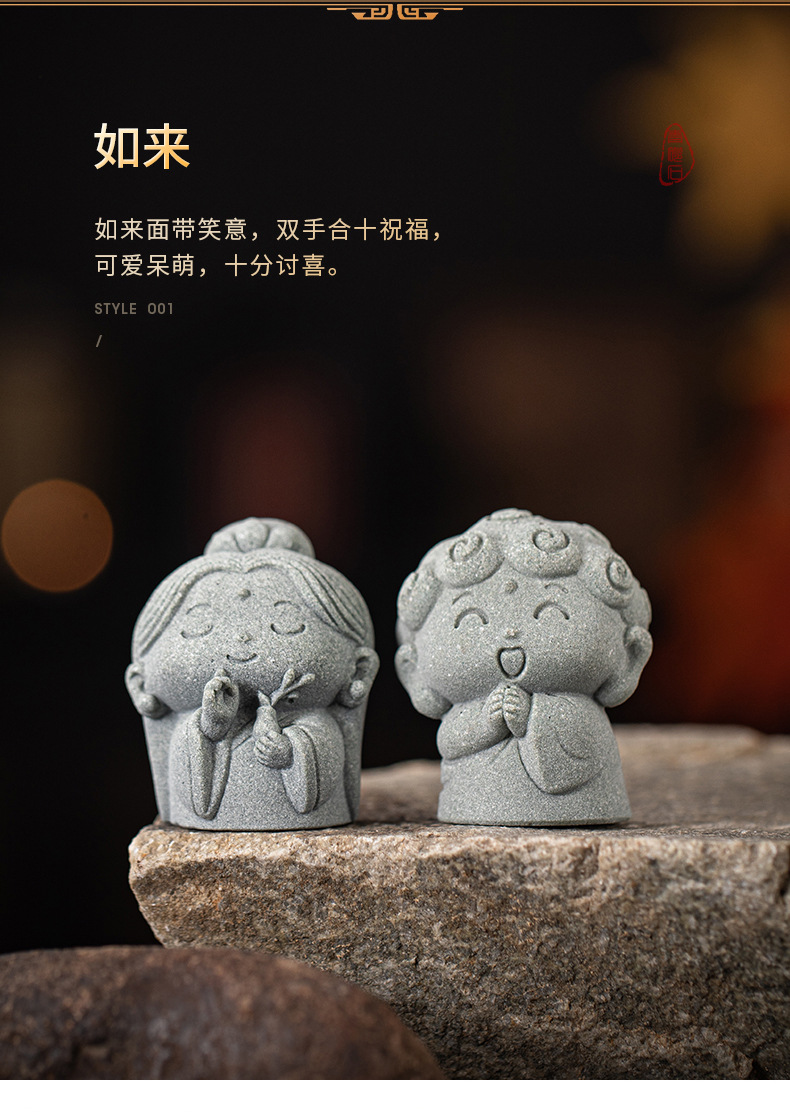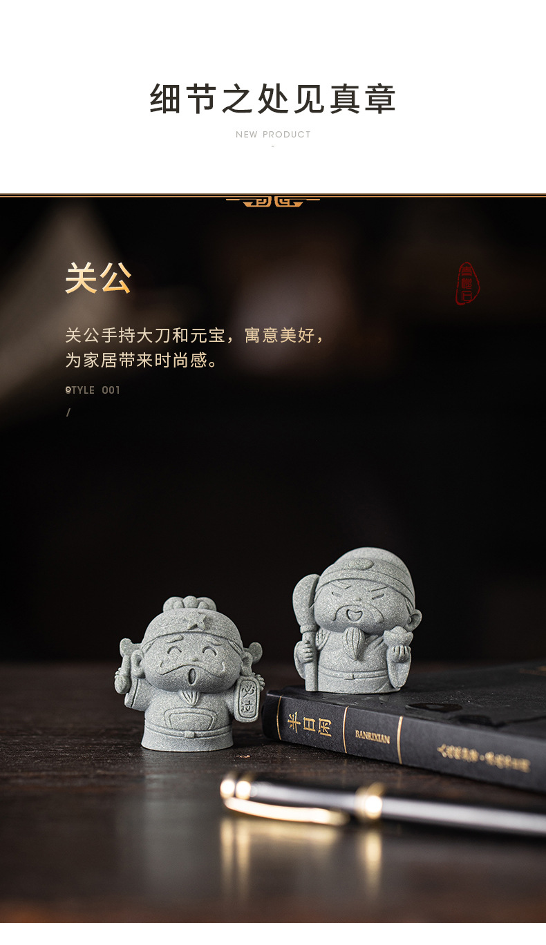 창조적 인 새로운 중국 스타일 녹색 모래 돌 미니 관음 불상 관공 부의 신 Wenqu 스타 Wenchuang 데스크탑 장식품스토어 가기