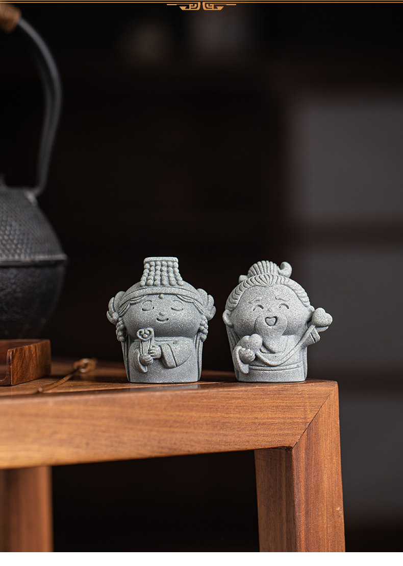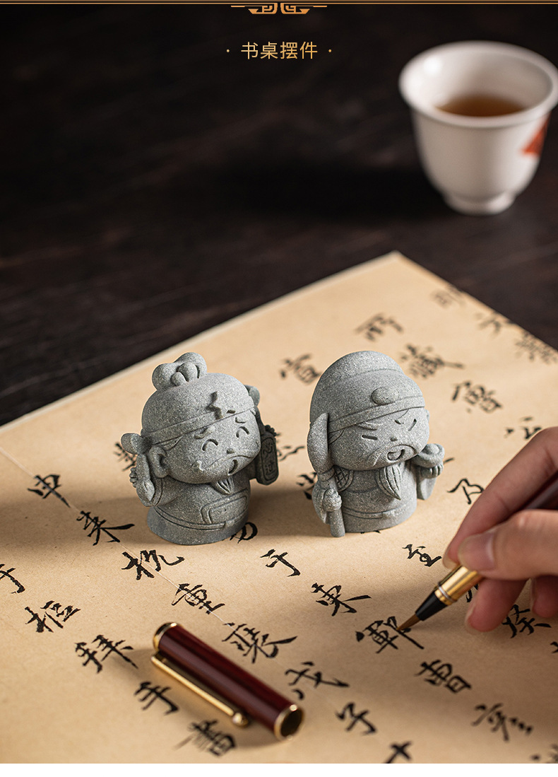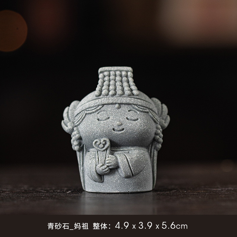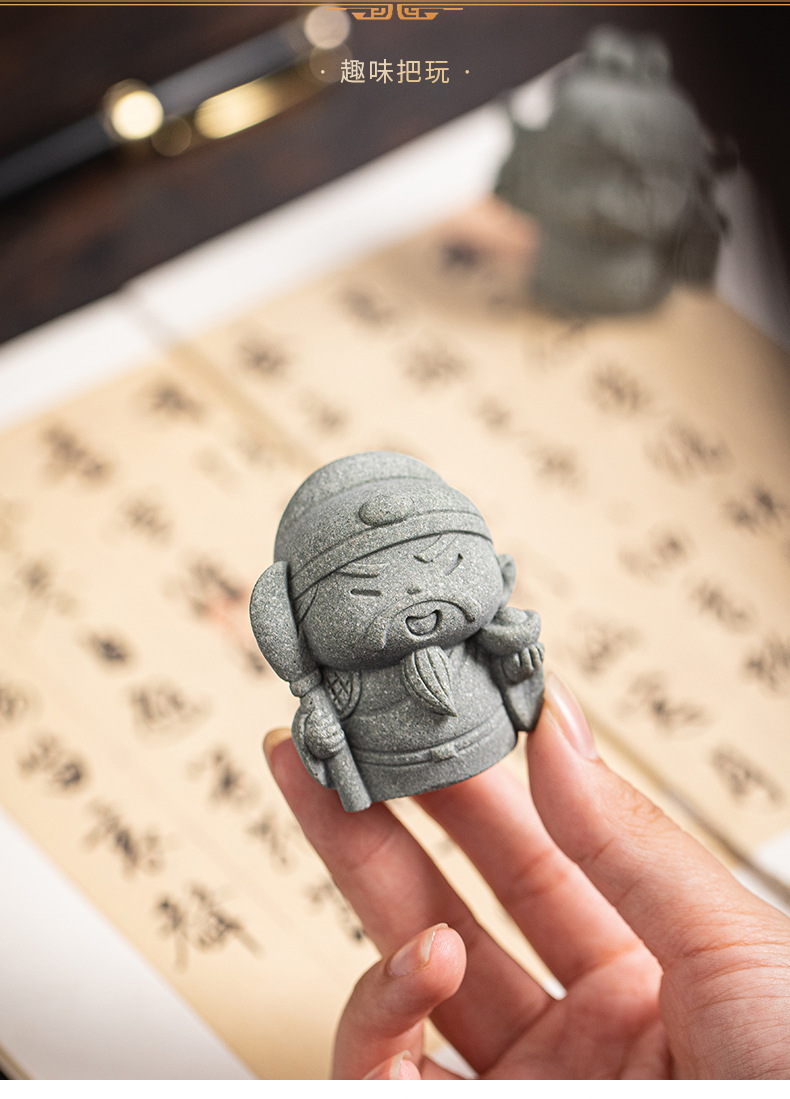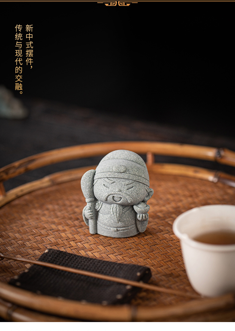 창조적 인 새로운 중국 스타일 녹색 모래 돌 미니 관음 불상 관공 부의 신 Wenqu 스타 Wenchuang 데스크탑 장식품