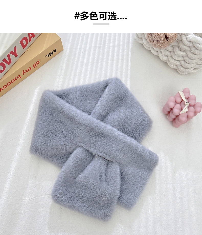 단색 봉제 여성의 겨울 목 보호 스카프 한국식 귀여운 학생 모조 토끼 고급 두꺼운 따뜻한 작은 스카프스토어 가기
